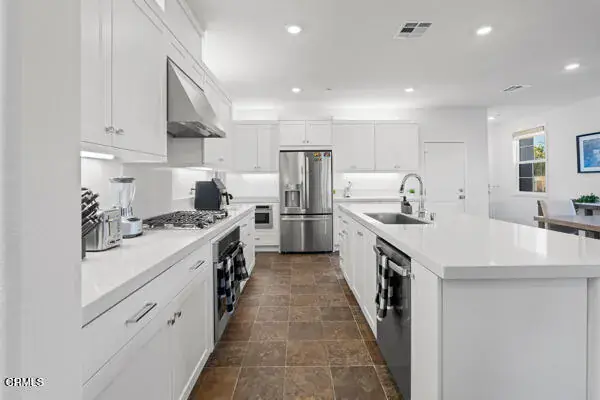 Welcome to Olive by Lennar Homes, nestled within the highly sought-after Harvest at Limoneira community! Ideally positioned on a premium corner lot, the property offers enhanced privacy and the convenience of abundant parking! This recently built, modern four-bedroom home features an open-concept design highlighted by a stylish, contemporary kitchen and a warm, inviting living area–perfect for both everyday comfort and effortless entertaining.The well-designed floor plan includes a main-level bedroom with a full bath, an excellent option for guests, extended family, or flexible use. Upstairs, the spacious owner’s suite is complemented by two additional bedrooms–one featuring its own private en-suite bath–as well as a conveniently located laundry room.The low-maintenance backyard showcases attractive artificial turf and a clean concrete patio, offering a relaxing outdoor space with minimal upkeep. As part of this vibrant community, residents enjoy access to impressive amenities including sport parks, scenic walking trails, and the beautifully appointed ‘Farmhouse’ community center complete with a gym, pool, spa, and BBQ area.
