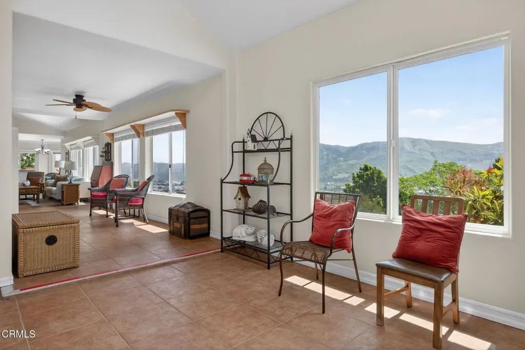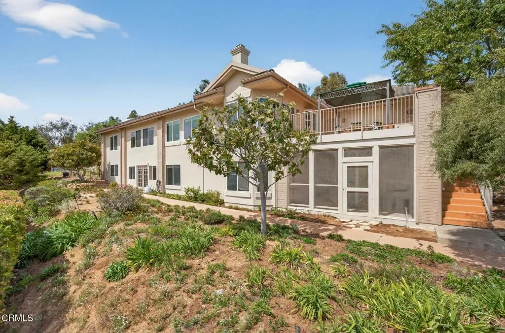 Perched on nearly half an acre of ultra-private grounds, this 1990s Santa Paula sanctuary offers breathtaking city views and a layout designed for incredible versatility to fit your specific needs. The light-filled interior features a main-floor primary suite and a beautifully remodeled chef’s kitchen complete with granite countertops, custom cabinetry, and a charming breakfast nook. Designed for modern comfort, the home is equipped with a dual AC system and the rare convenience of two separate laundry areas–one on each level. The expansive living spaces flow seamlessly into the massive sunroom or an incredible deck complete featuring a built-in BBQ; creating the perfect setting for seamless indoor-outdoor entertaining and sunset dinners against a backdrop of twinkling city lights. While feline enthusiasts will appreciate the unique custom cattery–a fully screened porch area with a track that allows pets to safely peak their heads up onto the deck. The lower level, featuring a recreation room, office, and media room; offers immense potential for a guest or caretaker’s quarters. Surrounded by mature landscaping, the exterior provides the ultimate in privacy and is complete with an oversized garage and a large driveway with ample parking.