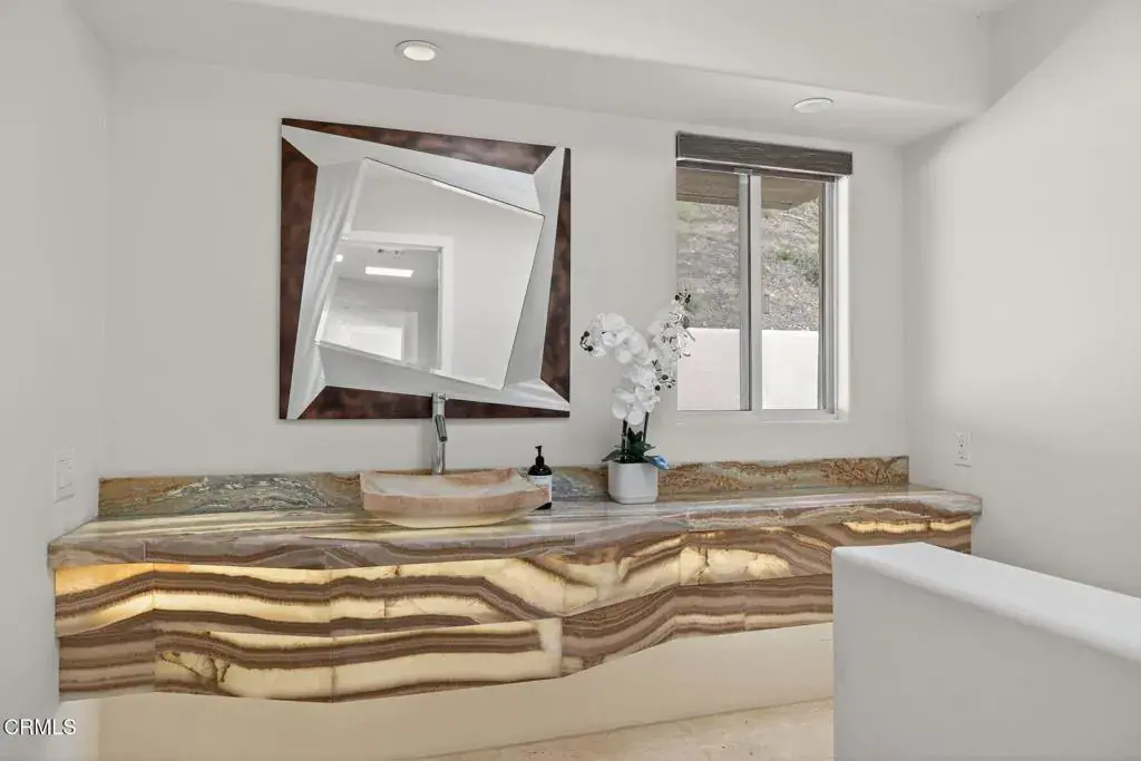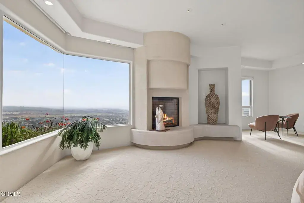 Tucked into the hillside of Santa Paula, 864 Montclair is a breathtaking, one-of-a-kind example of Frank Lloyd Wright’s organic architecture. Designed by Wright’s protege, Richard Martinez, the home embodies harmony between structure and nature–built into the mountain, not atop it. Its curved design follows the natural hillside, creating a serene flow with the land and offering sweeping views of Santa Paula, the surrounding mountains, and the ocean.The main level welcomes you with dramatic floor to ceiling windows, allowing light to cascade throughout. Skylights flood the home with natural daylight, illuminating the primary spaces and the lower level below. The entry-level primary suite and bathroom features a fireplace and a walk-through closet, designed for comfort and tranquility.Downstairs, three additional bedrooms each have dedicated bathrooms, providing privacy and retreat. A four-car garage with a custom turntable honors Santa Paula’s car culture. From the expansive balcony, enjoy views of small planes landing and taking off, adding to this hillside sanctuary’s charm.Never before offered for sale, this extraordinary home has been lovingly maintained by its original owners. Photos cannot capture the remarkable light, intentional design, or peaceful energy that make this residence truly unique.