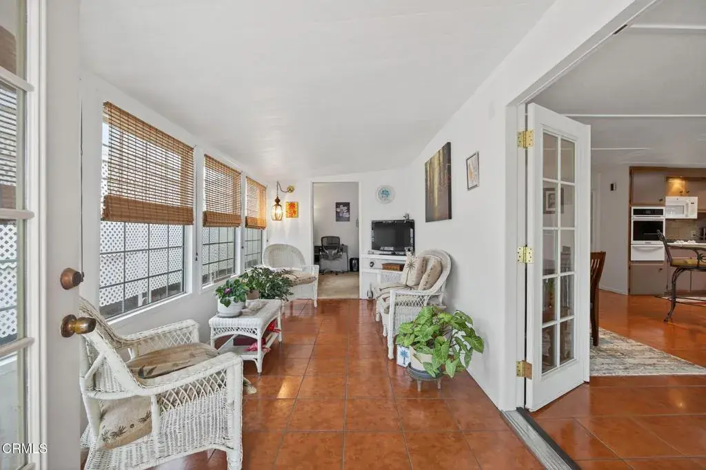 Must see it to believe it! Absolutely gorgeous, confortable, pride of ownership, many newer upgraders and so many features throughout. You will fall in love with this 2 bedroom, 2 bath immediately. The second bedroom has been converted into a craft room/Media room. Perfect for a couple who love comfort. If second bedroom is needed, it’s easy to convert it back into a private bedroom. Open concept and most furniture and newer appliances are included. A/C unit.Entrance front porch with newer tile has been added into the gorgeous sun-room. Beautiful and newer appliances, refrigerator, gas stove top, convection oven, TV in kitchen, remodeled showers, toilets and newer tub in second bathroom. French doors. Laundry room with closet and storage areas. Some pocket doors, double Paine windows, newer curtains. Sliding door behind the master bedroom, from where you can admire the outstanding mountains right from a beautiful back porch which has been added for comfort and privacy, and just to have another place to hang out, sit and relax over your favorite drink. Newer paint inside and out. The stucco walls give the home a soothing and welcoming feel of a truly upgraded home. Tasteful landscaping. plenty of storage areas throughout. Welcome home in this gorgeous and well cared property. Easy access to Ventura. Very convenient location and close to many amenities. Must check at management before submitting an offer, must proof 3 times the space rent plus $100. Credit to be 680 or better. RV parking, pets are welcome, check with manager for pet restrictions. This is a Senior Park 55+ second resident can be 40years old. Ready for a new homeowner. Schedule your showing.