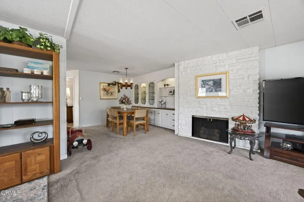 Welcome to this beautifully spacious 2-bedroom, 2-bath home located in the desirable 55+ community of Rancho Santa Paula. Nestled in a quiet and well-maintained neighborhood, this home offers comfort, space, and a wonderful community lifestyle. Inside, you’ll find a large kitchen with a breakfast bar that opens to an additional den or dining area featuring a wet bar and sliding glass doors that lead to the patio, making it perfect for entertaining or enjoying indoor-outdoor living. The home also features a separate living room and formal dining area with built-in cabinetry and a cozy fireplace, creating an inviting space for gatherings or relaxing evenings. The extra-spacious primary suite offers a private retreat with a soaking tub, dual sinks with a vanity area, and a walk-in shower. A separate laundry room adds convenience and functionality. Outside, enjoy a large covered deck ideal for relaxing or entertaining, along with a two-car carport and two storage sheds providing plenty of additional storage space. Residents of Rancho Santa Paula enjoy wonderful amenities including a community pool, spa, clubhouse, RV parking, and a park area perfect for picnics or relaxing outdoors. Additionally, there is a perfect little doggie park across the street making it so convenient for the future owner. The community offers a full calendar of events for residents to enjoy as well! This is a fantastic opportunity to enjoy peaceful living in a welcoming 55+ community with great amenities and a spacious home to match.