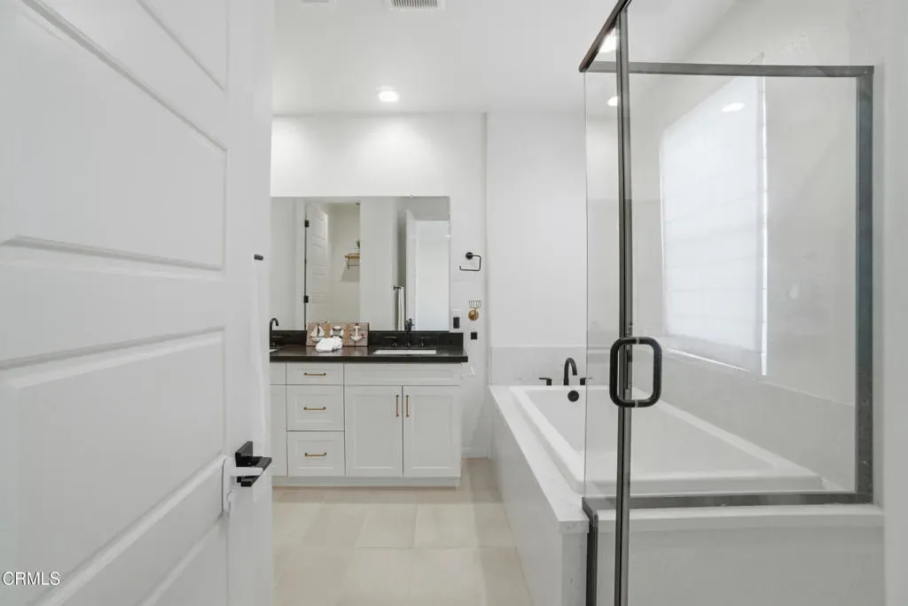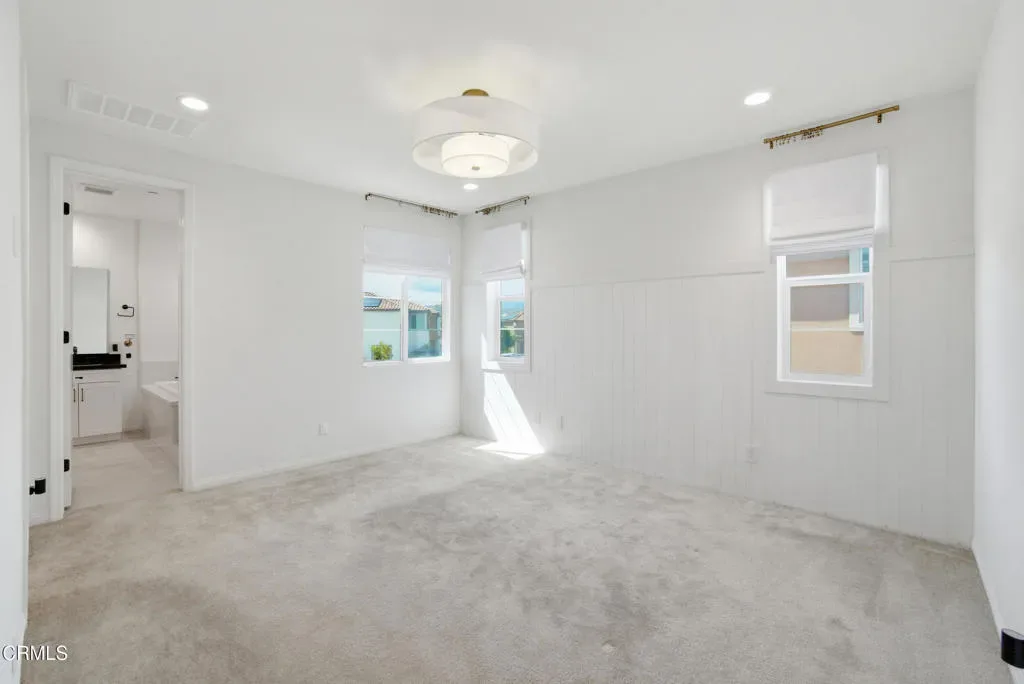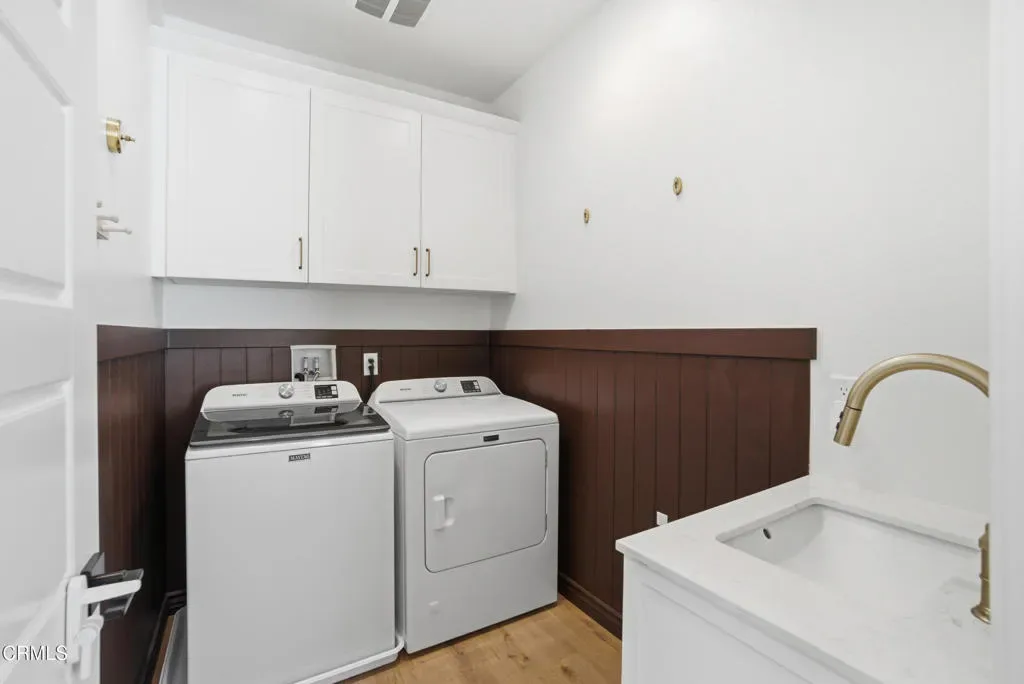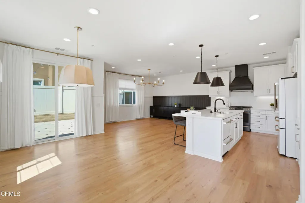 Welcome to Limoneira at Harvest, a newer community where modern living meets vintage charm. This highly upgraded immaculate 4-bedroom corner lot home offers privacy with no shared walls, mountain views and a thoughtfully designed open layout. Warm finishes, wainscoting accents and custom vintage lighting create a cozy, inviting atmosphere throughout. The kitchen features GE Cafe appliances, under-cabinet lighting and opens to a spacious living area with added cabinetry for extra storage. Enjoy turnkey convenience with custom window treatments, included washer and dryer, and a low-maintenance backyard complete with pavers, synthetic turf and storage shed. The garage is outfitted with additional shelving and the home also comes equipped with solar panels making this home as functional as it is beautiful.