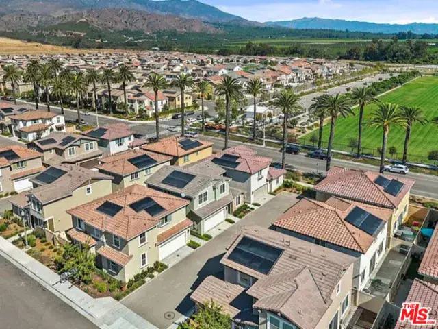 Welcome to Resort Living at the Harvest Community with 225 acres of open space, parks, bike paths and hiking trails. Nestled within this enclave, this home is a very impressive turnkey, with nearly 2000sf of comfortable and stylish living space, with 3 bedrooms (plus a loft) and 3 baths. It’s a beautiful wagon-wheel chandelier that levitates over the main seating area from its 20-foot ceilings. And it’s 8ft, “old-growth wood” encased panoramic patio doors open to the bamboo walled, gravel filled outdoor area with suspension bridge-inspired, natural-jute/manila rope patio covering, built-in seating, and raised “whiskey-barrel” fire pit, and a cute water feature that reflects the natural history of the Santa Paula area. The open layout seamlessly connects the Kitchen to the “Great Room” to the boho indoor/outdoor area. The chef-inspired kitchen is the heart of this home, featuring a large center island, granite counters, custom bamboo pendants, top-of-the-line stainless steel appliances, a walk-in pantry, and plenty of storage. Bringing groceries into the kitchen from the attached, built-in garage is a breeze, and having 2nd primary bedroom downstairs is a valuable asset. Throughout, there is new flooring with colors that bring a feeling of warmth to this special home. The upstairs has a custom rail with geometric iron work and more repurposed “old-growth wood” as a railing cap. The generous upstairs primary has a large walk-in closet (with automatic lights), an ensuite bathroom with a dual-sink counter, and separate shower and tub areas. The toilet area is also separated from the main bath. The versatile loft can be used as an office, theater, or even as another bedroom. The RING camera doorbell lets you see who’s at the door, and the smart lock allows you to open the door remotely for guests. Telling “Alexa” to turn up the thermostat or dim the lights or instructing your Wi-Fi-connected LG dishwasher to run during the day when the solar panels are producing. makes it even more fun. The Waterdrop filter system not only gives you the cleanest water, it tells you how clean: with TDS parts per million on its display. The pictures will tell you this is more than just a home, it’s a rare chance to buy your own private, customized retreat in one of Ventura County’s most up-and-coming resort neighborhoods. Don’t miss out on the opportunity.