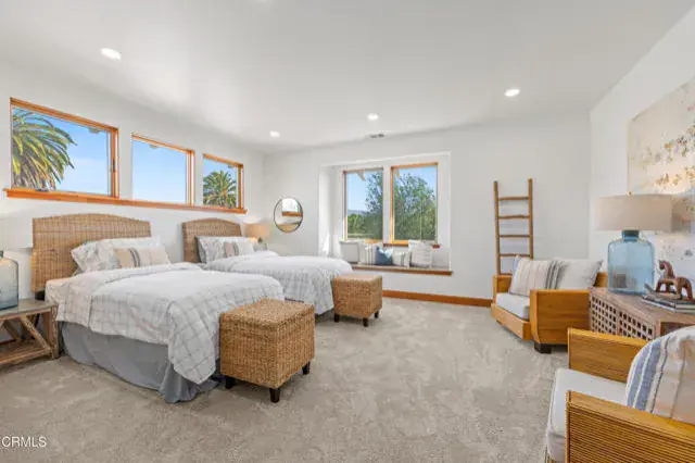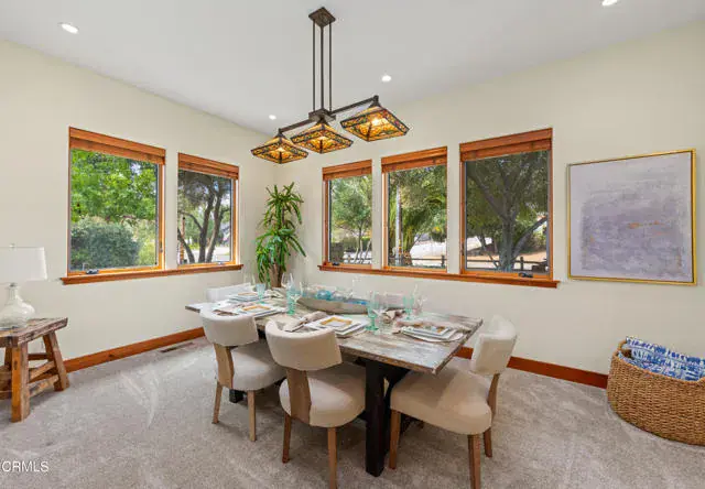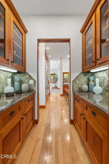 Two Craftsman-inspired homes combine elegance and modern comfort on this 0.53+/- acre Santa Ynez property, featuring a 3,722+/- sq. ft. residence and a 667+/- sq. ft. detached residential second unit. The lot offers the potential to be subdivided into two 1/4-acre parcels, creating an additional buildable site.Thoughtful design and fine finishes are showcased throughout, including rich wood floors, cherry and hickory interior doors, copper gutters, and custom cherry cabinetry. The versatile floor plan features four bedrooms and three-and-a-half baths, including two primary suites, ideal for multi-generational living or hosting guests. A dedicated office with built-in desks provides the perfect workspace, while formal and casual dining options include a sunlit breakfast nook and a refined dining room. The chef’s kitchen boasts a large island, custom cabinetry, butler’s pantry, Sub-Zero built-in refrigerator, 36” Wolf range, and Wolf microwave drawer. It flows easily into the inviting living room, where soaring ceilings and a gas fireplace create a dramatic yet welcoming centerpiece. Anderson windows and patio doors frame views of the lush landscaped grounds, enhancing the seamless indoor-outdoor lifestyle. Outdoors, enjoy manicured lawns, a spacious back patio for entertaining, and the convenience of an attached three-car garage. A timeless home blending quality craftsmanship and modern amenities in the heart of Santa Ynez Valley.