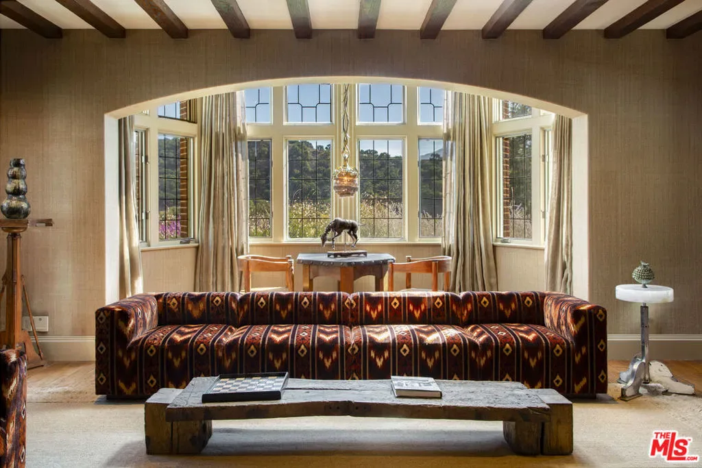 Seven Oaks Ranch is an enchanting 103+/- acre country estate situated in prestigious Happy Canyon, Santa Ynez. This idyllic estate is crowned by a magnificent residence inspired by classic English manors. Originally completed in 2002 and recently reimagined by famed designer Jane Hallworth, the interiors exude a refined elegance that honors the estate’s heritage yet with a contemporary edge. The breathtaking zero-edge pool overlooks manicured lawns against a backdrop of oak-studded mountains and the nearby pool house features an exercise room, a spacious four-car garage, and a potting room. An enchanting allee of sycamore trees leads to the stables, bordered by a kitchen garden on one side and a Rosa Rugosa hedge on the other. The stables are an architectural marvel dressed in pine wood interiors and features 4 stalls, a tack room, and a unique turret which was designed as manager’s quarters. With its private setting, breathtaking landscapes, and masterful design, this extraordinary estate offers an unmatched lifestyle in the heart of the central coast.