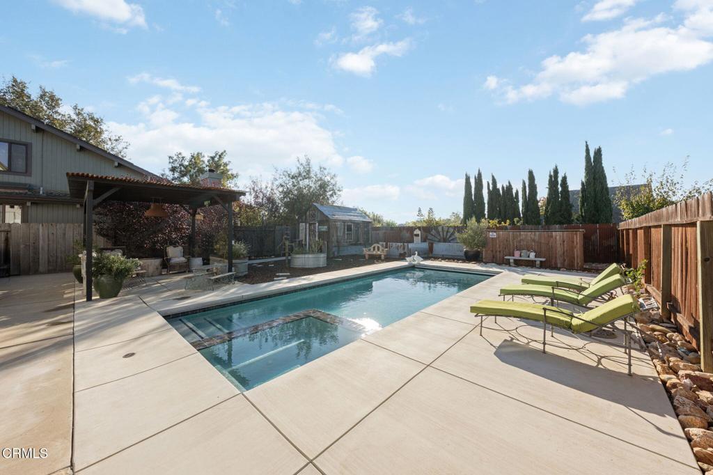 Discover the perfect retreat in this serene Santa Ynez neighborhood! This charming 4-bedroom, 2-bath home welcomes you with its grand entrance into a spacious great room featuring soaring wood-beamed ceilings and bright white walls. The stunning floor-to-ceiling rock fireplace and plentiful skylights create an airy, inviting atmosphere. Stylish hardwood flooring and authentic antique fixtures enhance the character of the home, while the open kitchen offers ample storage and functionality. The main floor hosts two guest bedrooms and a full bath, providing excellent flexibility for various living arrangements. Ascend to the upstairs primary suite, which boasts a generous bedroom with a large walk-in closet, an additional room perfect for a home office or gym with its own balcony ideal for sunset views, and a luxurious, fully remodeled bathroom that transforms daily routines into spa-like experiences. Step outside to enjoy meticulously manicured, drought-tolerant landscaping in the expansive backyard, complete with a sparkling pool and spa, a delightful She-Shed, and numerous gathering spots that are perfect for entertaining family and friends against the backdrop of breathtaking sunsets. Recent upgrades include two new sets of French doorsone opening to a private patio and the other to the poolalong with a new roof, heating system, and more. Embrace the charming farmhouse lifestyle just a 5-minute walk from all the amenities Old Santa Ynez has to offer. This home is not only spacious and comfortable but also includes a workshop for the creative enthusiast! This home is not only spacious and comfortable but also includes a workshop for the creative enthusiast!