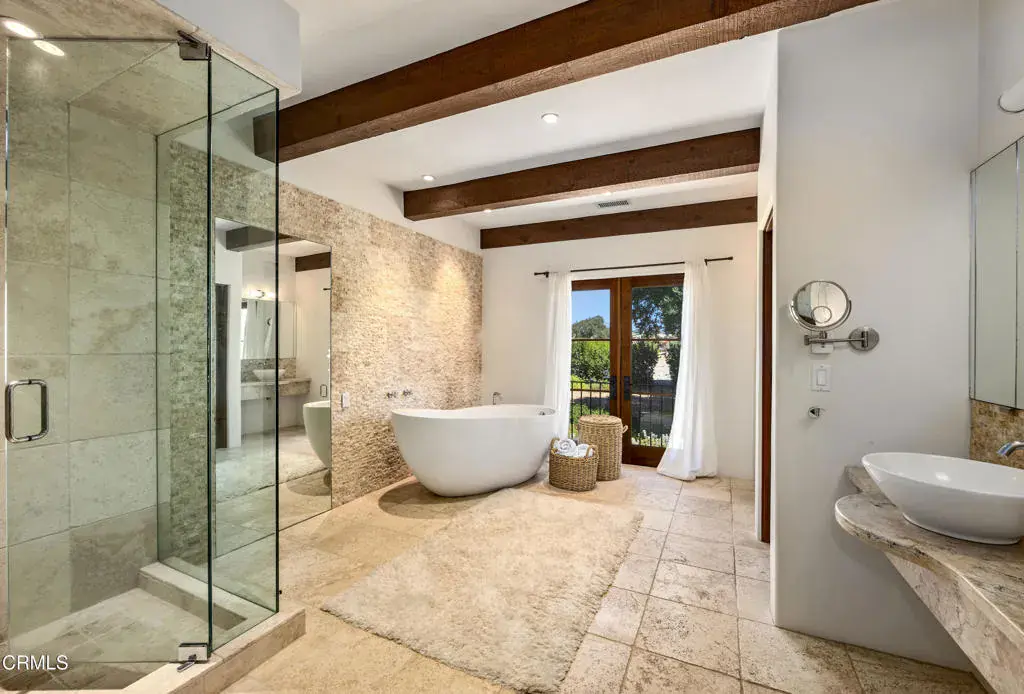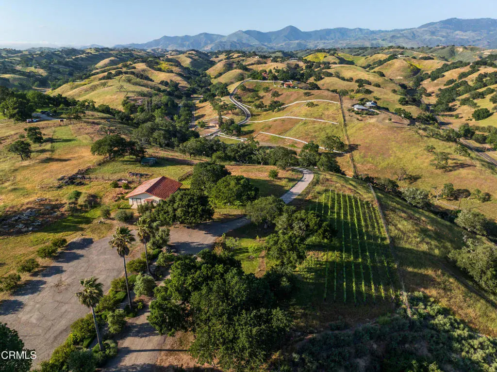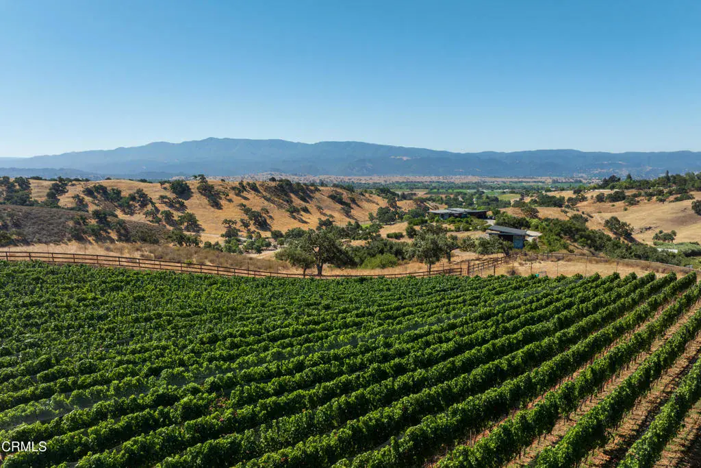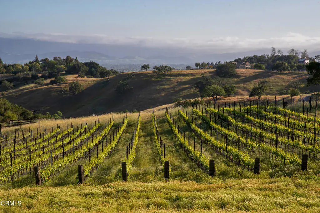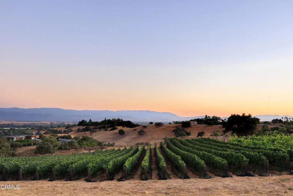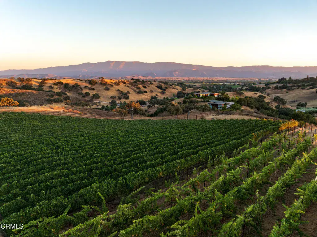 Commanding Hilltop Estate in Santa Ynez Wine Country. Elevated on nearly 20+/- acres of spectacular, unspoiled land, this estate stands as a force of nature–private, powerful, and impossible to overlook. With uncompromising 360 views, a working vineyard, and a deeply luxurious residence, this is not simply a home–it’s a stronghold of elegance and self-sufficiency. The 6,236+/- sq. ft. main residence was fully reimagined, merging scale, sophistication, and structure. Massive wood-beamed ceilings crown a grand living room anchored by a formidable stone fireplace and framed by wrought iron chandeliers. Walls of French doors and picture windows pull the landscape inward–flooding every space with light and purpose. A chef’s kitchen built to perform features a granite-clad island with seating, commercial-grade appliances, and a walk-in pantry. Formal and casual living areas flow effortlessly to the outdoors–designed for both high-impact entertaining and quiet seclusion. Six bedrooms and eight bathrooms deliver space, scale, and autonomy. Dual primary suites offer private wings with deep soaking tubs, walk-in showers, gym or office space, and breathtaking views to the surrounding landscape. Heated floors and UV-protected doors and windows. Every inch has been considered. Outside, the land tells its own story–bold, abundant, and productive. Over 4,000 own-root vines–Mourvedre, Grenache, Syrah, Roussanne, Viognier, and Sauvignon Blanc–stand in perfectly aligned rows…producing fruit of serious quality. A vast orchard supplies dozens of rare and heirloom varietals, while mature olive trees yield a robust annual harvest for the estate’s own Sunset Harvest Olive Oil Company.A two-bedroom, two-bath guest house ready for your personal enhancements, offers complete privacy for visitors, while a 10-foot-deep pool and expansive flagstone patio command center stage for recreation and relaxation.Located within the prestigious Woodstock Ranch, the property offers secured access to private wells, an extensive riding trail network, and a tightly managed infrastructure.This is a property for those who demand scale, presence, and capability. A fortress in wine country. A legacy that stands above.