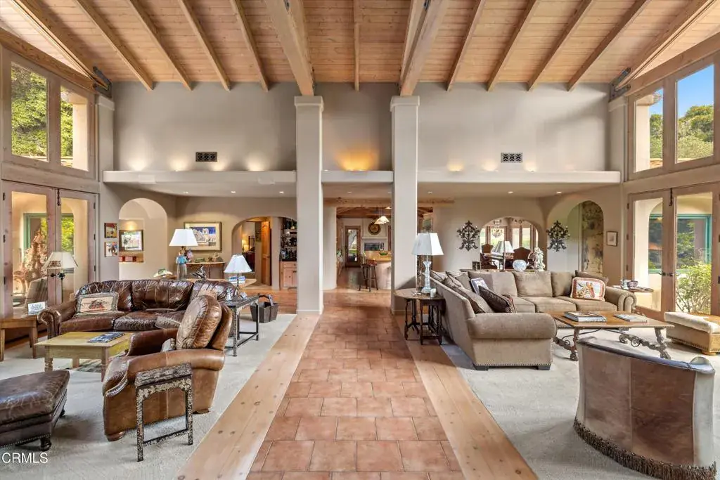 Tucked behind gates in the coveted Woodstock Ranch enclave, this exceptional Santa Ynez estate offers a rare blend of privacy, sophistication, and relaxed ranch living. Set on over 20+/- acres and surrounded by centuries-old oaks and manicured grounds, the property spans multiple thoughtfully designed structures, perfectly suited for entertaining, recreation, and retreat.At its heart is a 3,542+/- sq. ft. main residence where expansive living spaces flow seamlessly from indoors to out, ideal for everything from laid-back gatherings to elegant events. A 1,200+/- sq. ft. detached garage includes a gym and office, offering flexible space for work and wellness. The 600+/- sq. ft. cabana, with a kitchenette, bath, and lounge or sleeping area, serves as a charming guest quarters or poolside hideaway.A dramatic 2,000+/- sq. ft. party barn sets the stage for grand-scale entertaining, while a 4-stall barn with tack and storage rooms makes the property fully equipped for equestrian pursuits. Beyond the gates, residents enjoy access to miles of riding and hiking trails across Woodstock Ranch’s 2,400+/- oak-dotted acres–one of the Santa Ynez Valley’s most celebrated communities, known for its wide-open vistas, Mediterranean climate, and deep-rooted equestrian heritage.Just minutes from the acclaimed wineries, restaurants, and boutiques of Los Olivos and Santa Ynez, and a scenic drive to Santa Barbara’s beaches, this peaceful estate captures the very essence of California ranch living.