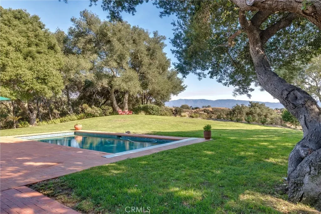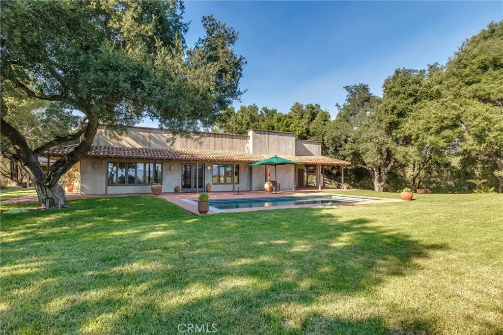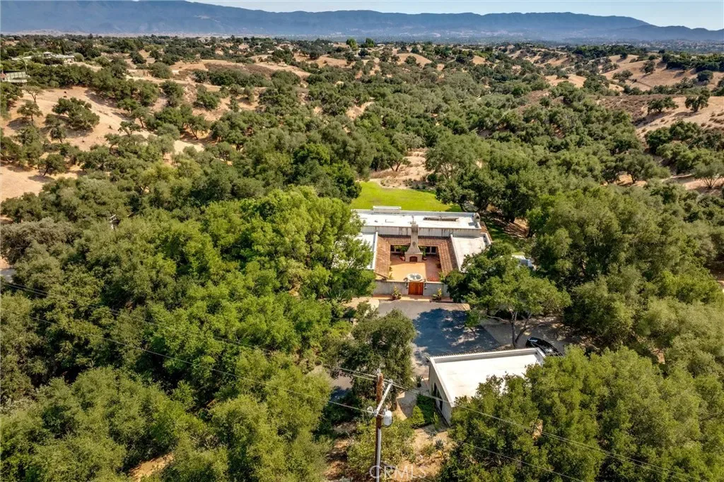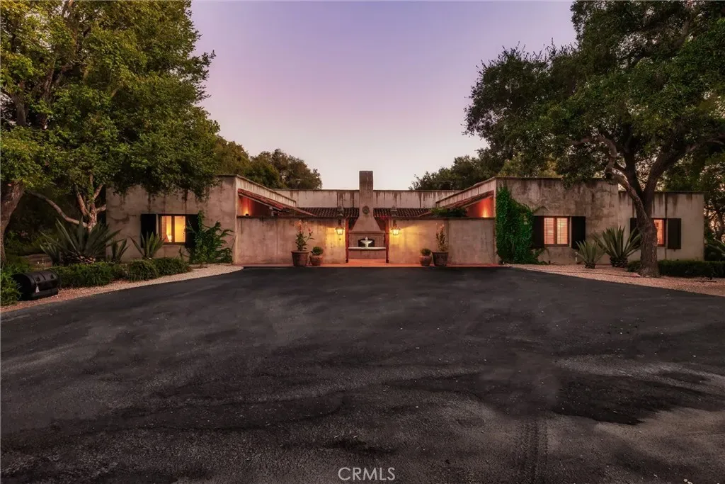 Set on 20± oak-studded acres in gated Oak Trail Estates, Fallen Oak Ranch blends timeless hacienda-inspired design with modern updates and equestrian amenities. The custom residence centers on a courtyard with fountain and fireplace, opening to a great room floorplan with grand fireplace, open kitchen, and doors to the veranda, pool, and sweeping views. Three private bedroom suites include a full primary wing with den, dual closets, and patio. Outdoor living shines with pool, kitchen, gardens, roses, and citrus. A cedar barn with stalls, workshop, loft, and refrigerated storage plus fenced pastures and orchard complete this serene retreat.