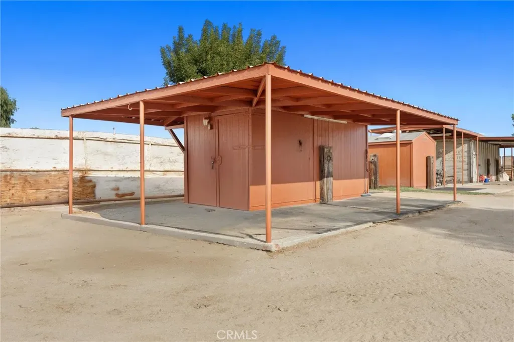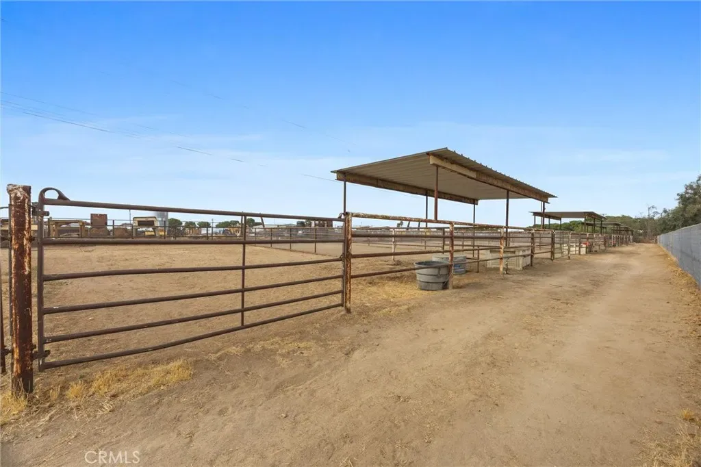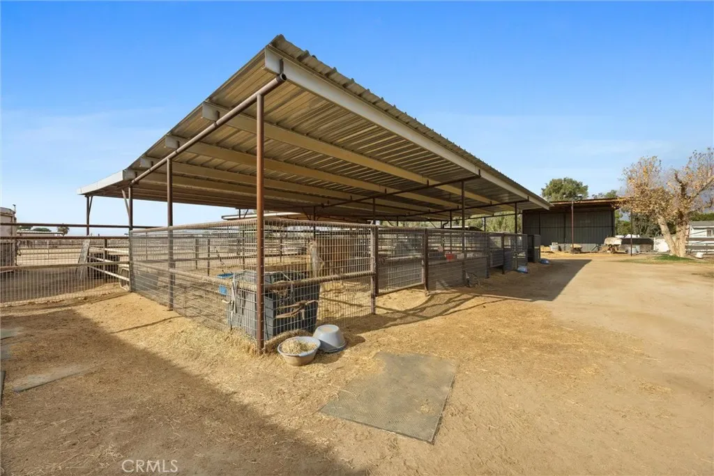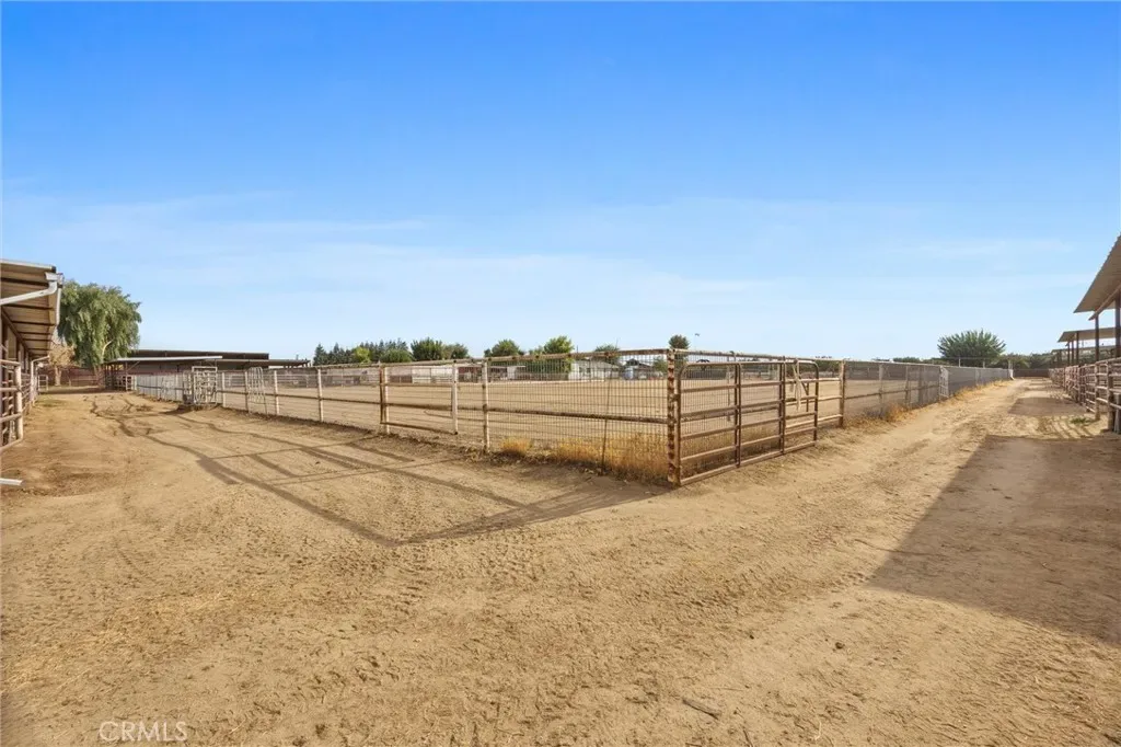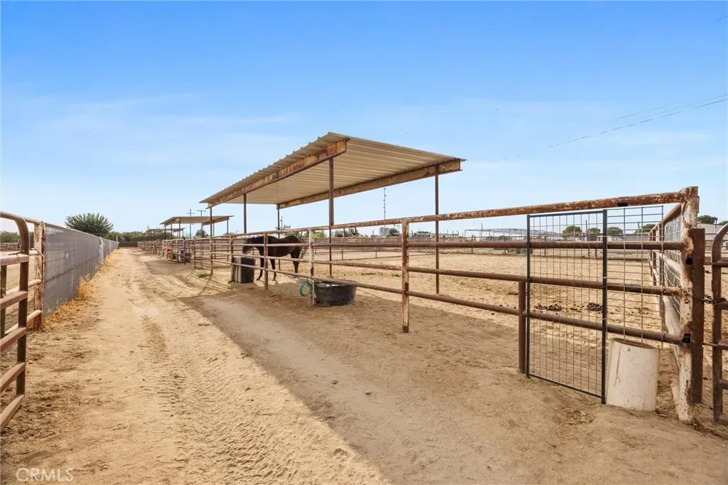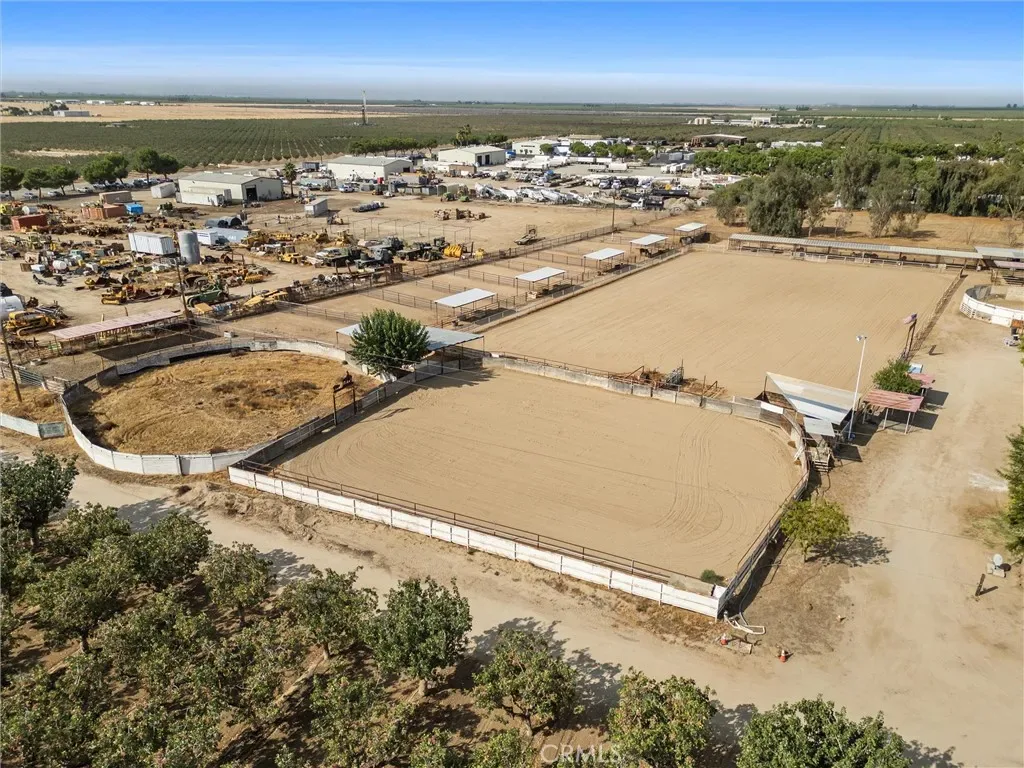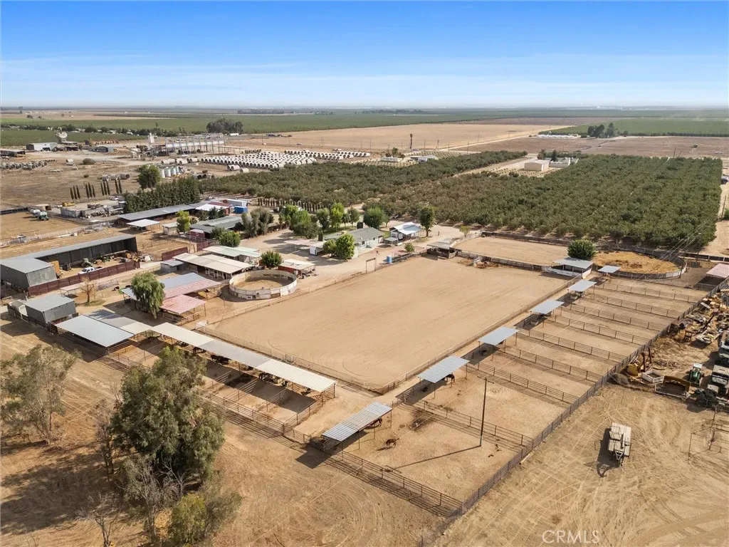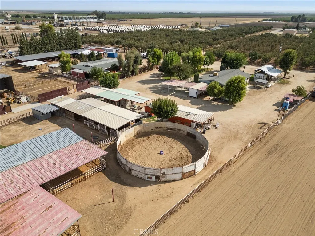 Equestrian Estate and Training Facility blends comfortable living with professional-grade performance spaces. Nestled on just shy of 5 acres, this estate features an updated 3-bedrooms, 2-bathrooms with a Bonus room residence combined with top-tier horse and livestock training infrastructure designed for serious trainers, ranchers, and equestrian enthusiasts. The property is pipe-fenced and thoughtfully laid out to accommodate 50+ horses or cattle, complete with full roping and training infrastructure, dedicated roping chute, and electronic cow. Covered horse and livestock pens ensure weather protection year-round, while multiple tack rooms provide ample gear storage. A spacious hay barn, tool room, and dedicated breaking areas support initial training and conditioning, and the large training arena/working pen is optimized for drills and clinics. Added benefits include a covered travel trailer guest house, covered dog pens, and covered carport parking, shared Well, Low Press dust control system.