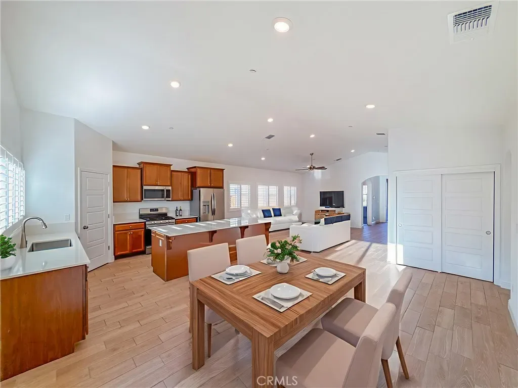 From the moment you arrive, you’ll notice the impressive oversized front door that creates a grand first impression. Step inside to soaring high ceilings, elegant plantation shutters, luxury wood-look tile flooring, and brand-new carpet in the bedrooms. Recessed lighting throughout keeps the home bright and inviting.