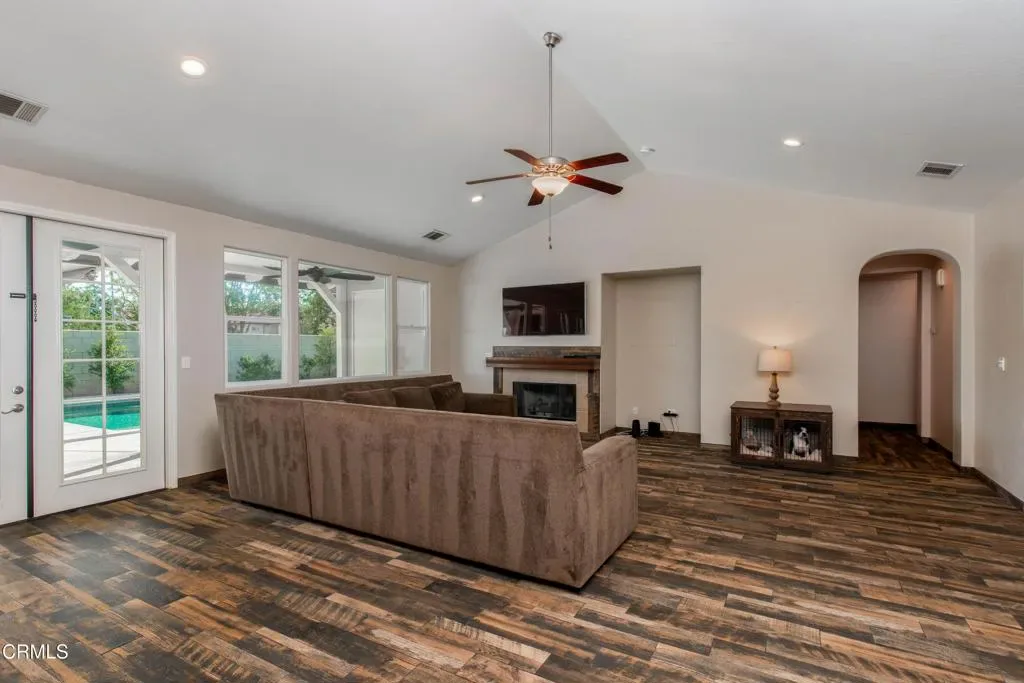 Located on a quiet cul-de-sac in the Almond Grove Estates neighborhood, this charming home offers over 2,500 sf of living space on a huge 14,375 sf lot w/ mature landscaping and inviting outdoor spaces. Inside, the open floorplan features a spacious family room w/ vaulted ceilings and fireplace, a formal dining area, and a kitchen w/ a large island, two sinks, breakfast bar, and walk-in pantry. Wood-look tile flooring runs through most of the home, adding both style and durability. Bask in the abundant natural light and views of the backyard pool offered by the primary suite, along with dual vanities, a soaking tub, and a walk-in shower. Two secondary bedrooms share an upgraded Jack-and-Jill bathroom w/ quartz counters and a dual sink vanity. Enjoy a true retreat w/ the outdoor amenities, which include a pool, extended covered patio w/ Alumawood structure, generous concrete hardscape, and low-maintenance turf lawn in back, as well as covered patio and large grass area in front.