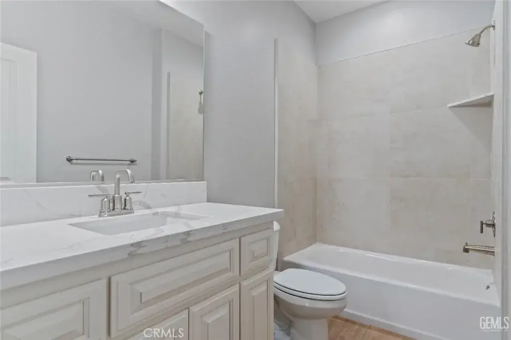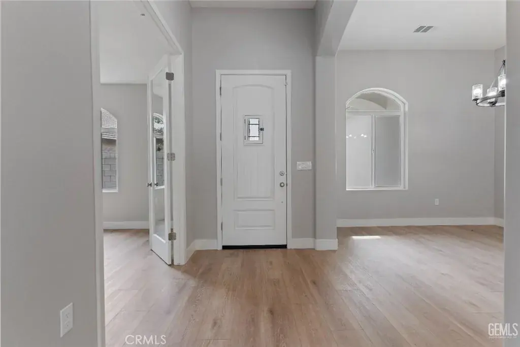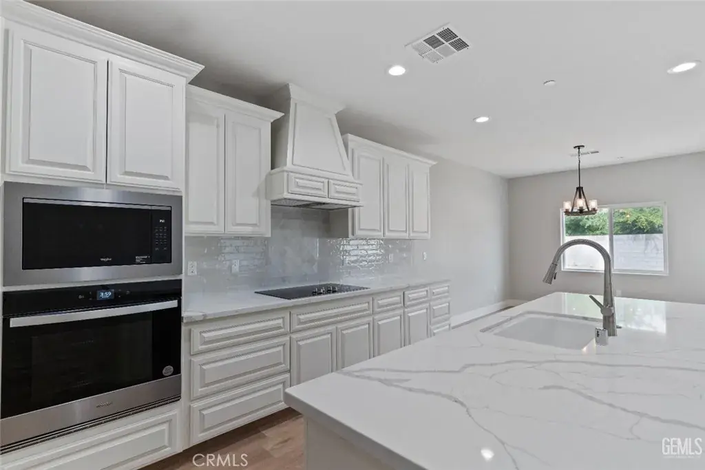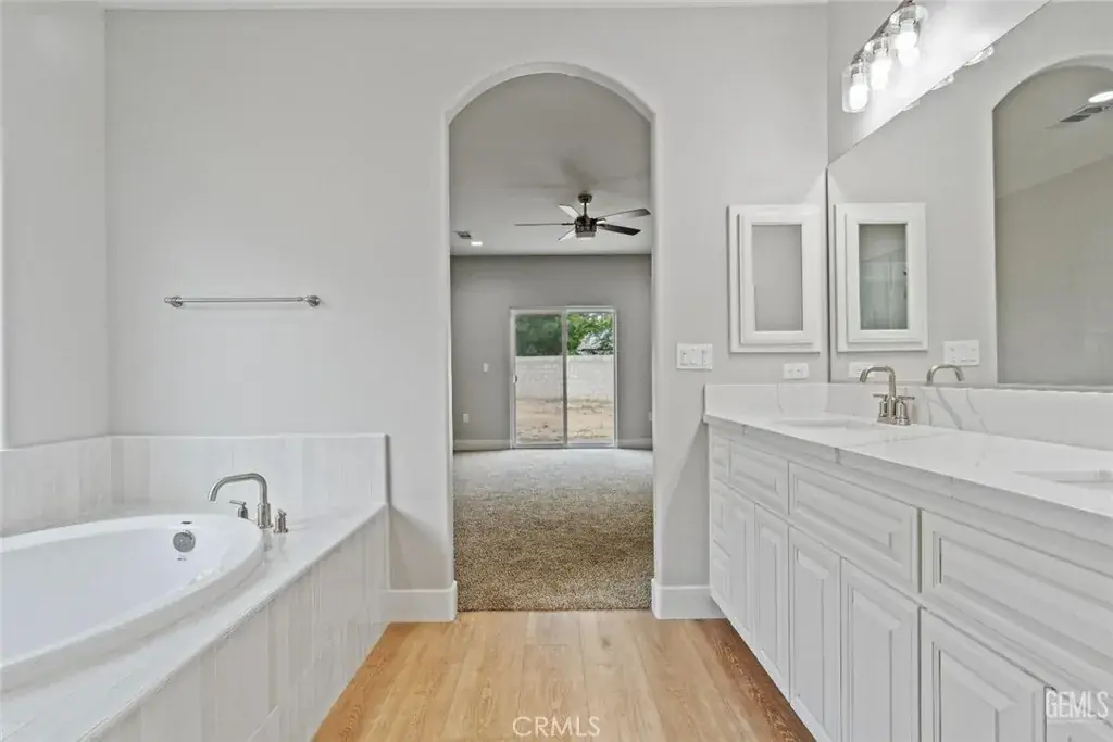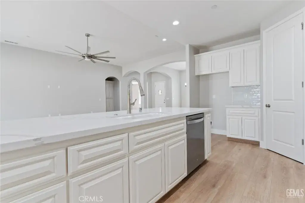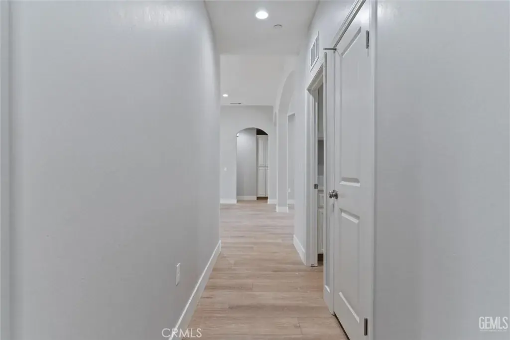 Spectacular New Construction by Russell Brucker Construction located in a cul-de-sac in NW Bakersfield. Featuring approx. 2,576 sq ft on an 11,325 sq ft lot, this split wing design offers 3 bedrooms plus office, 3 bathrooms, and a spacious utility room. Enjoy LVT flooring in living areas, walkways, and kitchen. The 3-car finished garage includes baseboards, and along with gated RV parking with wrought iron gate. Exterior upgrades include acrylic stucco, tile roof, stucco eaves, cinder block walls, and owned solar. The chef’s kitchen boasts custom white cabinetry with soft-close maple interiors, quartz countertops, stainless appliances, a walk-in pantry, and farmhouse sink overlooking the great room with oversized 3-panel slider to the patio. The primary suite offers patio access, a luxurious soaking tub, glass-enclosed tile shower, and large walk-in closet. This property is ready for a quick escrow!