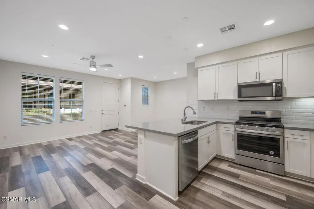 This beautiful condo offers one of the greatest locations in Simi Valley. Just a block to Super Target, and an additional block or two to shopping, a variety of restaurants (fast food to fine eateries), parks, hiking trails, award winning schools, and so much more! When you purchase here, you become part of an amazing community! The Westerly offers so many amenities including a community pool & BBQ area, separate children & pet parks, even a bocce ball court. Inside one enters into the family great room with high ceilings and wood like laminate flooring. The kitchen offers plenty of cabinetry, quartz counters, stainless steel appliances and a large reach-in pantry. There is also a 2-car, direct access, garage. Upstairs, you’ll find all 3 bedrooms, a guest bath and the laundry room (for easy convenience). The primary bedroom is good size and will fit your entire bedroom set with room to spare. The en-suite primary bath has a dual sinks, quartz counter vanity and huge shower plus a walk-in closet. When commuting- you’re just a couple of blocks to the 23 & 118 freeways to get you anywhere in SoCal. Come find out why the Westerly is one of Simi Valley’s premier communities. It’s time to come home!