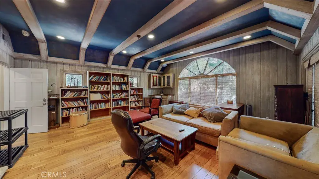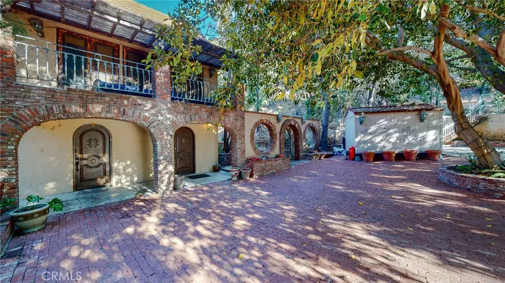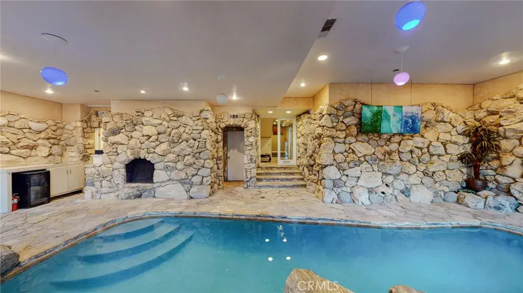 A secluded and private spa-like compound with beautiful grounds and historic California oak trees makes this the perfect live-work environment… secure yet close to Los Angeles and a short drive to the beaches of Malibu or the hiking trails of Topanga Canyon. The main house features an indoor swimming pool, a hot tub, a sauna, and a steam shower. There are acres of outdoor space in a park-like setting. Yet, you are close to freeways and trains to the center of L.A. Featured in many movies and TV shows, this is the perfect place to entertain, as it combines the best of California’s indoor/outdoor lifestyle… You’ll feel like you’re on a ranch. The main house of approximately 5,000 square feet features 6 bedrooms and 3 baths, including a romantic honeymoon suite, a magnificent dining room with a stone fireplace, an elegant library with decks, and a bright living room with a real wood-burning hearth. The indoor spa and pool feel like a European resort with a stone grotto. A separate entrance from the driveway makes this perfect for a home business or studio, with lots of parking and surrounded by nature.