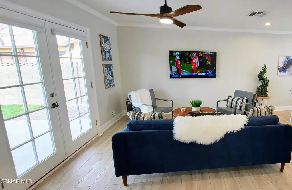 **FULLY FURNISHED Short or Long-Term Rental** We offer temporary housing for Work, Travel, Remodel, House Hunting, Insurance and more. A beautiful and spacious nature-inspired home conveniently located in central Simi Valley, fully remodeled with upscale amenities including 3 big-screen smart TV’s. Enjoy the bright, open floor plan with a bedroom and full bathroom downstairs. Experience glorious sunsets from our enormous yard with BBQ, loads of seating, dining and covered patio to enjoy those summer evenings! We are a few short blocks from Frontier Park with miles of waterside walking and biking trails. You will be close to restaurants, tennis, hiking, golfing, shopping, horseback riding, wine tasting, The Reagan Library and the Santa Susana Railroad Depot. We are an experienced family owned and operated provider of short term rentals with several years experience working with all of the largest national and local housing companies. Our properties are managed by a professional real estate Brokerage with over 20 years of Property Management experience and a dedicated property support team.