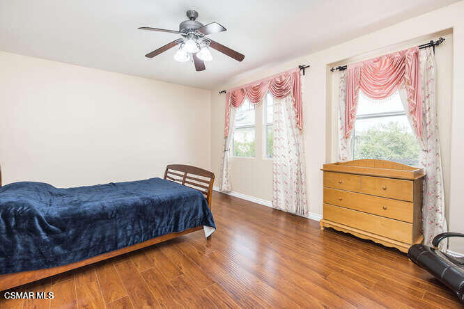 Beautiful modern home that is eco-friendly in West Simi Valley featuring, 4 spacious bedrooms with 3 full bathrooms (1 Bedroom and full bathroom downstairs), solar panels to reduce those electric bills, formal living & dining room. Family room with built-in surround sound with 5 speakers ready to hookup. Open-style kitchen with a large granite island breakfast bar, beautiful backsplash, stainless steel appliances,4 door refrigerator and tile flooring. Lovely wood flooring, crown molding, custom paint, 2.5 inch blinds, upstairs work area, upstairs laundry room with large capacity washer and dryer, built-in storage in the closets,. Well-manicured backyard, with stone pavement patio, Teak wood table & chairs, ample area for gardening. Tile flooring in the kitchen, bathrooms, laundry room and master closet. Fabulous garage with electric car charging outlets for 2 cars, epoxy flooring, wall-to-wall cabinets, mirror, TV & game hook up, HOA amenities include a gated pool and spa, and a gated park. Ring home security system with 3 cameras, ring doorbell and Nest Wi-Fi thermostat can be used for a added fee to the rent. You don’t want to miss this beauty.