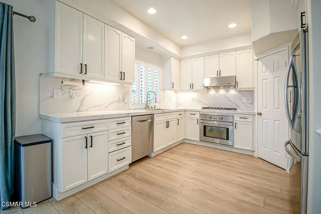Experience the ease of a modern build without giving up the warmth, privacy, and maturity of one of Simi Valley’s most desirable gated neighborhoods. Located in Parklane, this thoughtfully upgraded home offers the kind of finish quality and livability that’s hard to find in today’s new construction–where you’re often starting with little more than a shell.The owner has invested heavily in meaningful upgrades throughout the home, beginning with wide-plank luxury vinyl flooring and durable, stain-resistant interior paint with a polymer finish designed for real life. The kitchen has been fully remodeled with Calacatta-style quartz countertops, modern cabinetry, and stainless steel LG appliances, including the refrigerator and range–all included. Televisions throughout the home are also included, allowing the next owner to move in with ease.Comfort and efficiency were equally prioritized. The HVAC system is newer, along with updated ducting and venting, and the garage is equipped with an electric vehicle charger. A full security system, including smart features, comes with the home, complementing Ring cameras and Nest thermostats for a connected, lock-and-leave lifestyle.The interior feels open and bright, with views out to a serene, private yard featuring a beautifully manicured garden–perfect for quiet mornings or casual entertaining. This home is one of the few in the community with its own driveway and enjoys the added privacy of no direct neighbors across the street.Parklane residents benefit from an HOA that truly enhances daily living, covering the gated entry, streets, green spaces, community center, pool, parks, and common areas. Ideally situated near the border of Wood Ranch, the location offers quick access to the 118 freeway, nearby shopping and dining, and everyday conveniences–all while maintaining a peaceful, neighborhood feel.Turnkey, well-appointed, and thoughtfully improved, this home delivers a level of quality and comfort that stands apart in today’s market.