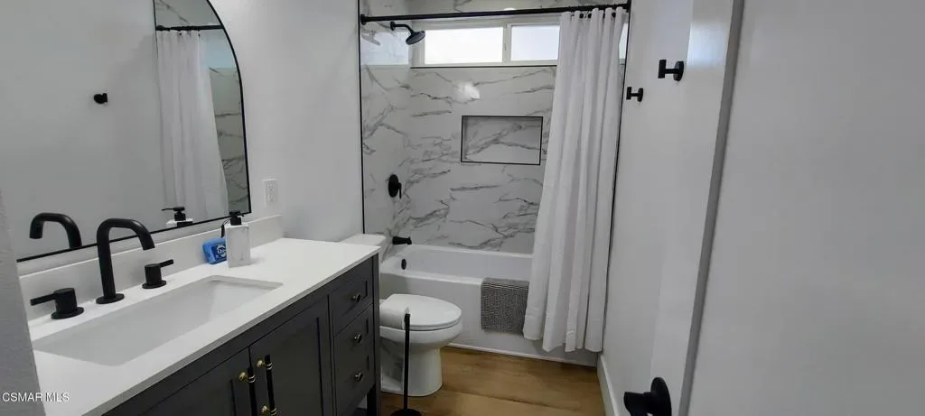 **FULLY FURNISHED Short or Long-Term Rental** Pretty as a Picture! Our 4 bedroom 2 bath single level home has just completed an extensive remodel and is ready for you to enjoy! The main living area consists of a large living and dining room combo and features lots of natural light and a 75” Smart TV. We feature high ceilings, air conditioning and high-speed wifi. There are 4 bedrooms, 3 with desks and a large master bedroom with newly remodeled en suite bathroom and huge walk-in closet. The center island kitchen has both a breakfast bar and it’s own dining set. It has plenty of storage and is fully stocked for your culinary endeavors. The large covered patio has plenty of space to enjoy the afternoon with 2 rocking chairs, a dining set and BBQ. Complete the picture with a quiet cul-de-sac location right in the heart of Simi Valley near parks, shopping, schools and more.