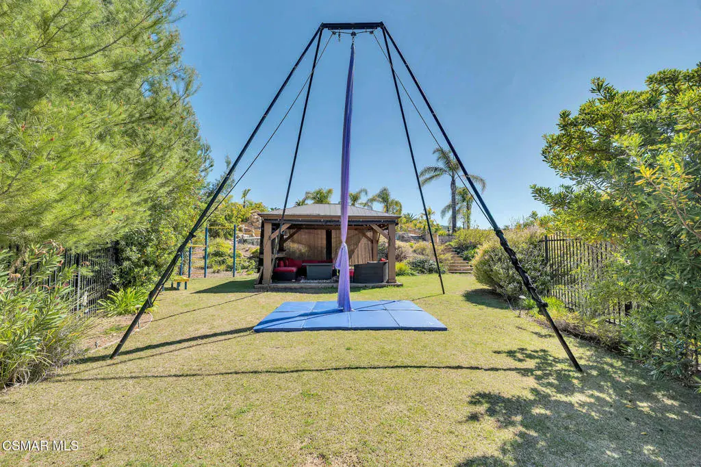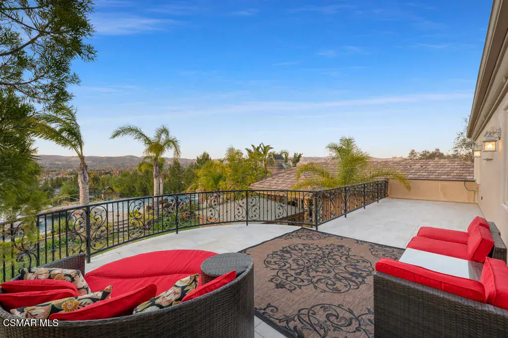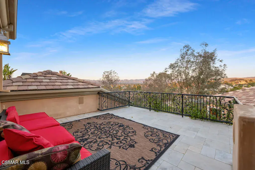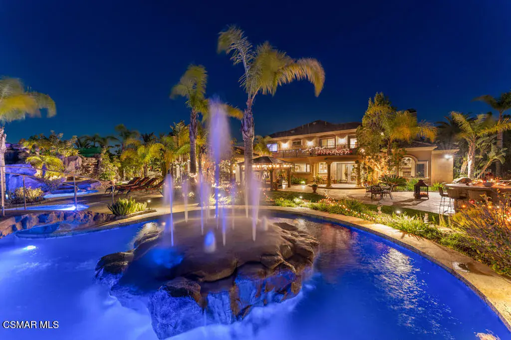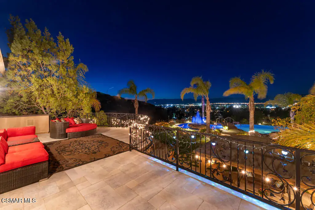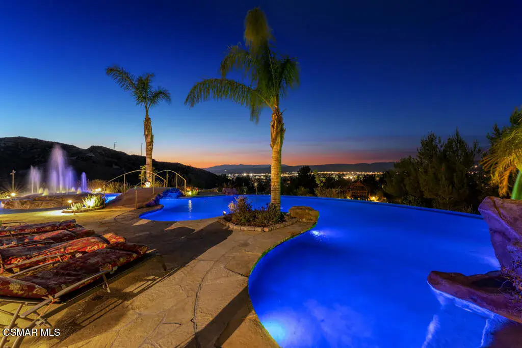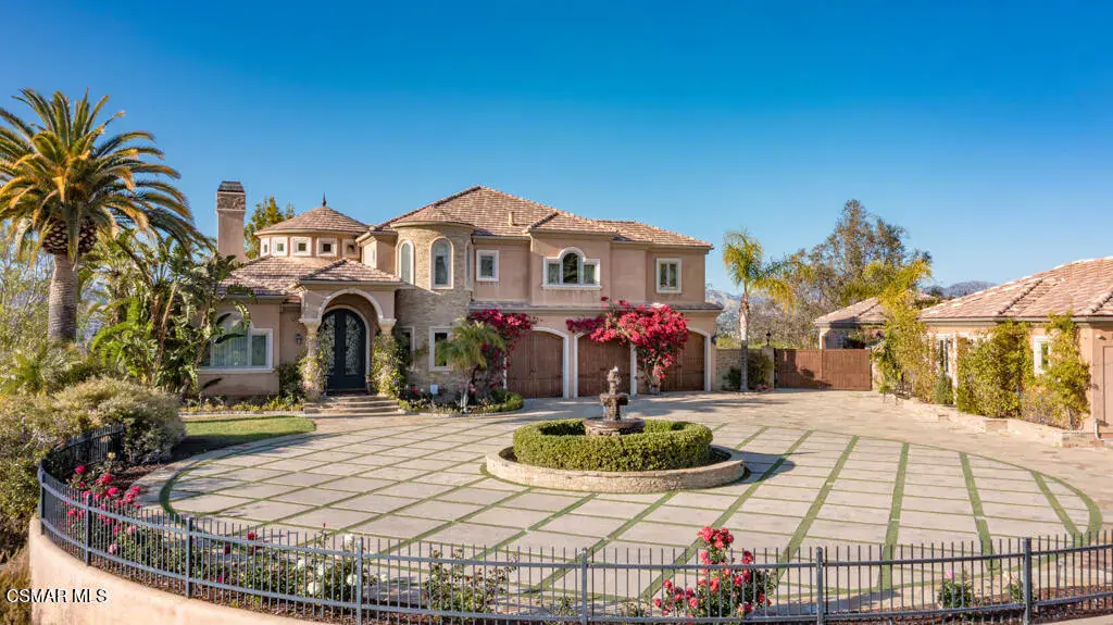 A hidden sanctuary on a hilltop in Southwest Simi Valley, this thoughtfully designed custom-built Mediterranean style home on 3.8 acres offers 360 degree breath taking views. Big backyard with duel level Koi pound has waterfall with living turtles, entertaining areas which include Infinity Pebble Tec pool with Baja shelfs and multicolor changing lights, rock waterfall with underneath grotto, fountain, slide, private spa, stone-surround fire pit, the outdoor kitchen, RV access, hillside avocado and various fruit orchard, kids playground, sports ground, vegetable garden, own solar system on the slope with capacity 29967 KW per year. Seller has architectural plans for well drilling with connection to the whole water system on the property. This amazing estate of a total 7,429.5 SqFeet living space includes 5,326 sq ft main house with 4 bds and 3,5 ba and 2 view balconies; 1,202.5 sq ft guest house with 2 bedroom, 2 bathrooms, living room, granite fireplace, and a balcony built in 2017; 484.5 sq ft wellness center house with cedar sauna, steam room, infrared sauna, large resting room with massage tables built in 2014; 112 sq ft playhouse with with retractable staircase to the capacious attic and its own half bath; 304.5 sq ft subterranean wine cellar. Marvelous choices of marble, stone and wood harmonize every room with dignified decorum. The chef will love the enticing kitchen with stainless steel Thermador professional appliances, granite counters, hand carved spacious cabinets and dramatic views from every window. Many more amenities! Everyone will find their favorite place in this beautiful property!