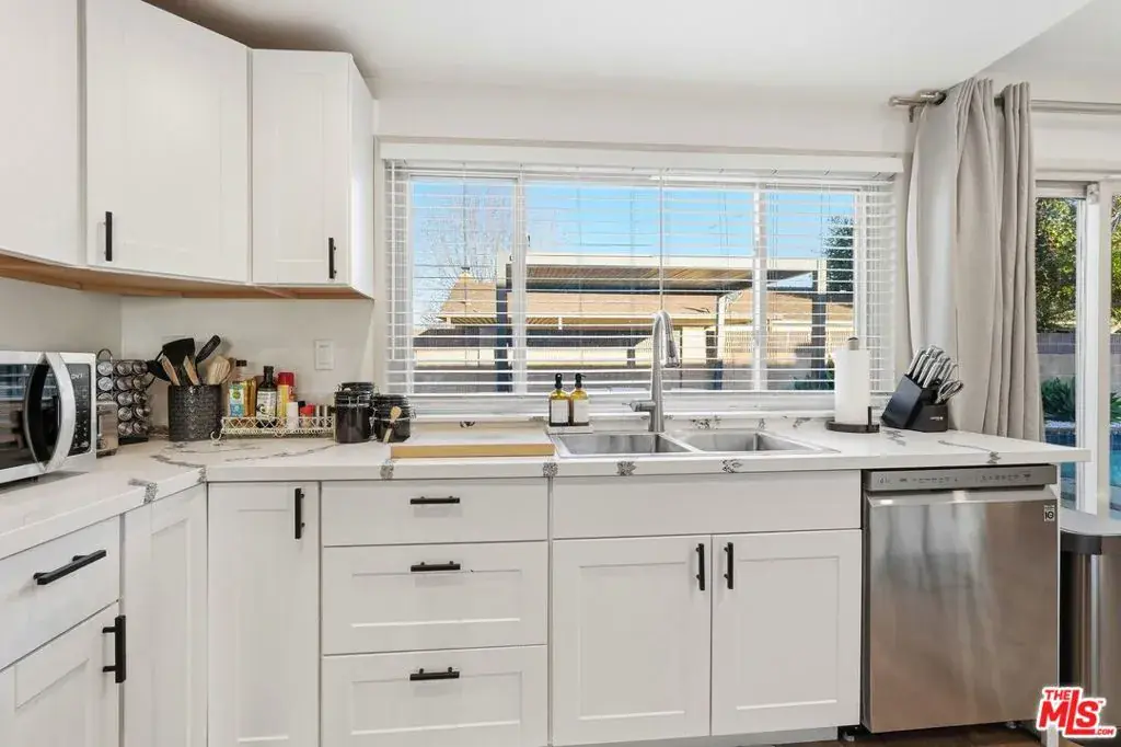 The Ultimate Modern Oasis in Mountain Valley – Nestled against the scenic Simi Valley foothills, this 3-bedroom, 2-bathroom home features plenty of designer upgrades. The front entry opens into a step-down living room with vaulted ceiling, statement fireplace, and an abundance of natural light. Step up formal dining area is the perfect spot to entertain dinner guests. Or repurpose the space as an office nook, library, play area, and more. The chef’s kitchen is completely updated with gorgeous counters, new cabinetry, stainless steel appliances, modern stove and range. Retreat to the primary suite with en suite bath or one of the two spacious secondary bedrooms. Light pours in through the floor-to-ceiling glass wall off the kitchen, where you have a full view of your private backyard paradise. Open the sliding glass door and step out for a dip in the sparkling in-ground pool and spa or relax under the shade of the beautiful pergola. Centrally located within close distance to local schools and parks, this home is ready for move-in.