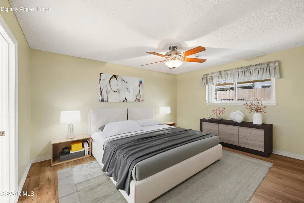 Welcome home to this low-maintenance, move-in ready 2 bedroom, 2 bath residence with a versatile den addition–perfect for a home office, hobby room, reading retreat, or comfortable guest space. Ideally situated in the heart of Simi Valley, while tucked into a nice, quiet neighborhood.Inside this beautiful home you’ll notice a vaulted ceiling at the entry, newer dual paned windows and the main living areas feature wood laminate flooring for a clean, modern look that’s easy to maintain. Central A/C keeps the home comfortable year-round, and ceiling fans in both bedrooms add an extra touch of efficiency and comfort. This home also offers important updates for peace of mind, including a new exterior fence professionally installed less than one year ago, and a newer roof and fresh exterior paint.Designed with easy living in mind, both bedrooms include custom closets to maximize organization and storage–ideal for simplifying day-to-day life. An attached garage with direct access to the home adds welcome convenience, whether you’re coming home with groceries or looking for secure, easy entry.So if you’re looking for a turnkey, comfortable, manageable home in a central location, this inviting Simi Valley property is ready to welcome you.