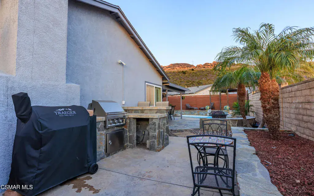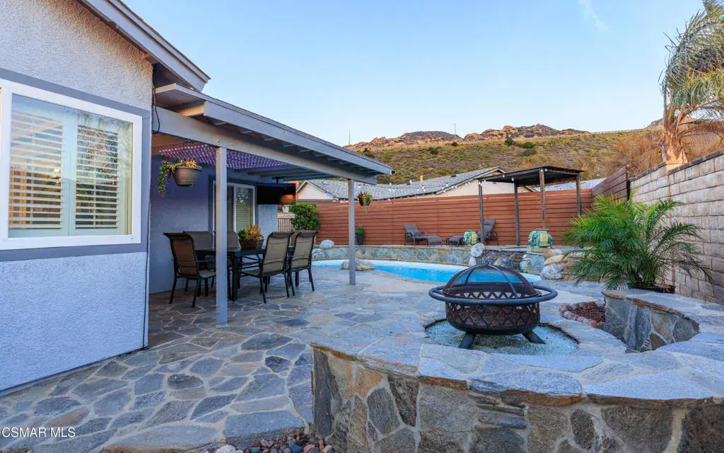This beautifully upgraded single-story pool home offers 3 bedrooms plus a bonus room (optional 4th), 1,464 sq ft of living space on a 6,534 sq ft lot, and the best curb appeal in the neighborhood. Inside, you’ll find vaulted ceilings, slate flooring, a cozy fireplace, and a stunning chef’s kitchen featuring an oversized granite island, abundant pantry space, stainless steel LG appliances, and a commercial-size refrigerator. The remodeled primary suite and bathroom includes dual closets, vaulted ceilings, backyard access, and a spa-like bathroom with double sinks and a heated bidet. Designed for true indoor-outdoor living, the entertainer’s backyard showcases a pool, spa, built-in BBQ, covered patio, fire pit, two storage sheds, and sweeping 360 views. Major upgrades include a new roof, new AC, new front windows, updated garage door, custom aluminum gates, app-controlled lighting, LED recessed lights, and more. Conveniently located near parks, hiking trails, award-winning schools, shopping, dining, and easy access to the 118 freeway. A rare turnkey opportunity combining style, comfort, and lifestyle!