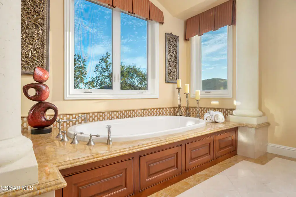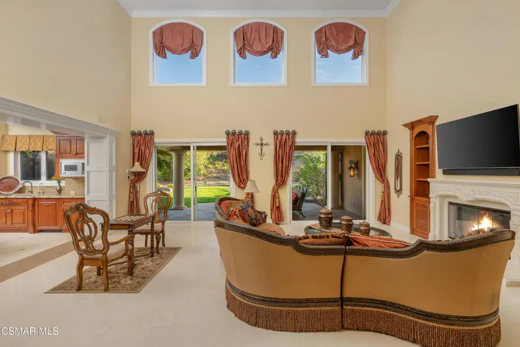 A PRIVATE HILLTOP MEDITERRANEAN / TUSCAN-STYLE LUXURY ESTATE.Perched atop a secluded hill with sweeping mountain views, including the iconic Whiteface Mountain Ridge. This Tuscan-inspired estate blends timeless design, fine craftsmanship, and modern comfort for an exceptional indoor-outdoor lifestyle. Built in 2009, the residence offers 5,380 sq. ft. of refined living space on 2.73 private, gated acres. Designed for both elegance and function, the home features six rooms: four spacious ensuite bedrooms, each designed to provide comfort and privacy for family or guests, a serene reading room, and a large home office.Enter through a striking handcrafted wrought-iron doors with detailed scrollwork into a grand foyer with soaring 25-foot ceilings, a dramatic chandelier, arched columns, and elegant travertine flooring. A sweeping curved staircase with decorative wrought-iron railing sets the tone for the refined interiors. Oversized windows and doors flood the home with natural light, enhancing its warm, open ambiance.The chef’s kitchen is equipped with top-of-the-line Viking appliances, Sub-Zero refrigeration, custom kitchen cabinets with an oversized island ideal for entertaining along with prep kitchen with warming drawer and butlers pantry. A custom, temperature-controlled walk-in wine cellar adds a luxurious touch for connoisseurs. Throughout the home, high-end finishes–such as hand-distressed solid American hardwood floors, granite, marble, and travertine–elevate the design. The formal dining and living rooms are enhanced with custom copper-toned paint, while the great room anchors the home with a fully integrated surround sound entertainment system. The ground-level guest suite provides lovely comfortable accommodations for in-laws and visitors.The upper East wing of he residents offers two bedrooms and a spacious home office, each with breath taking views of the surrounding hills. The West wing is dedicated to the luxurious primary suite, accessed through double doors and a grand hallway with 2 walk in closets. This private retreat features a separate reading room with a dual-sided fireplace and a private balcony overlooking the majestic Whiteface Mountain Ridge–perfect for morning coffee with a view.The spa-like primary bath is inspired by ancient Roman baths, showcasing detailed stonework, an oversized drop-in Jacuzzi tub, and a steam shower to help you unwind in complete luxury.Step outside and enjoy resort-style amenities including a custom pool and spa, an outdoor kitchen with professional-grade appliances, a cozy fire pit, private basketball court and an enlarged covered patio area great for hosting large events. With an expansive amount of color stamped concrete patios, walkways and round about driveway complement the lush landscaping, palm trees, while an expansive orchard of more than 150 fruit trees, 15 grape vines and raised garden beds complete the grounds. All this and 32 panels of 8.16kw ground mounted solar electric system owned free and clear. This remarkable estate is a rare opportunity to own a luxurious retreat where elegance and natural beauty converge. Experience this beautiful Tuscany Estate at 2462 Lost Canyon. This residence was conceived and executed by the same distinguished team responsible for some of Sherwood’s finest estates:Cartier Construction – Richard Cartier, Master Builder.RM Designs – Robert Matola, Architectural Design.Sophisticate Interiors – Sophie Idan, Interior Design.