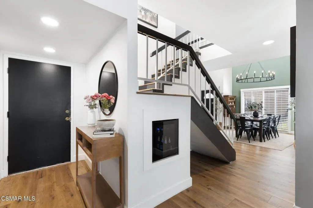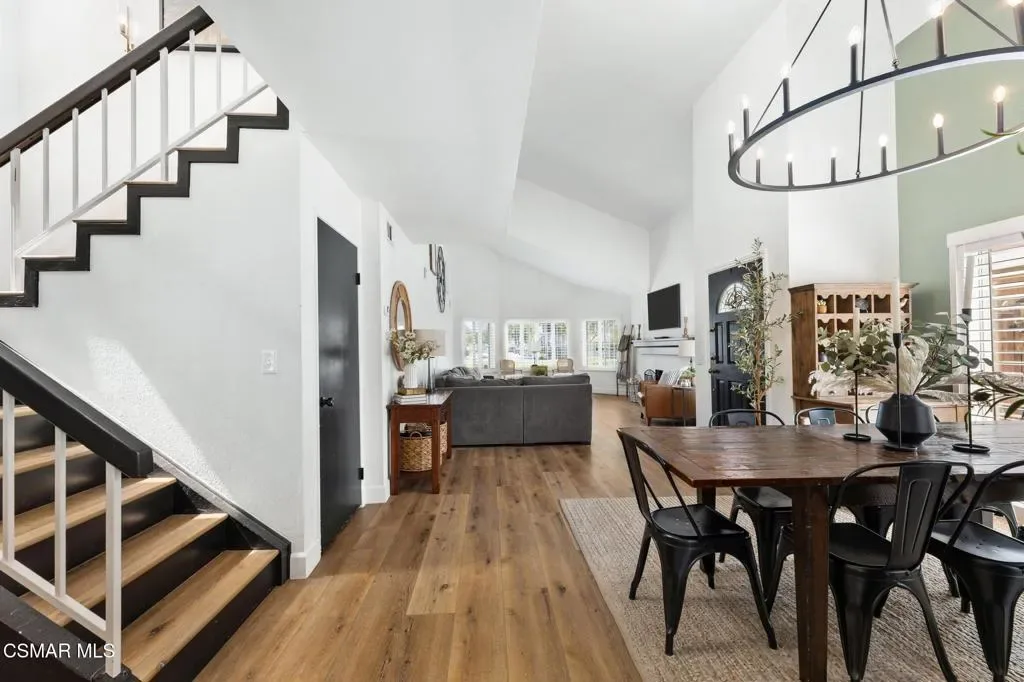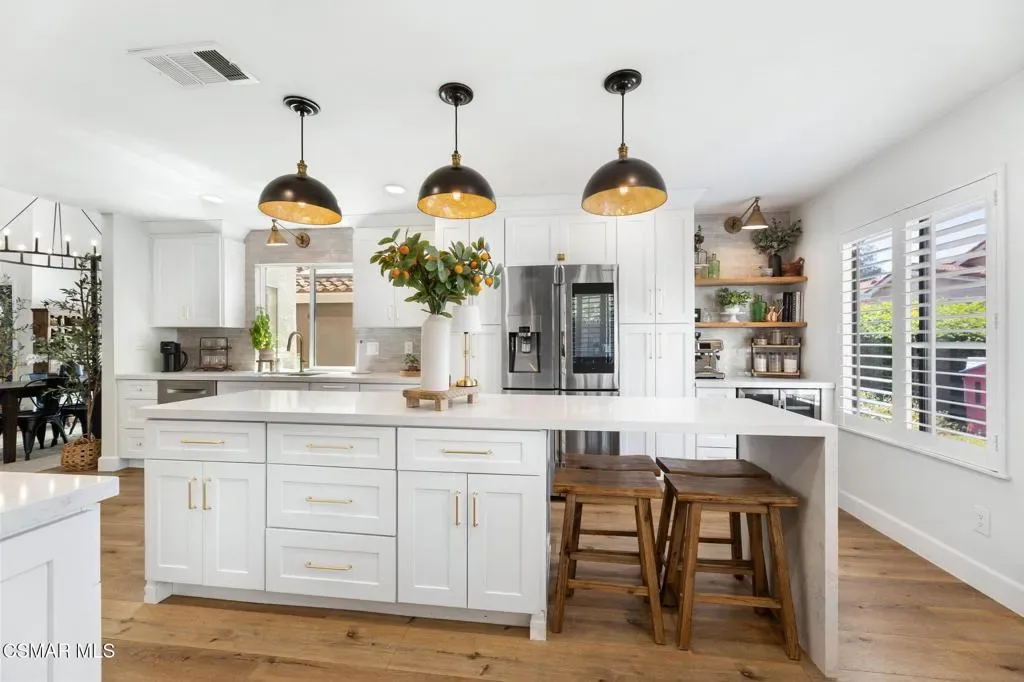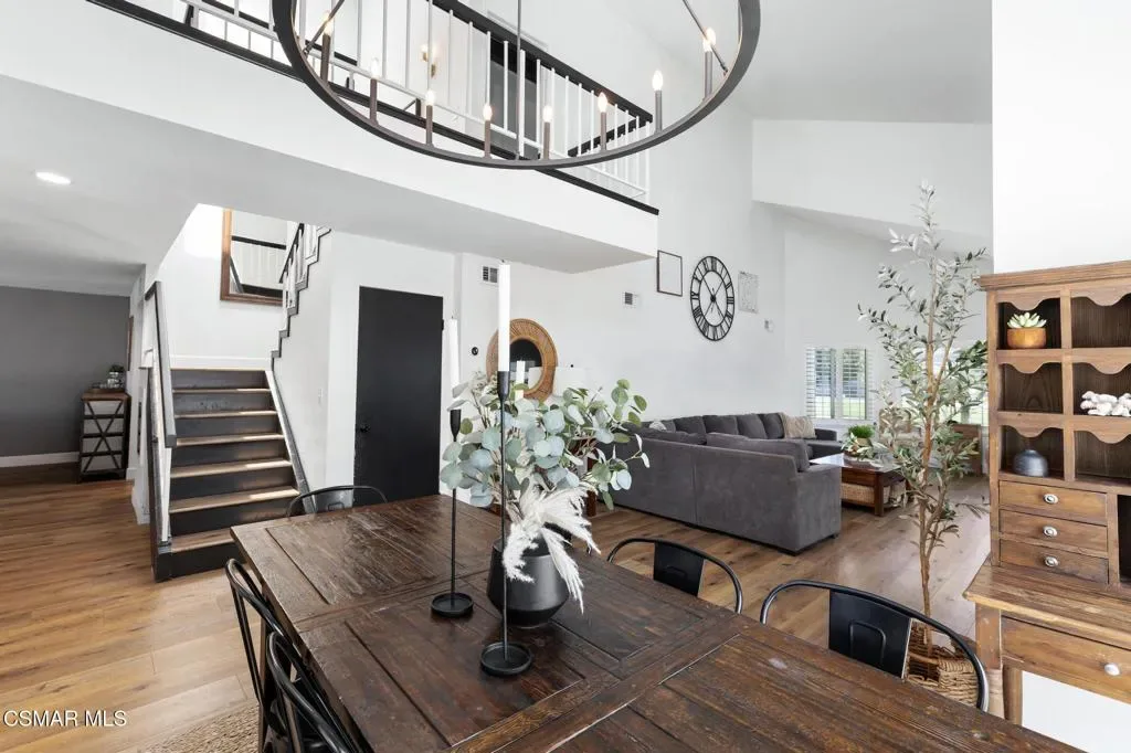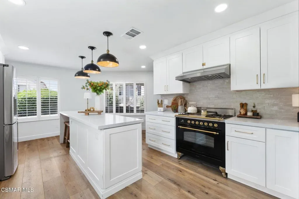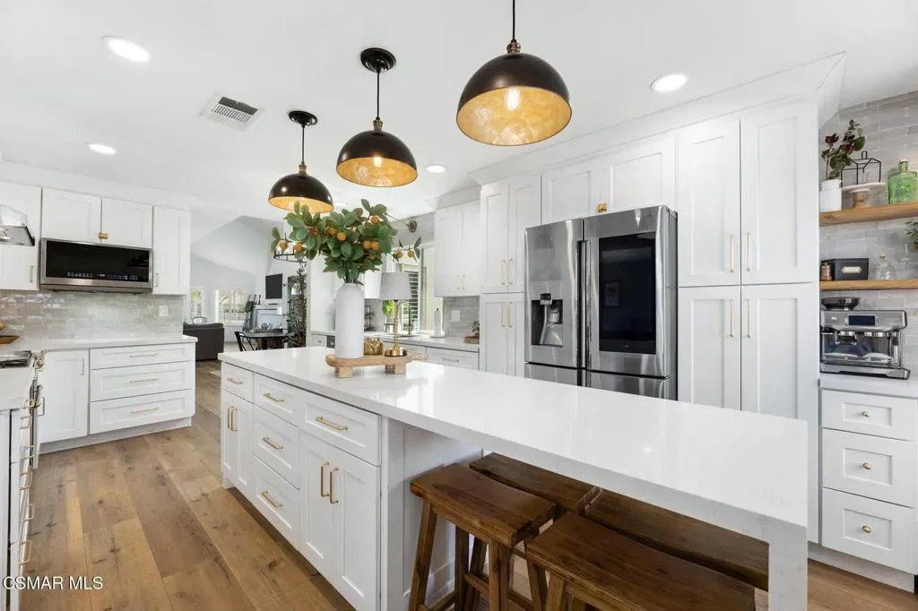 This beautifully remodeled 4-bedroom, 2.5-bath home offers approximately 2,438 square feet of thoughtfully upgraded living space, blending modern luxury with timeless design.The heart of the home is the highly upgraded kitchen, featuring elegant quartz countertops, newer solid wood cabinetry with soft-close drawers, and a stunning handmade Moroccan zellige tile backsplash, each tile is handmade which adds character and artistry. A premium five-burner Italian range anchors the space, making it ideal for both everyday cooking and entertaining. The kitchen also includes a breakfast counter with seating, perfect for casual dining. This home also includes a formal dining area for more traditional gatherings.Luxury plank vinyl flooring flows seamlessly throughout the entire home, complemented by plantation shutters that enhance both style and energy efficiency.Downstairs offers a spacious and functional layout with a welcoming living room with gas fireplace, a cozy family room, and a convenient half bath–ideal for guests. All four bedrooms are located upstairs, Providing privacy and separation from the main living areas.The primary suite features a generous walk-in closet, dual sinks, and a beautifully designed walk-in tile shower.With abundant cabinet space, quality upgrades throughout, and a well-designed floor plan with vaulted ceilings, this home combines comfort, sophistication, and practicality–perfect for modern living.Entertainers rear yard with stacked stone accents and sitting area. Built-in BBQ and sink with relaxing bar counter and covered patio with lighting.Residents enjoy a low HOA of just $45 per month, which includes access to a community park, tennis courts, and basketball courts. The HOA also offers gated RV parking for an additional fee, subject to availability.