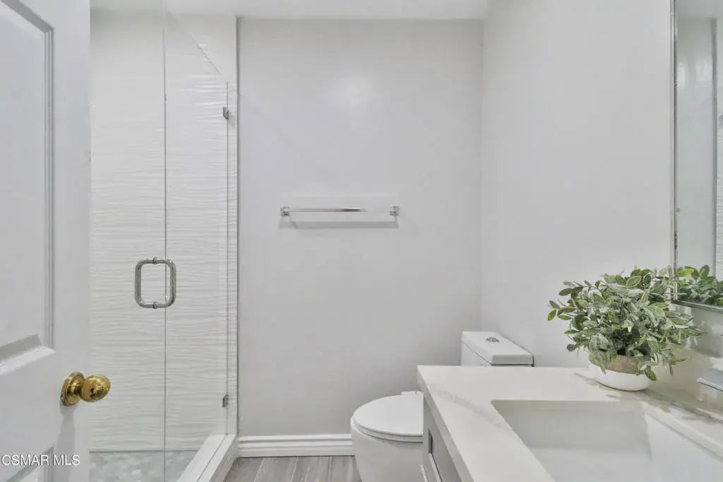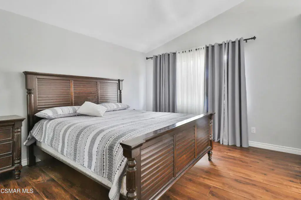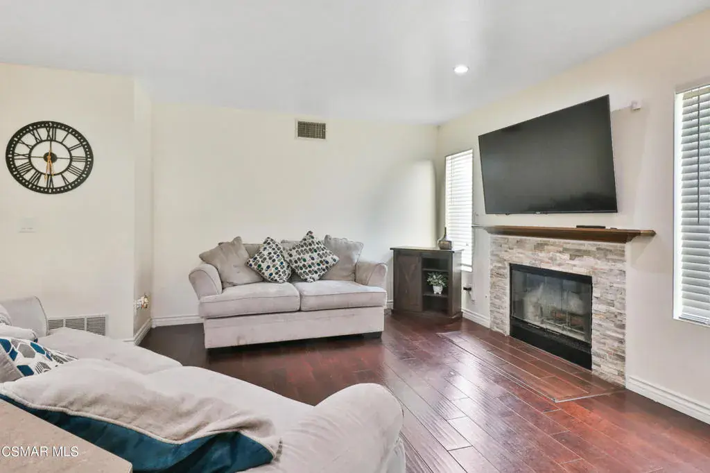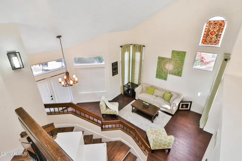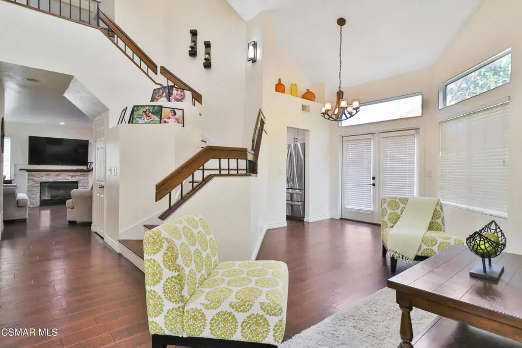 Beautifully updated 4-bedroom in Central Simi! Rich wood-like flooring throughout with high ceilings and plenty of natural light. Updated kitchen boasts quartz countertops, white cabinetry and stainless appliances. Downstairs bedroom and bath, a plus. Additional 3 bedrooms up, including primary with remodeled en suite bath with dual sinks, shower stall and separate tub. Backyard has grassy areas and lots of privacy. Direct access to 2-car garage. This home is impeccably cared for… true pride of ownership!