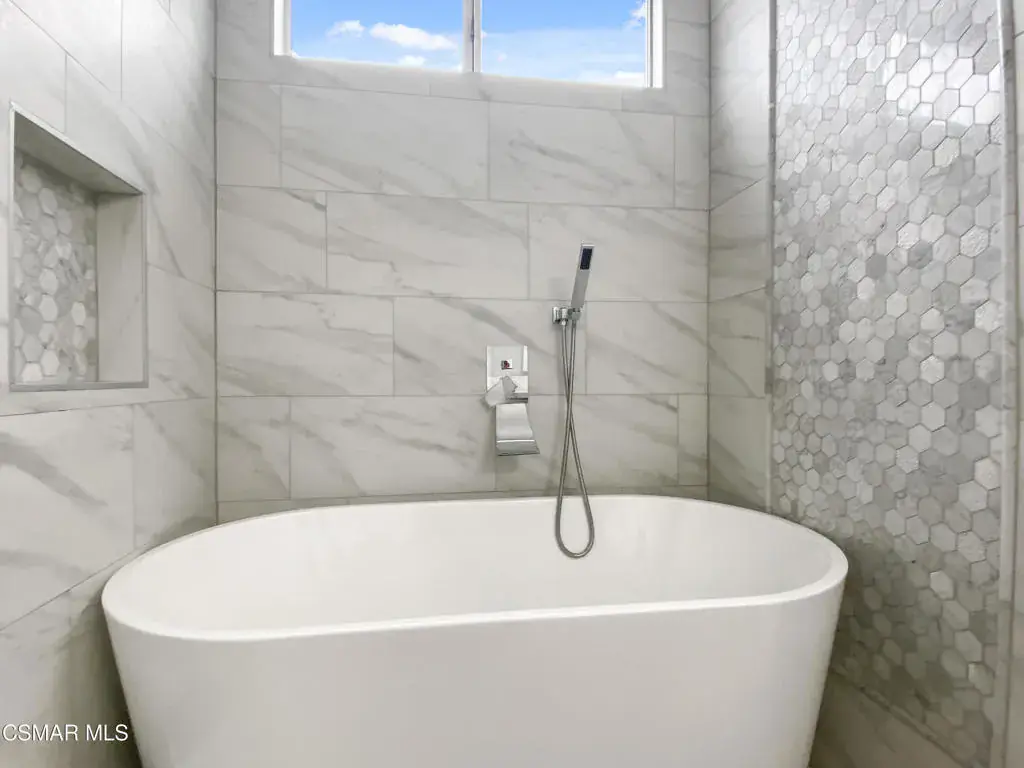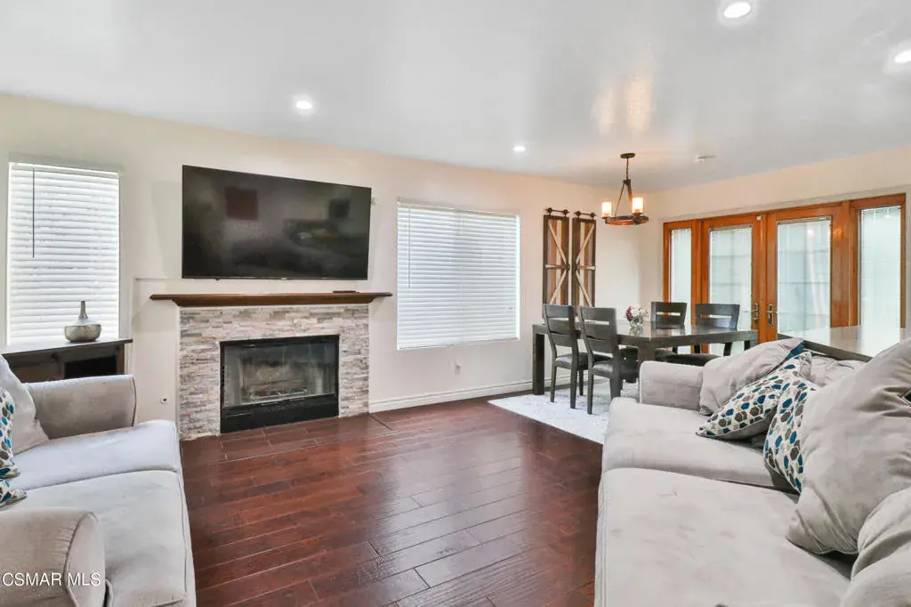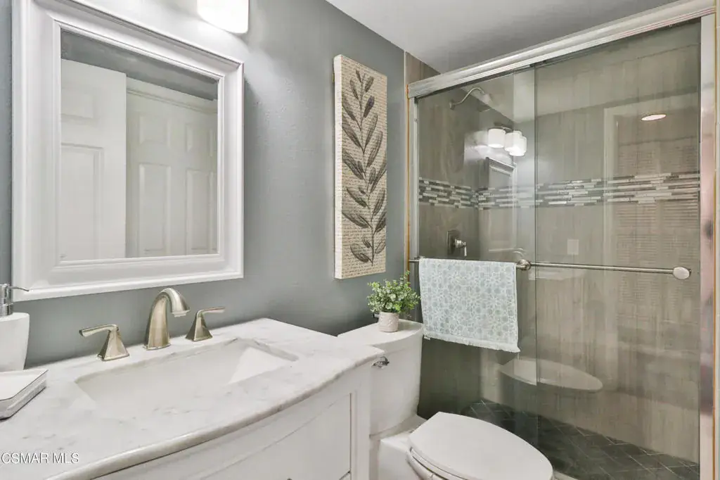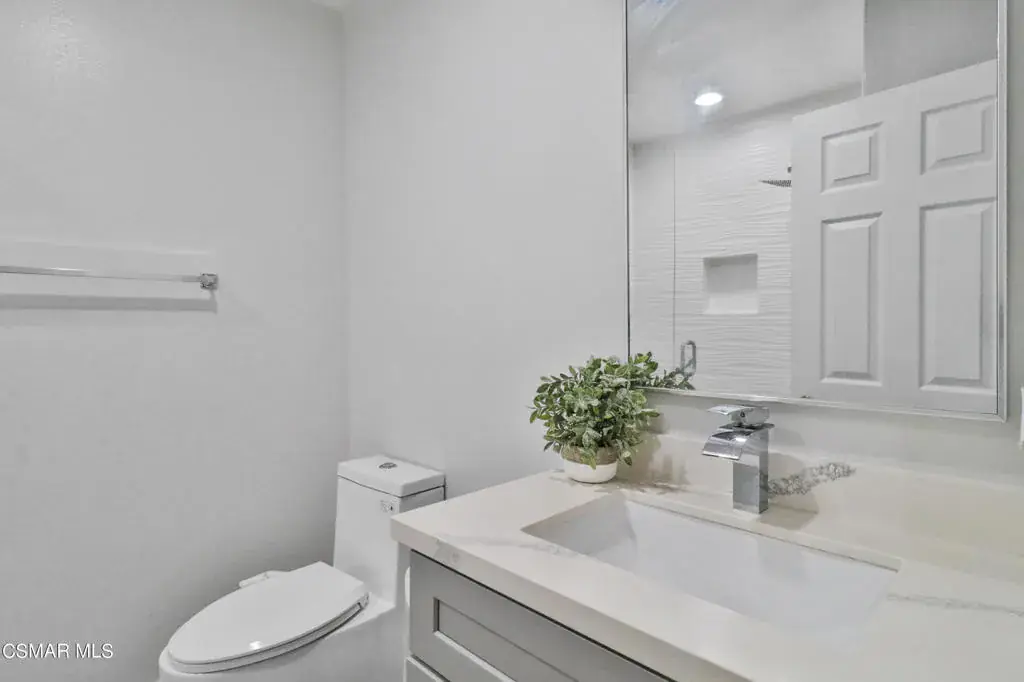 Beautifully updated 4-bedroom in Central Simi! Rich wood-like flooring throughout with high ceilings and plenty of natural light. Updated kitchen boasts quartz countertops, white cabinetry and stainless appliances. Downstairs bedroom and bath, a plus. Additional 3 bedrooms up, including primary with remodeled en suite bath with dual sinks, shower stall and separate tub. Backyard has grassy areas and lots of privacy. Direct access to 2-car garage. This home is impeccably cared for… true pride of ownership!