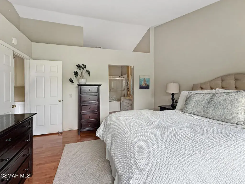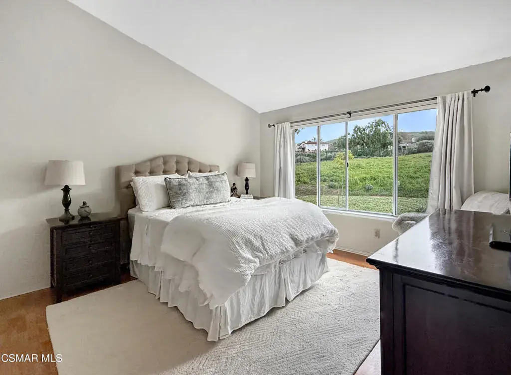 Exquisite Wood Ranch location second floor unit with vaulted ceilings and amazing views! Located behind secure gates, this private community is superbly located adjacent to the Wood Ranch Golf Club, Park, and lake. The community features a community pool and spa. This is an upstairs end unit with windows everywhere bringing in tons of wonderful light. Enjoy your morning cafe on the patio watching the sunrise over beautiful mountains or wine down the day as you look over the beautiful oak trees behind you. The home features an attached two car garage with direct access via an interior stairway. A huge storage loft is conveniently located at the top of the stairs. The kitchen is spacious and features a breakfast area. A formal dining room is perfect for entertaining and also features a wet bar. Relax and unwind in the living room complete with a cozy fireplace. An additional room is perfect for a den or home office. The primary bedroom has vaulted ceilings and its own en-suite bathroom. The bathroom features a tub/shower combo, dual sinks, and walk-in closet. The second bedroom has a wonderful view of the natural landscaping behind the home. You will love living in this home and the location!