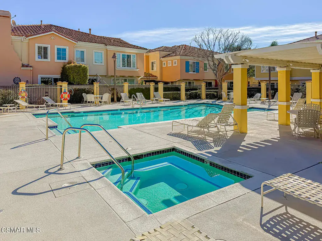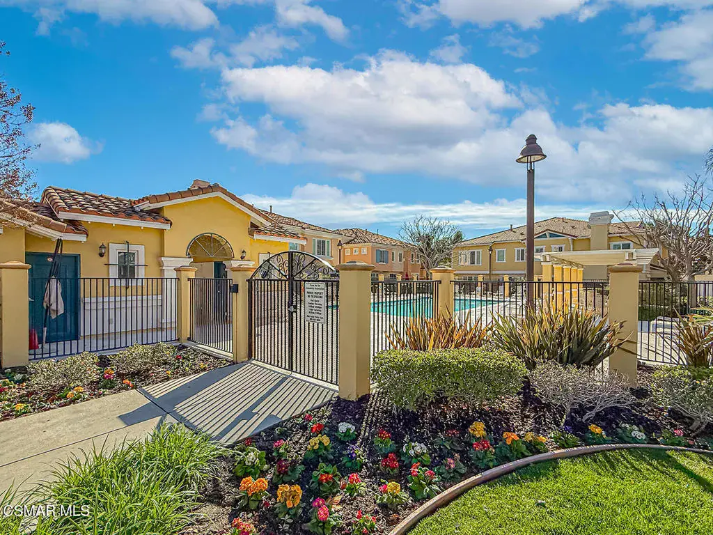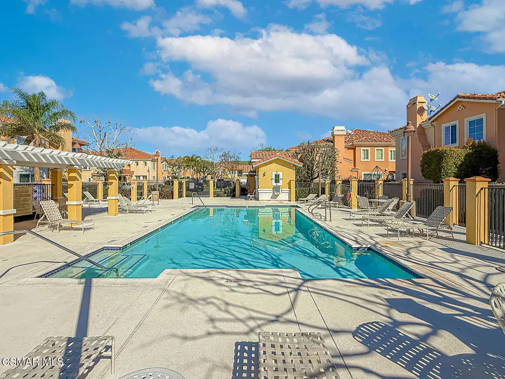 Welcome to this beautifully maintained, highly sought-after townhouse. This light-filled home features an open-concept floor plan where the kitchen seamlessly opens to the dining and living areas, complete with a cozy gas fireplace–perfect for both everyday living and entertaining.The gourmet kitchen boasts granite countertops, maple cabinetry, and generous prep space. The dining area opens through a slider to a private, wrap-around backyard oasis. The primary suite offers a soaking tub, dual sinks, a walk-in closet, and serene views of the swimming pool. All three bedrooms enjoy pool views, a rare and desirable feature. Additional highlights include a 2-car garage with direct access, in-unit laundry area, and excellent interior flow.Located in one of the best spots within the gated community, directly across from the pool and close to the main entrance. Community amenities include a pool and spa, and the home is adjacent to a vibrant shopping center with coffee shops, restaurants, and more.