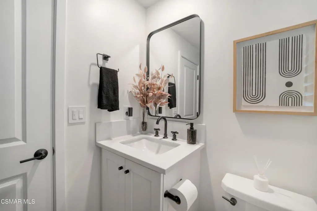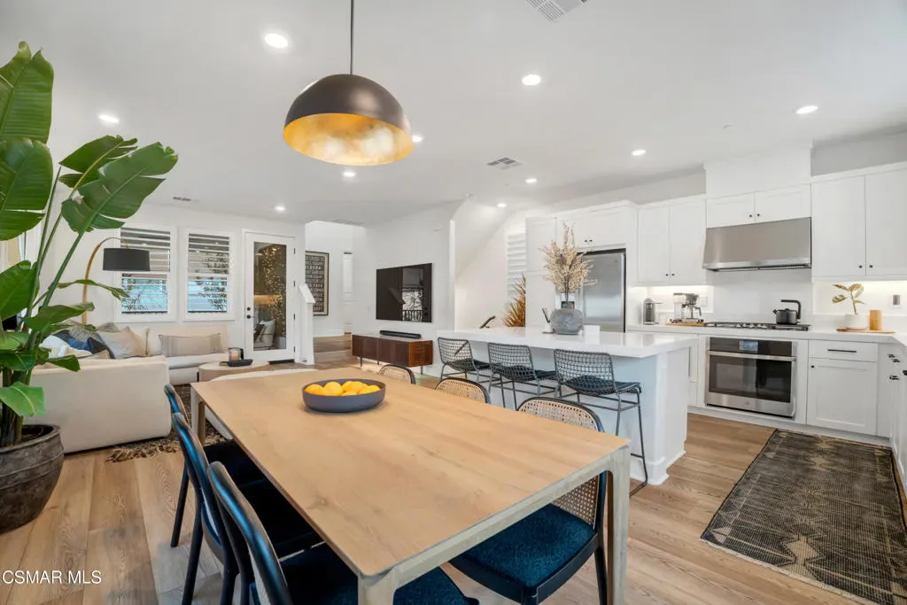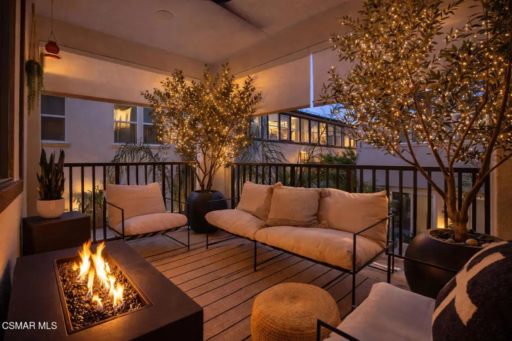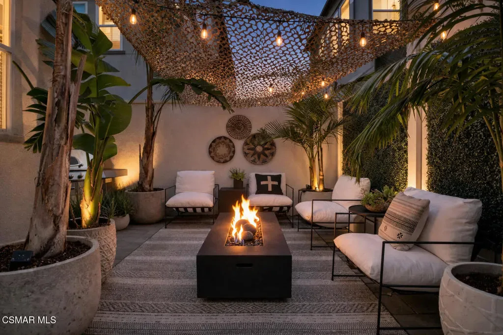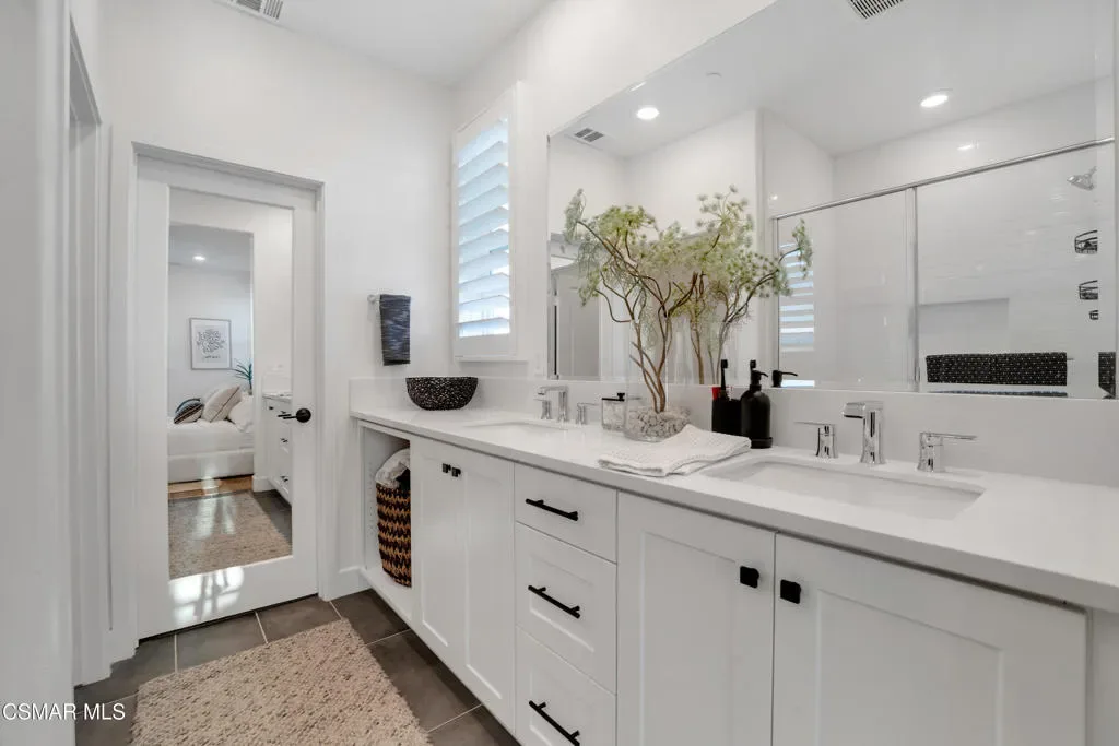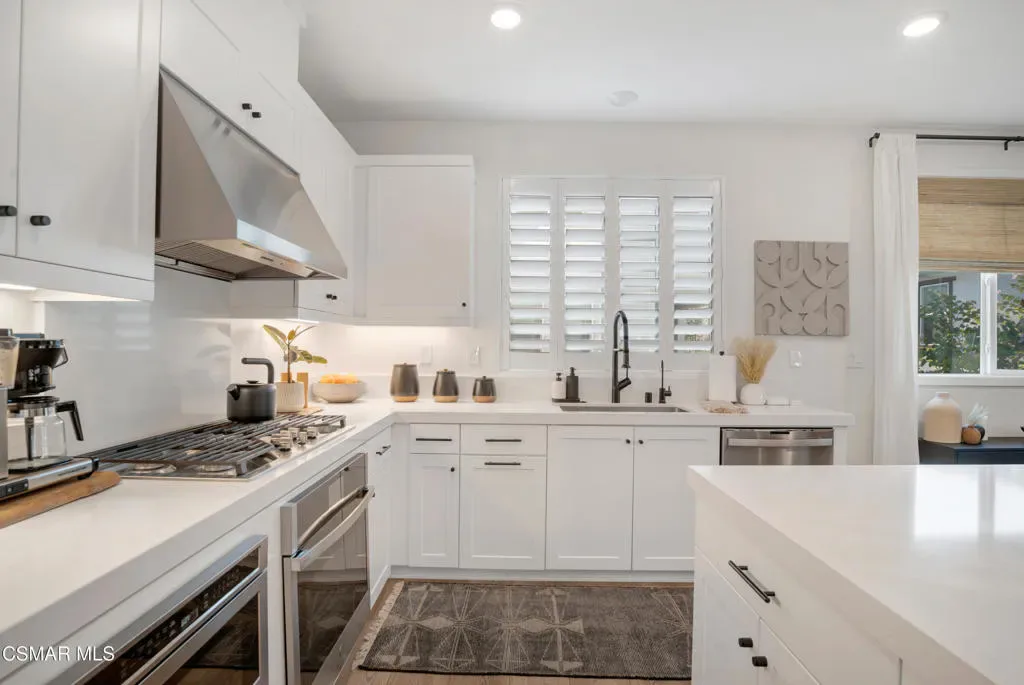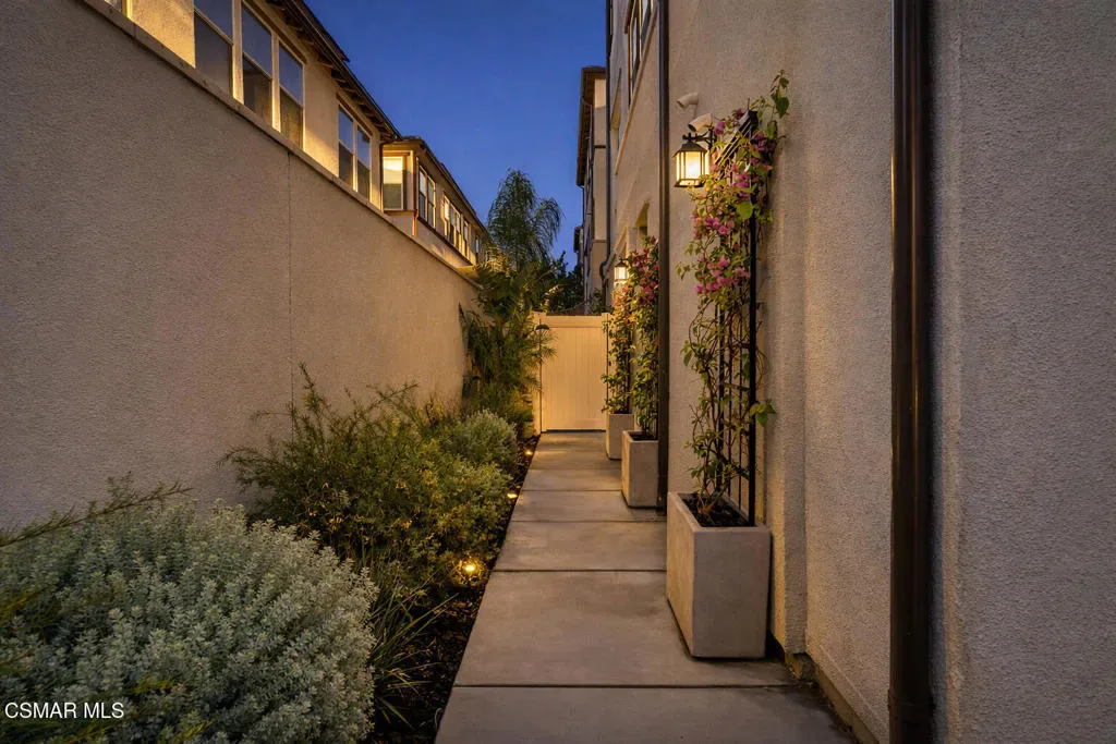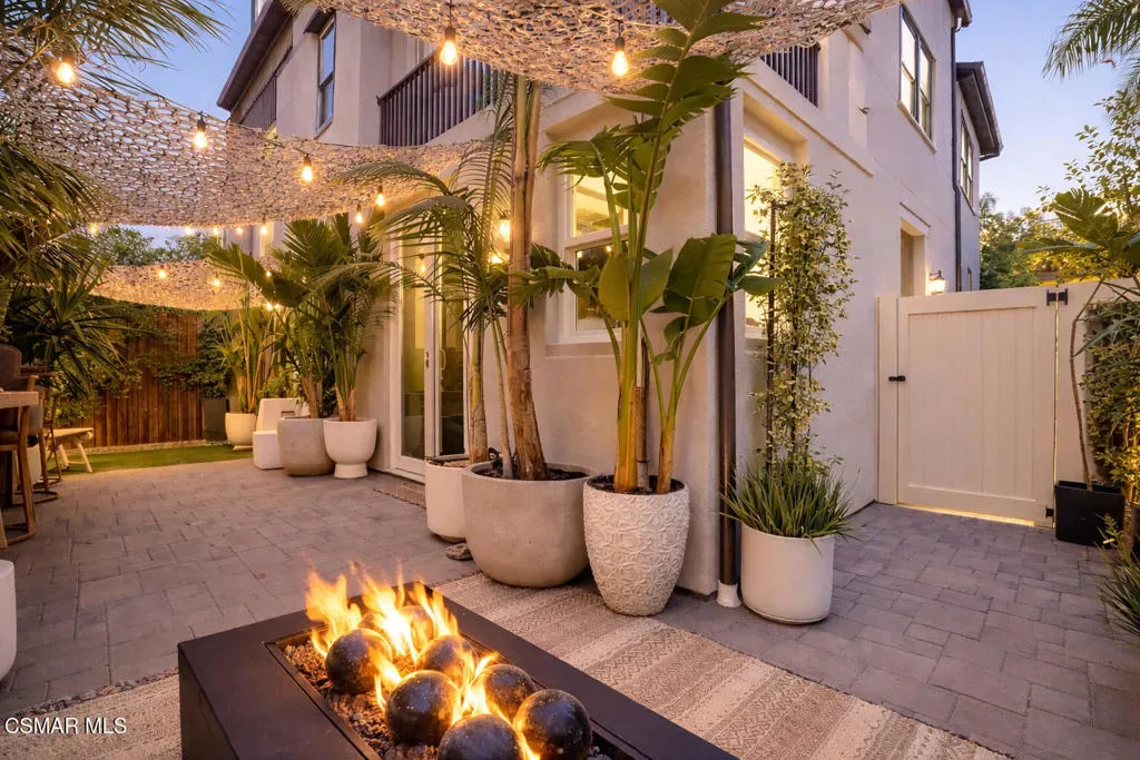 A very special offering in the recently built Sycamore Cove community, located in the heart of Simi Valley. This end-unit 3-bedroom, 4-bathroom home has been thoughtfully upgraded throughout with a strong emphasis on design, functionality, and quality. The entry level features a spacious 2-car garage and a private en-suite bedroom, ideal for guests, a home office, or gym. This space opens seamlessly to a large, private back patio that feels like a true oasis, complete with lush trees and artificial turf and stylish pavers, creating the perfect setting for relaxing or entertaining. Generous side yards provide additional space for a BBQ, storage, or outdoor enhancements. On the second level, you’ll find the upgraded kitchen with a large island, sleek quartz counters, white shaker cabinets and matching stainless steel appliances. The open great room is designed for both everyday living and entertaining. This level also features a stunning balcony with custom shades, offering a comfortable indoor-outdoor experience with added privacy. A convenient powder room completes the second level. On the top floor, you’ll find the primary retreat, featuring a beautifully designed en-suite bathroom with dual vanities, quartz countertops, a large glass shower, and a walk-in closet. The conveniently located laundry closet is situated right off the primary, and an additional en-suite guest bedroom is located down the hall. Additional upgrades include a water softener and reverse osmosis system, plantation shutters, high-end window treatments, luxury vinyl plank flooring throughout, designer tile in all bathrooms, custom plaster accent walls, a tankless water heater, solar panels, and a finished garage. Residents enjoy access to Sycamore Cove’s resort-style amenities, including a pool, fire pit, BBQ area, and playground. All of this is conveniently located near shopping, dining, and everyday essentials.
