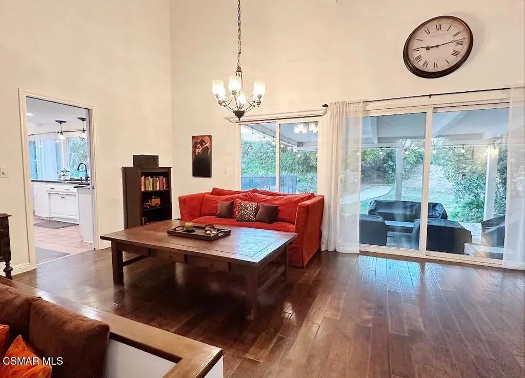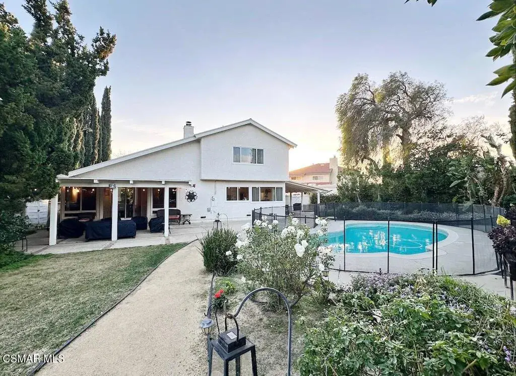 Welcome home to this beautifully updated Simi Valley residence, thoughtfully designed for both comfort and entertaining.Offering five bedrooms and two-and-a-half bathrooms, this home features a desirable downstairs bedroom, ideal for guests, multigenerational living, or a private home office.The interior has been freshly painted throughout and showcases upgraded flooring, newer windows, and recessed lighting in both the living room and kitchen. The newly updated kitchen is the heart of the home, complemented by a built-in bar perfect for gatherings and everyday enjoyment.A standout feature is the double-sided Spanish tile fireplace, creating warmth and ambiance in two separate living spaces and opening to a cozy conversation pit, making this home truly one of a kind.Step outside to a private backyard retreat complete with a gated pool, two attached patio covers, lush grass area, and mature lemon trees, offering both relaxation and functionality for outdoor living.With upgraded bathrooms, timeless character, and thoughtful modern updates throughout, this home is new to the market and ready to impress. Homes like this don’t last
