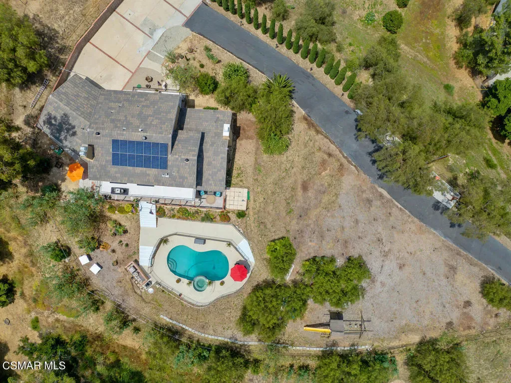 Amazing opportunity on 1.2 Acres, backing open space with unobstructed stunning views! Beautiful gated entry will lead you this this private and tranquil custom 4 bedroom home. The location is breathtaking and has a rural feel, yet is so close to the conveniences of restaurants and shopping. The granite entertainers kitchen is a chef’s dream with high end appliances and custom wood cabinets and is open to the family room with beautiful fireplace. French doors upstairs and downstairs with views everywhere. Cathedral wood beamed ceilings with loads of windows and natural light. Beautiful wood plank flooring in almost entire home. Travertine floors in kitchen, family, dining. The entertaining space is a dream here with so much balcony and patio space and views in every direction. Balconies off all the bedrooms. Hobby room downstairs. Fenced in pool and spa. Huge flat area with SO much parking for all your toys, room for animals, plenty of space for ADU. This exceptional lot is all usable! OWNED SOLAR with battery back-up! This is a special location and property you won’t want to miss.