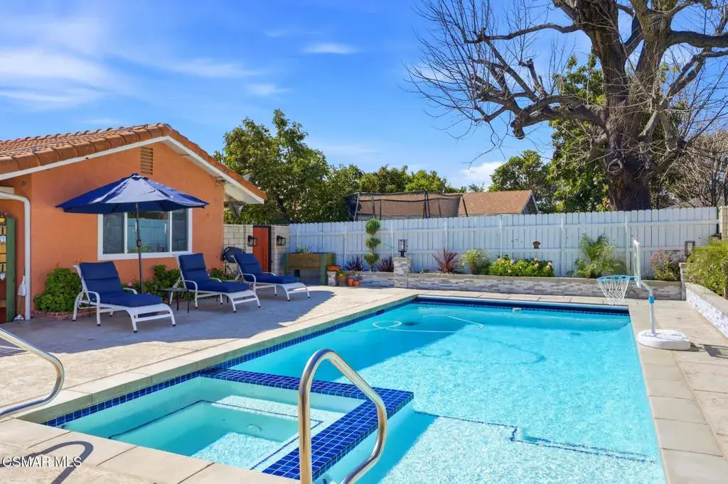 Welcome to 3279 Avenida Simi! This nicely updated Central Simi Valley residence offers 4 bedrooms, 3 full bathrooms, and an expansive 3,067 square feet of comfortable, versatile living space. Thoughtfully designed for today’s lifestyle, the home features two primary suites, each with its own en-suite bathroom. The downstairs primary suite is perfect as a resident’s quarters and for multi-generational living, while the upstairs suite–currently used as a home office–boasts sweeping mountain views and could easily serve as a guest bedroom, playroom, home gym, or media room. At the heart of the home, the updated kitchen showcases LVP flooring, stainless steel appliances, generous cabinetry with modern hardware, and seamless flow into the cozy family room. For larger gatherings, enjoy the formal dining room, or entertain in style at the custom built-in bar complete with granite countertops and barstool seating. An indoor laundry room adds everyday convenience. Step outside to your private backyard retreat–an entertainer’s dream! Enjoy a newer pool and spa with an automatic cover, a large covered outdoor kitchen with multiple grills, and a fire pit perfect for evening gatherings. Additional exterior highlights include an oversized driveway, RV parking with water and electrical hookups plus a newer clean-out, and a dedicated dog run. The property also features a spacious 3-car garage enhanced with custom cabinetry and storage solutions, offering excellent organization for tools, hobbies, and everyday essentials. Recent owner upgrades elevate both comfort and efficiency, including a new AC condenser, an upgraded EV-ready 200/225 Amp electrical panel, an OWNED solar panel system with IQ back-up battery pack, and a Generac whole-house generator for added peace of mind. Conveniently located near top-rated schools, shopping, and dining, this exceptional property blends comfort, function, and resort-style living–an outstanding opportunity to enjoy the best of Southern California living. Schedule your showing today!