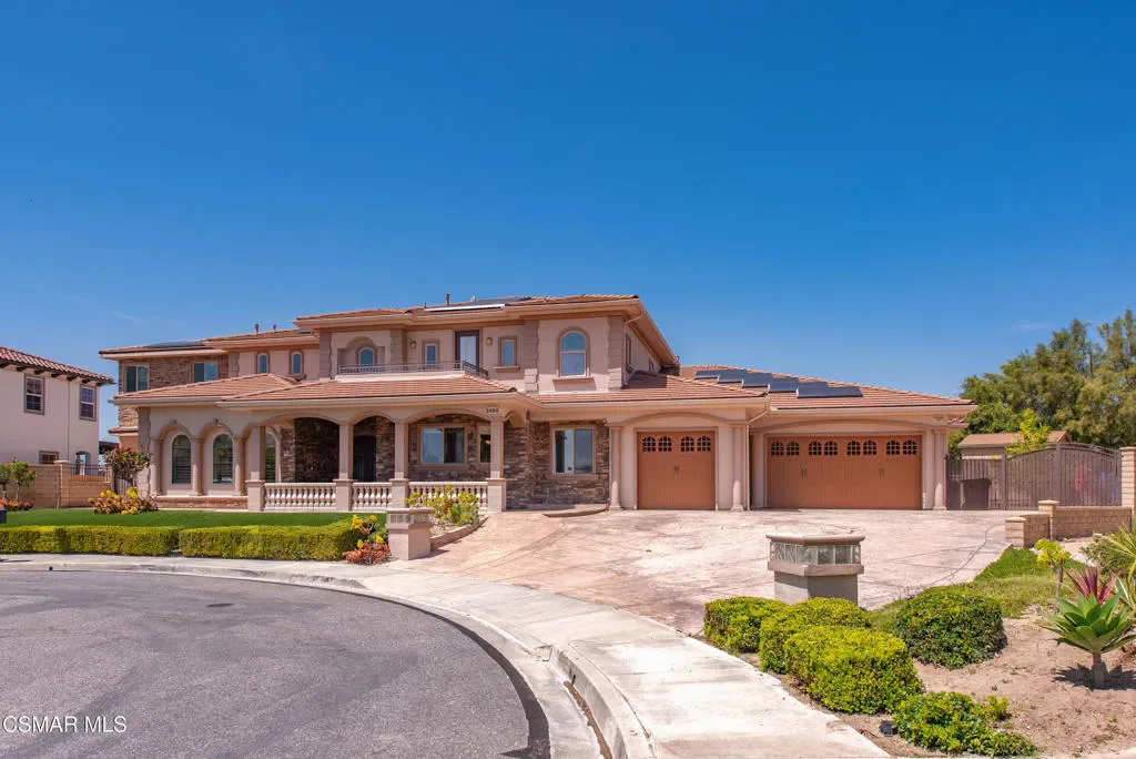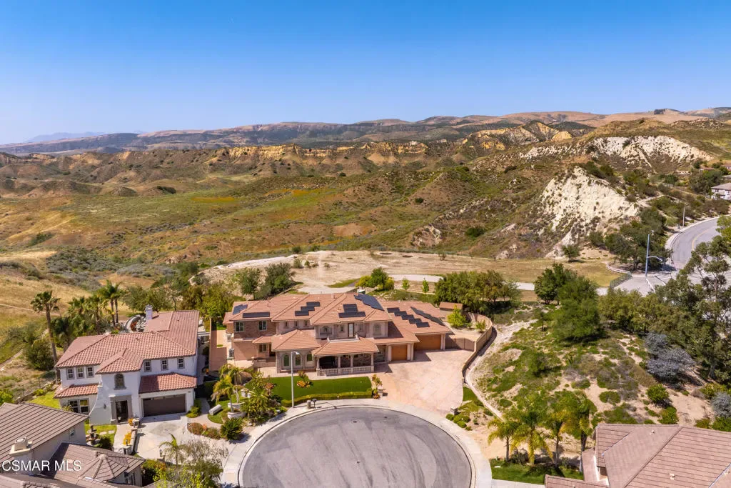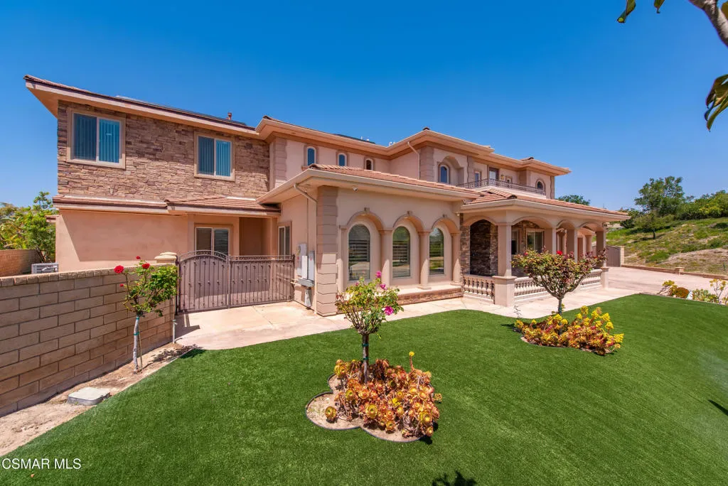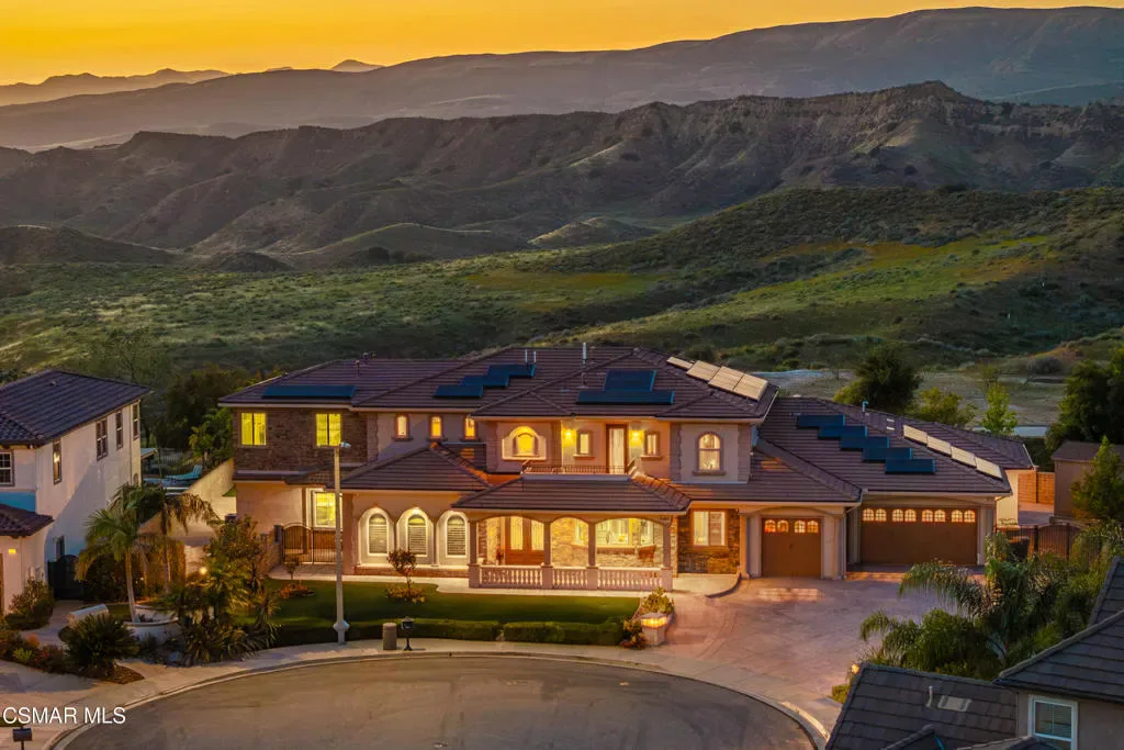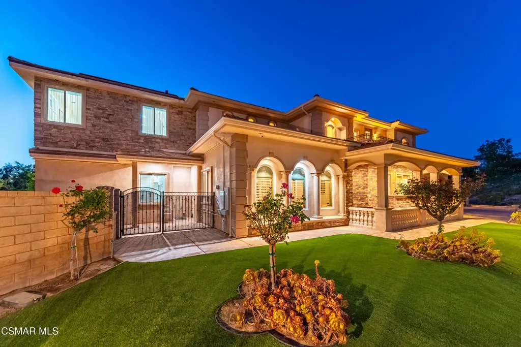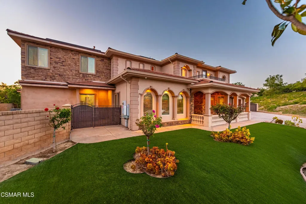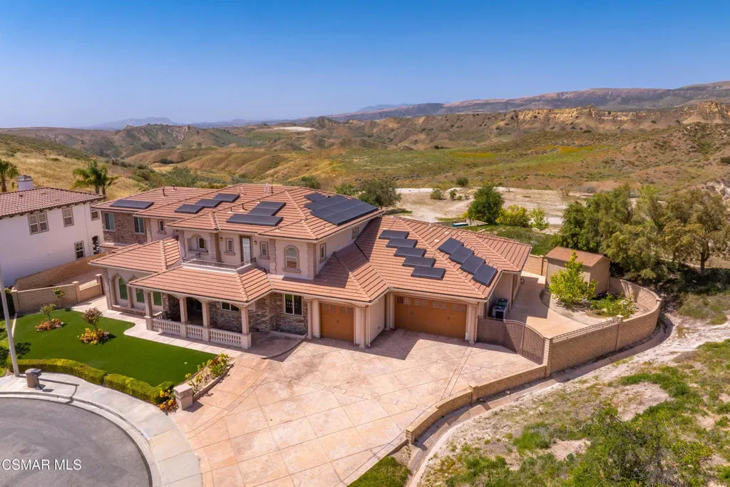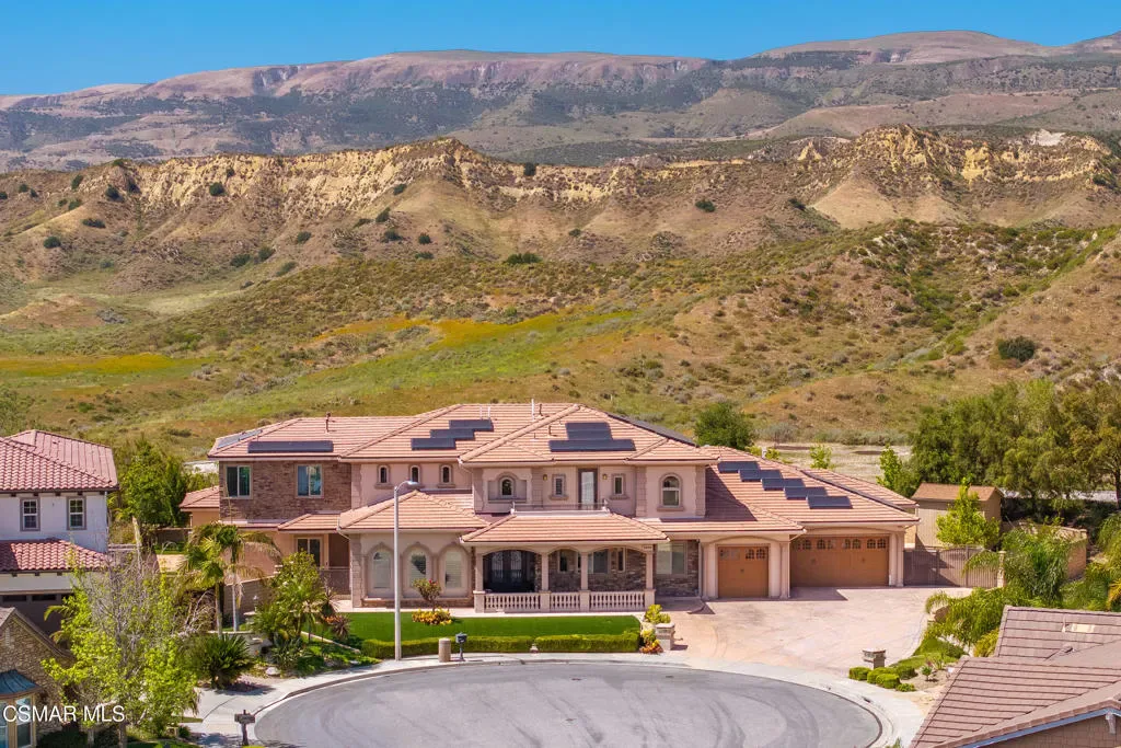 Custom Estate in Big Sky offers nearly 7,000 SF of living space, including 6 bedrooms + office, 5.5 bathrooms, and a private 1+1 ADU. Ideally located at the end of a cul-de-sac with unobstructed mountain views!! A rare multi-generational opportunity, this home features a downstairs primary suite, a guest bedroom with adjacent full bath and private entrance, plus a fully equipped guest house. The main residence spans 5,994 SF, complemented by a 998 SF guest house with 1 Bed and 1 Bath. A grand entry welcomes you with custom double glass doors, porcelain tile, engineered hardwood flooring, and a wood and iron staircase. Architectural details include columns, crown molding, and a built-in entertainment center. Formal living and dining rooms with plantation shutters flow seamlessly into the family room and secondary dining area, all enhanced by scenic views. Let’s not forget about the 330 SF sunroom with wall-to-wall windows and skylights adding additional flexible living space. The chef’s kitchen is designed for both function and entertaining, featuring a large island, granite countertops, stainless steel appliances, double ovens, a swing door, and a walk-in pantry with glass door. The main level includes 2 bedrooms, an office, and 2.5 baths, including the primary suite with backyard views, dual walk-in closets, dual vanities, and a large stone-tiled shower with bench. All bathrooms in the main home are upgraded with granite countertops, wood vanities, and custom tile work. Upstairs offers 4 additional bedrooms, 3 full bathrooms, a loft, and 2 balconies. Highlights include a large bonus room/bedroom with balcony access, two en-suite bedrooms with mountain views (one with balcony), and an additional bedroom with a nearby hall bath. A walkable, drywalled attic with built-in storage and attic fans adds valuable storage space. Built in 2022 The private guest house (ADU) is situated in its own wing and designed for comfort and accessibility, featuring wide entryways, engineered hardwood floors, Milgard windows, a fireplace, full kitchen with quartz countertops and shaker cabinetry, living and dining areas, a full-size laundry, and a primary suite with walk-in closet and spa-like bath. Multiple access points include a private exterior entrance, backyard access, and interior connection to the main home, with potential to add a staircase to the upstairs bonus room. The outdoor space offers a tranquil, private setting with mountain views, built-in BBQ, firepit, artificial turf, drought-tolerant landscaping, a grassy area, lemon, lime, and orange trees on a drip system. Built with quality and durability in mind, features include wide/deep footings, thick slab, steel beams and posts, Milgard windows with wood casings, 8-foot doors, crown molding, and recessed lighting throughout. Additional upgrades include a fully paid 17kW Tesla solar system (2023), 3 tankless water heaters, 3 HVAC systems, security cameras, and exterior lighting. Additional amenities include a 3-car garage, RV access with side shed, and a large driveway. The Big Sky community offers access to parks, hiking and biking trails, a nearby dog park, and convenient proximity to shopping, dining, hospitals, and the 118 and 23 freeways.