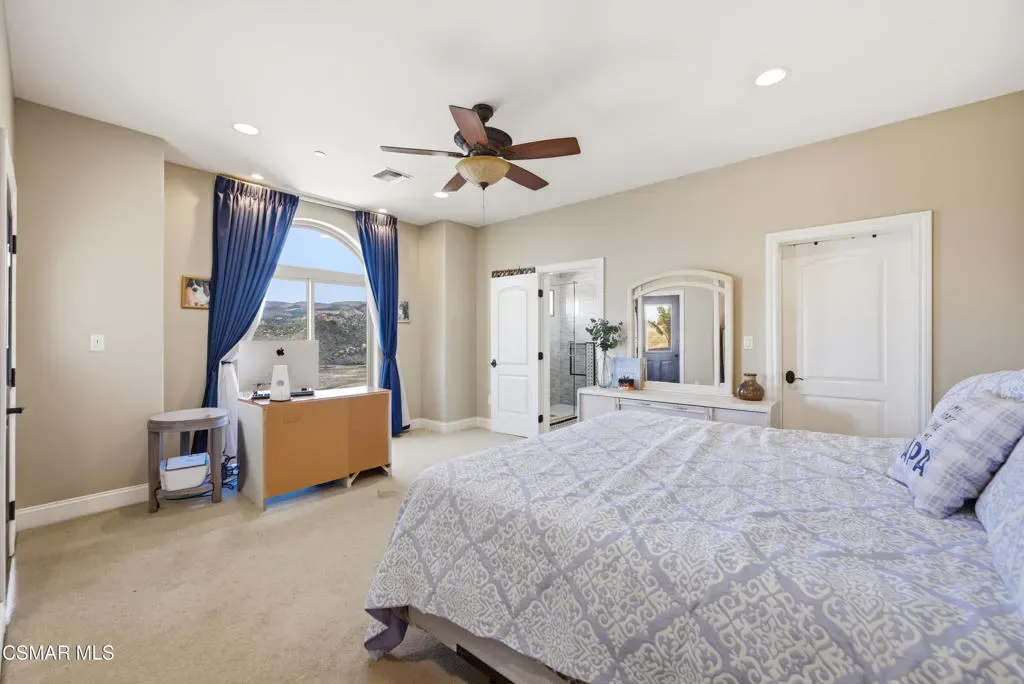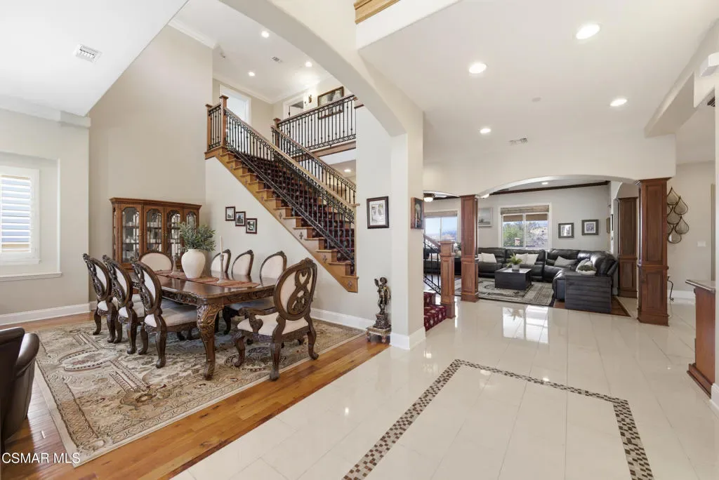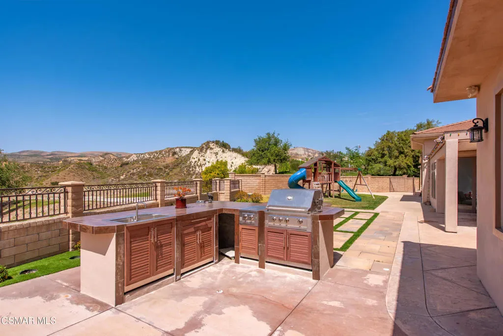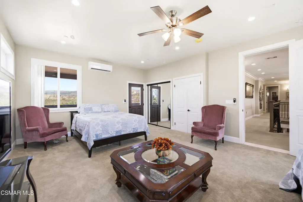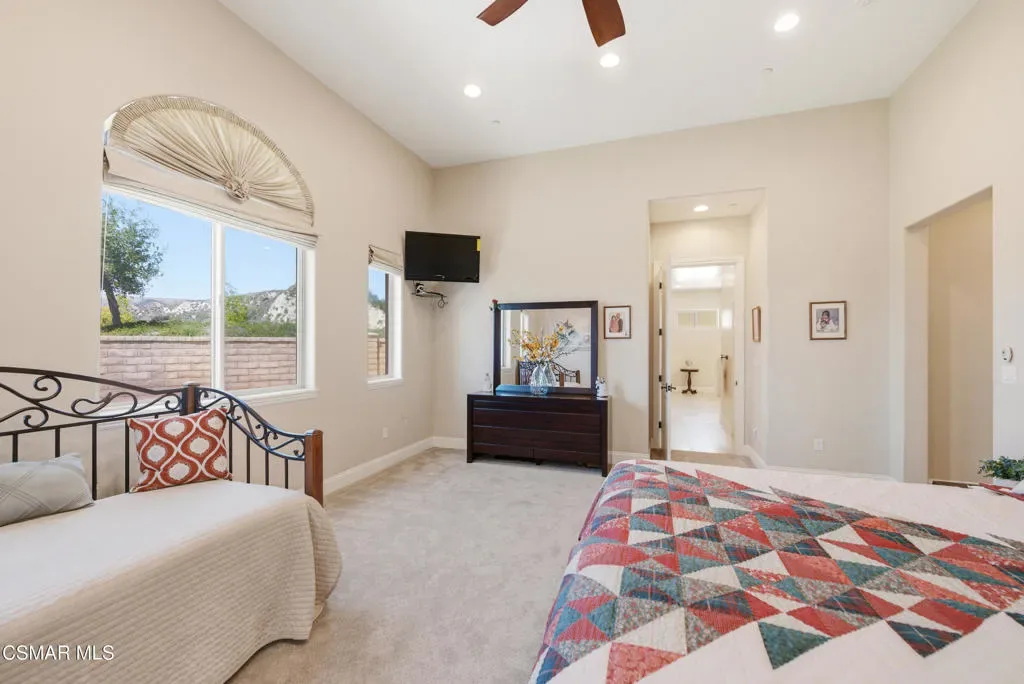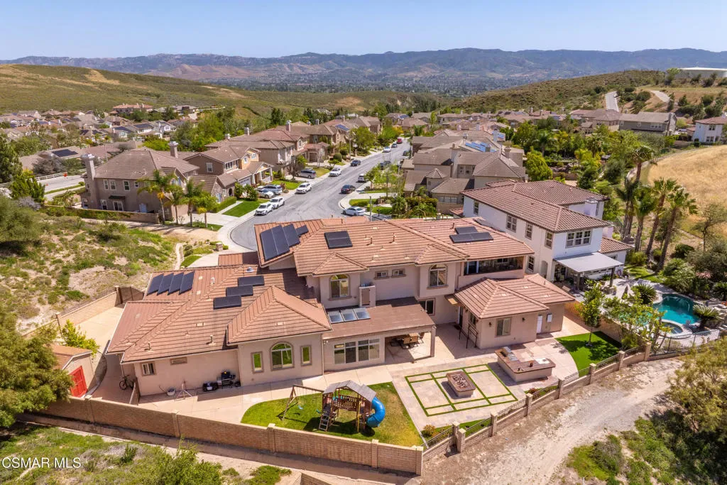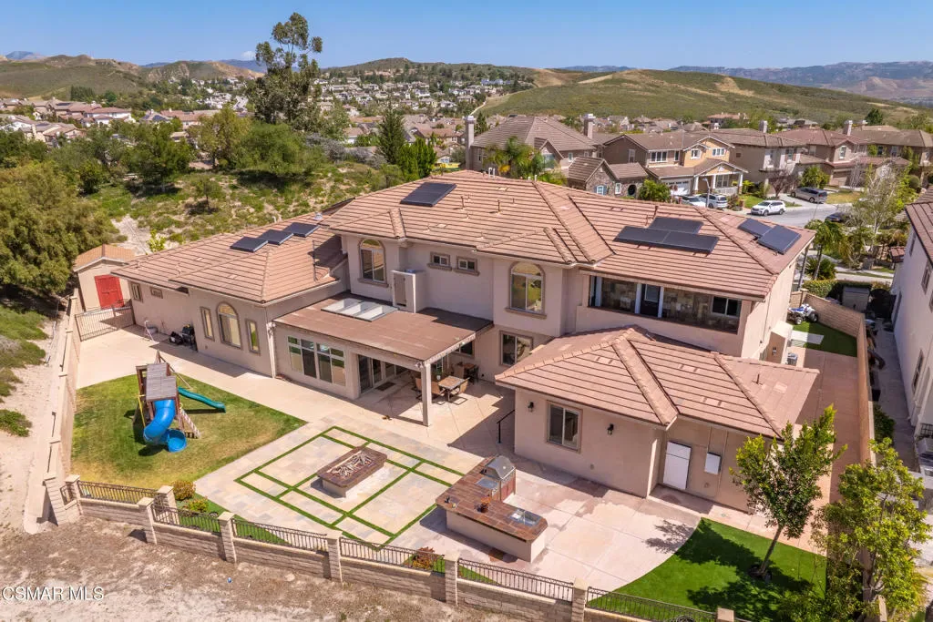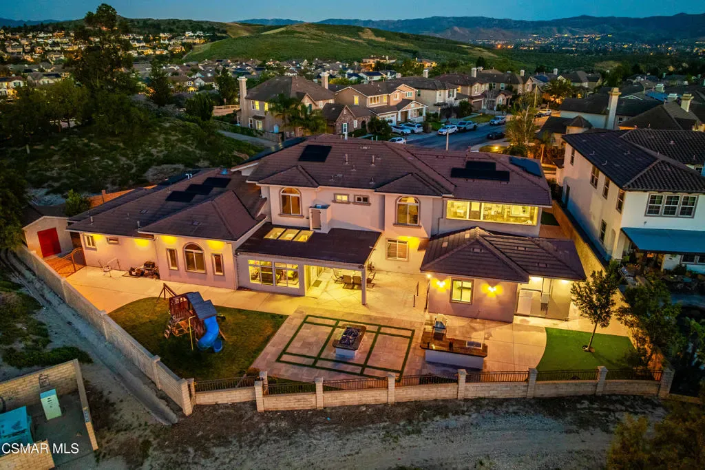Custom Estate in Big Sky offers nearly 7,000 SF of living space, including 6 bedrooms + office, 5.5 bathrooms, and a private 1+1 ADU. Ideally located at the end of a cul-de-sac with unobstructed mountain views!! A rare multi-generational opportunity, this home features a downstairs primary suite, a guest bedroom with adjacent full bath and private entrance, plus a fully equipped guest house. The main residence spans 5,994 SF, complemented by a 998 SF guest house with 1 Bed and 1 Bath. A grand entry welcomes you with custom double glass doors, porcelain tile, engineered hardwood flooring, and a wood and iron staircase. Architectural details include columns, crown molding, and a built-in entertainment center. Formal living and dining rooms with plantation shutters flow seamlessly into the family room and secondary dining area, all enhanced by scenic views. Let’s not forget about the 330 SF sunroom with wall-to-wall windows and skylights adding additional flexible living space. The chef’s kitchen is designed for both function and entertaining, featuring a large island, granite countertops, stainless steel appliances, double ovens, a swing door, and a walk-in pantry with glass door. The main level includes 2 bedrooms, an office, and 2.5 baths, including the primary suite with backyard views, dual walk-in closets, dual vanities, and a large stone-tiled shower with bench. All bathrooms in the main home are upgraded with granite countertops, wood vanities, and custom tile work. Upstairs offers 4 additional bedrooms, 3 full bathrooms, a loft, and 2 balconies. Highlights include a large bonus room/bedroom with balcony access, two en-suite bedrooms with mountain views (one with balcony), and an additional bedroom with a nearby hall bath. A walkable, drywalled attic with built-in storage and attic fans adds valuable storage space. Built in 2022 The private guest house (ADU) is situated in its own wing and designed for comfort and accessibility, featuring wide entryways, engineered hardwood floors, Milgard windows, a fireplace, full kitchen with quartz countertops and shaker cabinetry, living and dining areas, a full-size laundry, and a primary suite with walk-in closet and spa-like bath. Multiple access points include a private exterior entrance, backyard access, and interior connection to the main home, with potential to add a staircase to the upstairs bonus room. The outdoor space offers a tranquil, private setting with mountain views, built-in BBQ, firepit, artificial turf, drought-tolerant landscaping, a grassy area, lemon, lime, and orange trees on a drip system. Built with quality and durability in mind, features include wide/deep footings, thick slab, steel beams and posts, Milgard windows with wood casings, 8-foot doors, crown molding, and recessed lighting throughout. Additional upgrades include a fully paid 17kW Tesla solar system (2023), 3 tankless water heaters, 3 HVAC systems, security cameras, and exterior lighting. Additional amenities include a 3-car garage, RV access with side shed, and a large driveway. The Big Sky community offers access to parks, hiking and biking trails, a nearby dog park, and convenient proximity to shopping, dining, hospitals, and the 118 and 23 freeways.