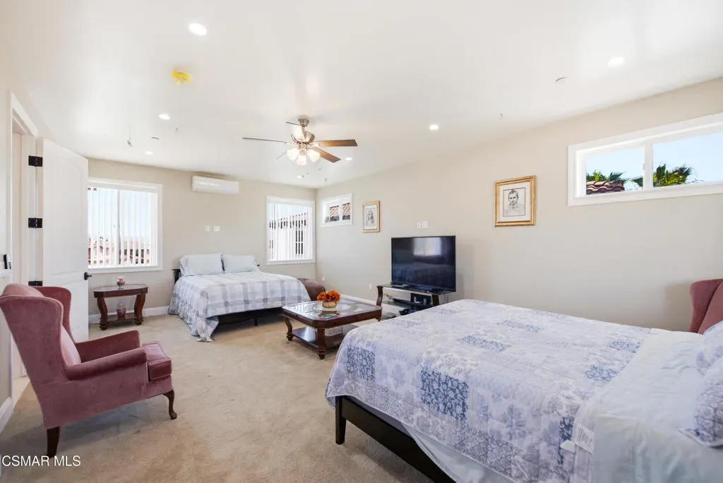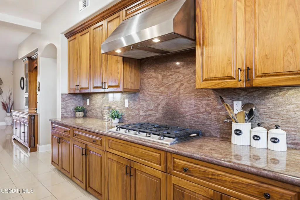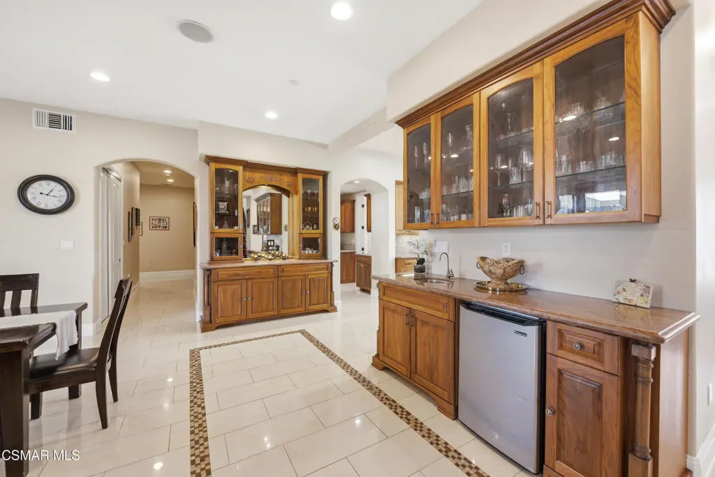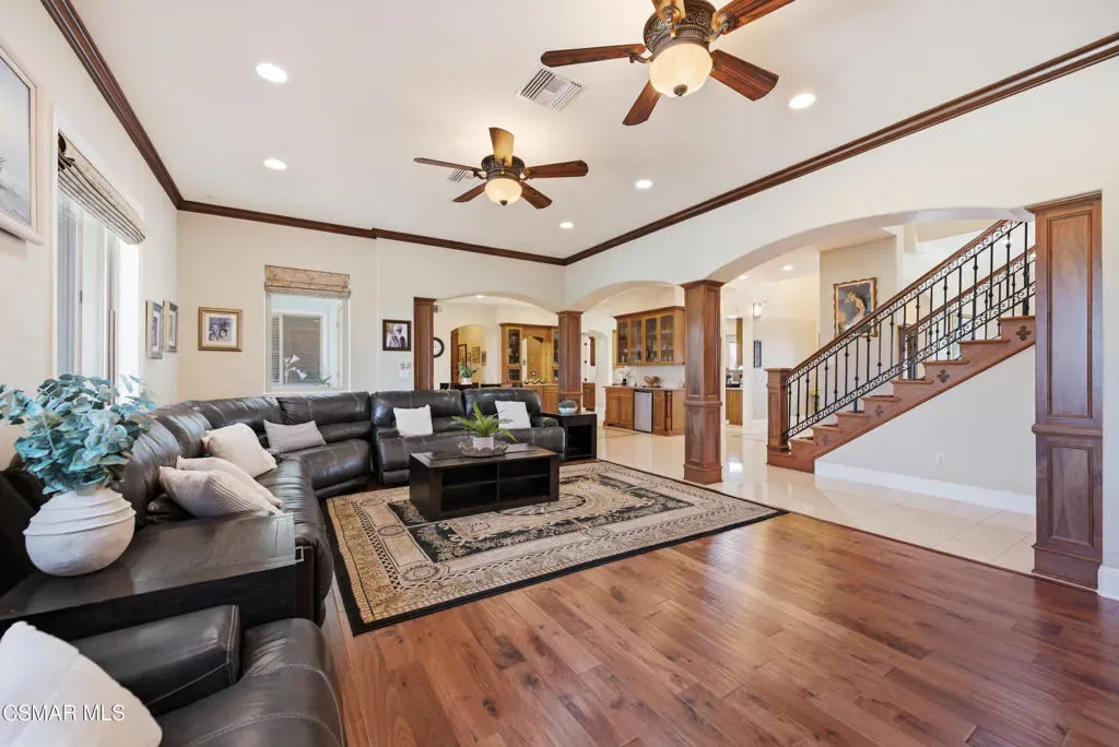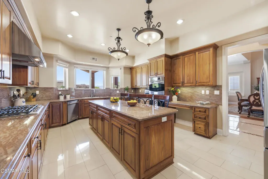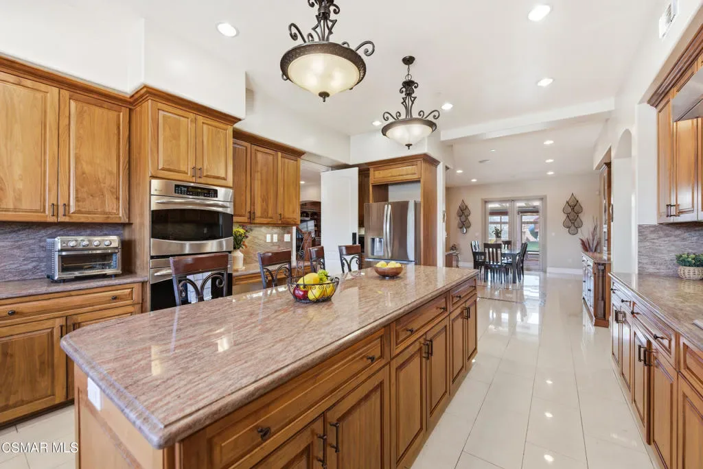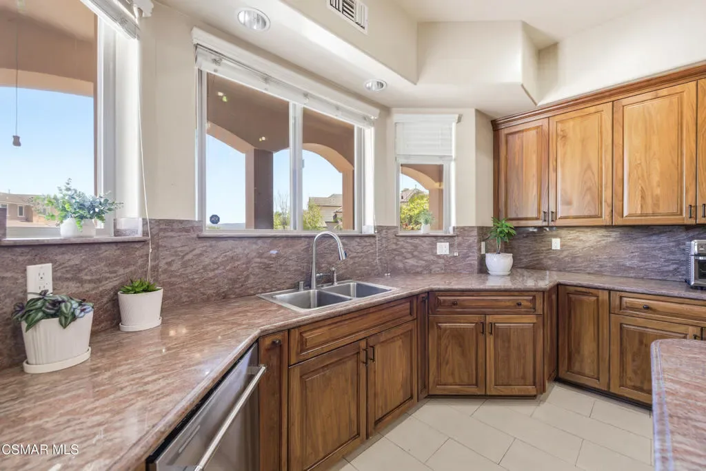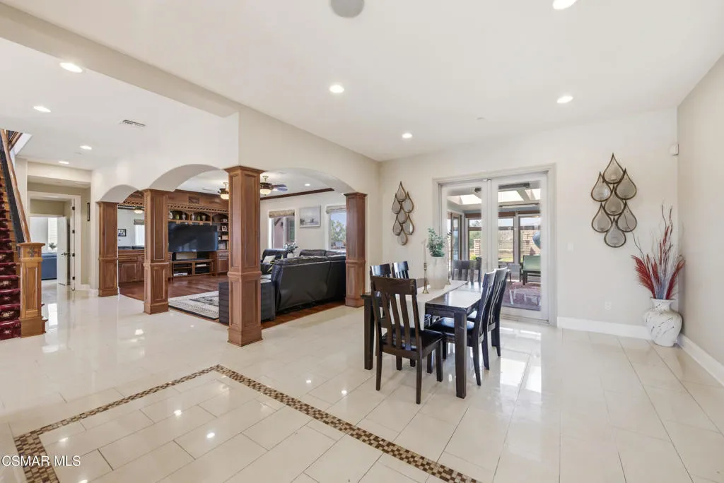 Custom Estate in Big Sky offers nearly 7,000 SF of living space, including 6 bedrooms + office, 5.5 bathrooms, and a private 1+1 ADU. Ideally located at the end of a cul-de-sac with unobstructed mountain views!! A rare multi-generational opportunity, this home features a downstairs primary suite, a guest bedroom with adjacent full bath and private entrance, plus a fully equipped guest house. The main residence spans 5,994 SF, complemented by a 998 SF guest house with 1 Bed and 1 Bath. A grand entry welcomes you with custom double glass doors, porcelain tile, engineered hardwood flooring, and a wood and iron staircase. Architectural details include columns, crown molding, and a built-in entertainment center. Formal living and dining rooms with plantation shutters flow seamlessly into the family room and secondary dining area, all enhanced by scenic views. Let’s not forget about the 330 SF sunroom with wall-to-wall windows and skylights adding additional flexible living space. The chef’s kitchen is designed for both function and entertaining, featuring a large island, granite countertops, stainless steel appliances, double ovens, a swing door, and a walk-in pantry with glass door. The main level includes 2 bedrooms, an office, and 2.5 baths, including the primary suite with backyard views, dual walk-in closets, dual vanities, and a large stone-tiled shower with bench. All bathrooms in the main home are upgraded with granite countertops, wood vanities, and custom tile work. Upstairs offers 4 additional bedrooms, 3 full bathrooms, a loft, and 2 balconies. Highlights include a large bonus room/bedroom with balcony access, two en-suite bedrooms with mountain views (one with balcony), and an additional bedroom with a nearby hall bath. A walkable, drywalled attic with built-in storage and attic fans adds valuable storage space. Built in 2022 The private guest house (ADU) is situated in its own wing and designed for comfort and accessibility, featuring wide entryways, engineered hardwood floors, Milgard windows, a fireplace, full kitchen with quartz countertops and shaker cabinetry, living and dining areas, a full-size laundry, and a primary suite with walk-in closet and spa-like bath. Multiple access points include a private exterior entrance, backyard access, and interior connection to the main home, with potential to add a staircase to the upstairs bonus room. The outdoor space offers a tranquil, private setting with mountain views, built-in BBQ, firepit, artificial turf, drought-tolerant landscaping, a grassy area, lemon, lime, and orange trees on a drip system. Built with quality and durability in mind, features include wide/deep footings, thick slab, steel beams and posts, Milgard windows with wood casings, 8-foot doors, crown molding, and recessed lighting throughout. Additional upgrades include a fully paid 17kW Tesla solar system (2023), 3 tankless water heaters, 3 HVAC systems, security cameras, and exterior lighting. Additional amenities include a 3-car garage, RV access with side shed, and a large driveway. The Big Sky community offers access to parks, hiking and biking trails, a nearby dog park, and convenient proximity to shopping, dining, hospitals, and the 118 and 23 freeways.