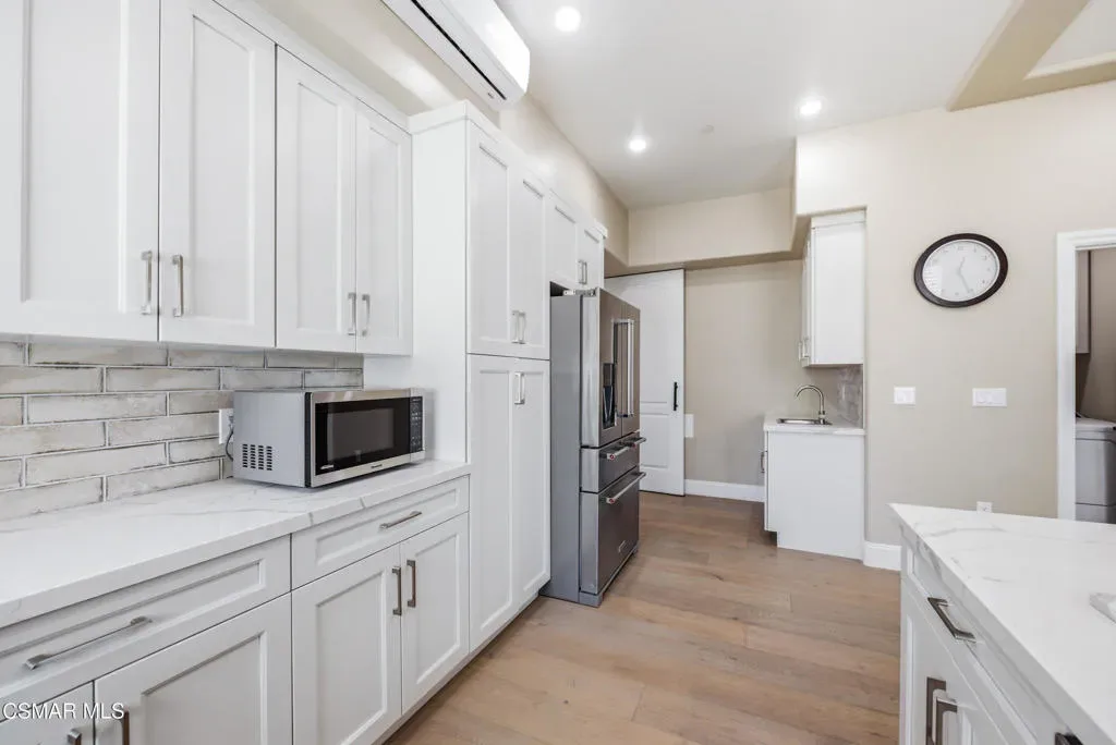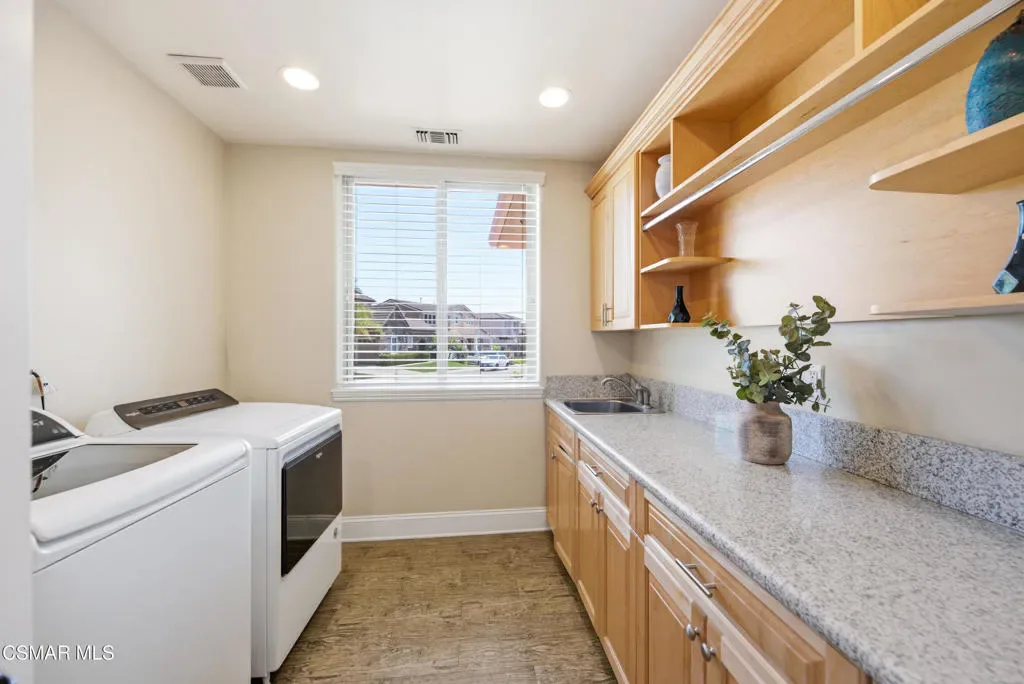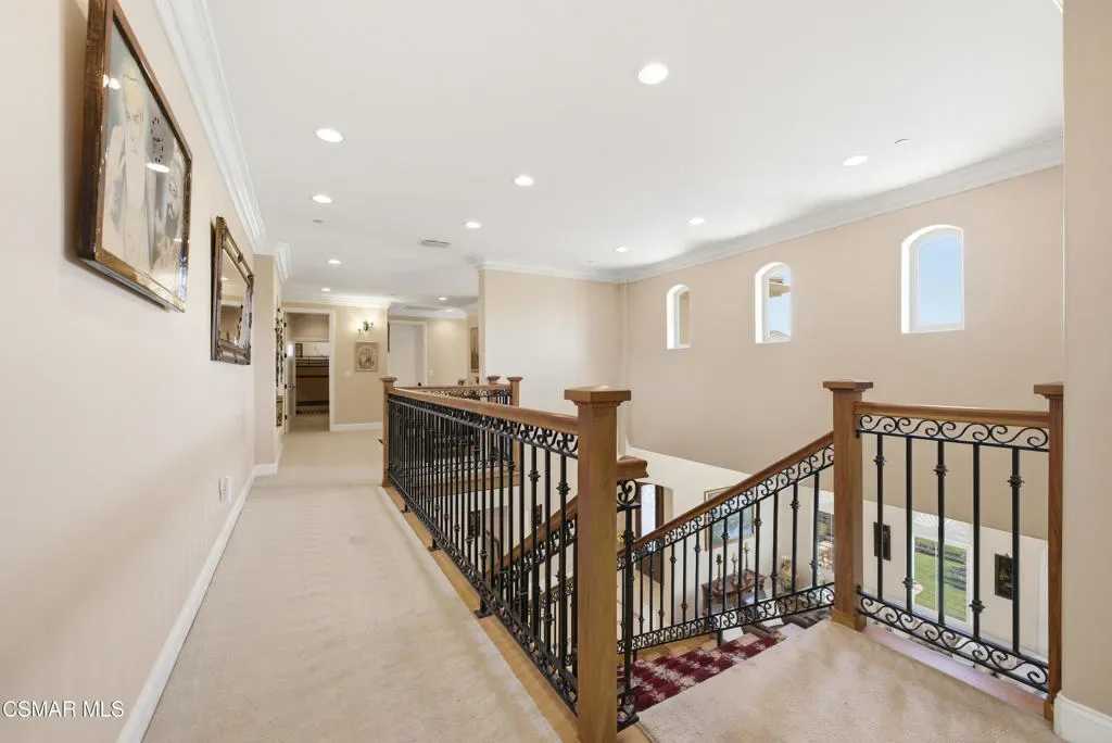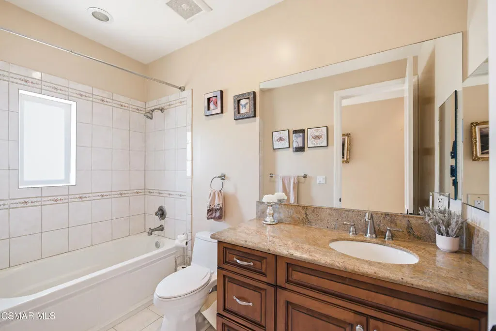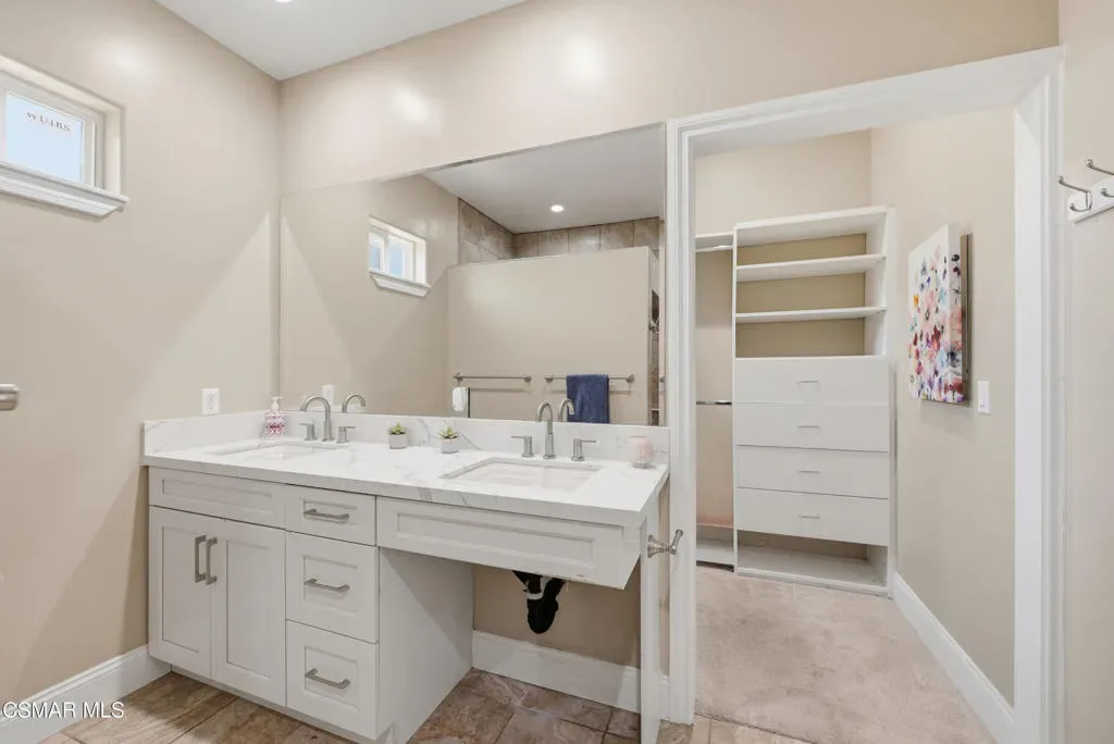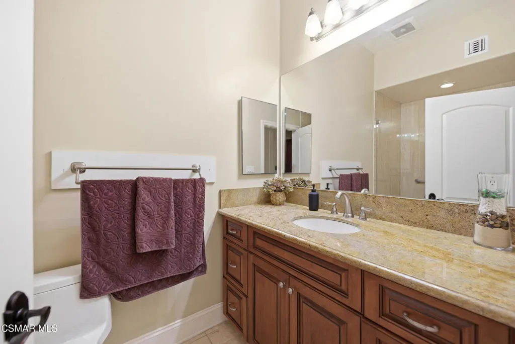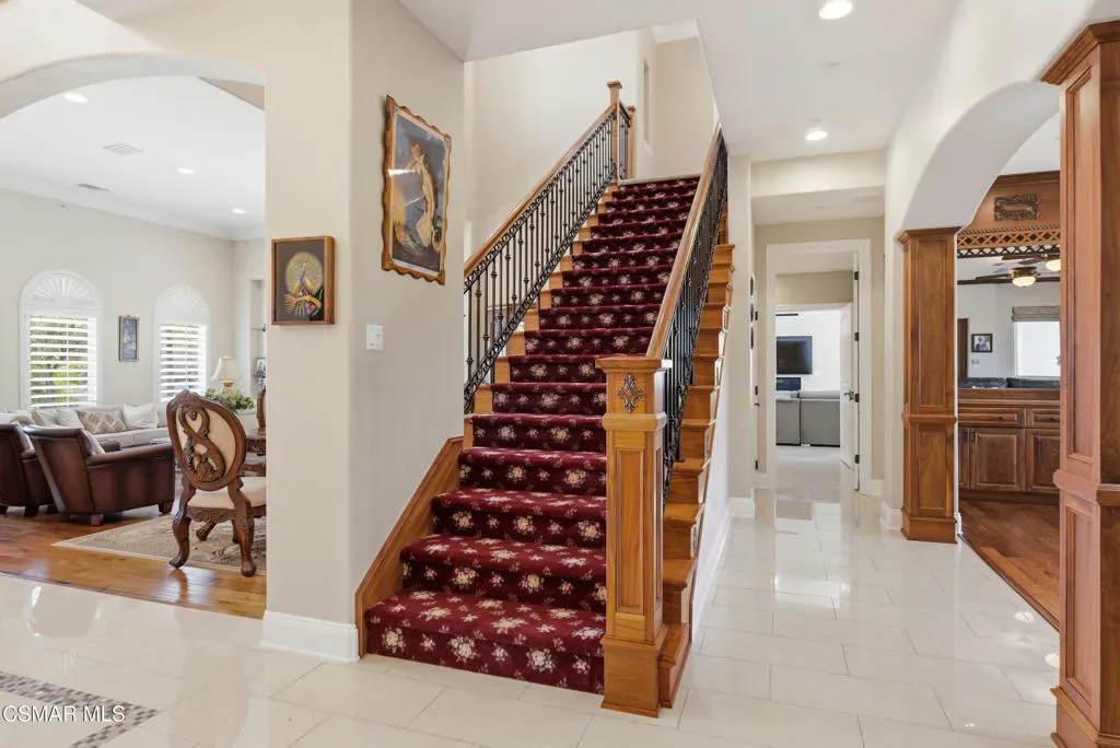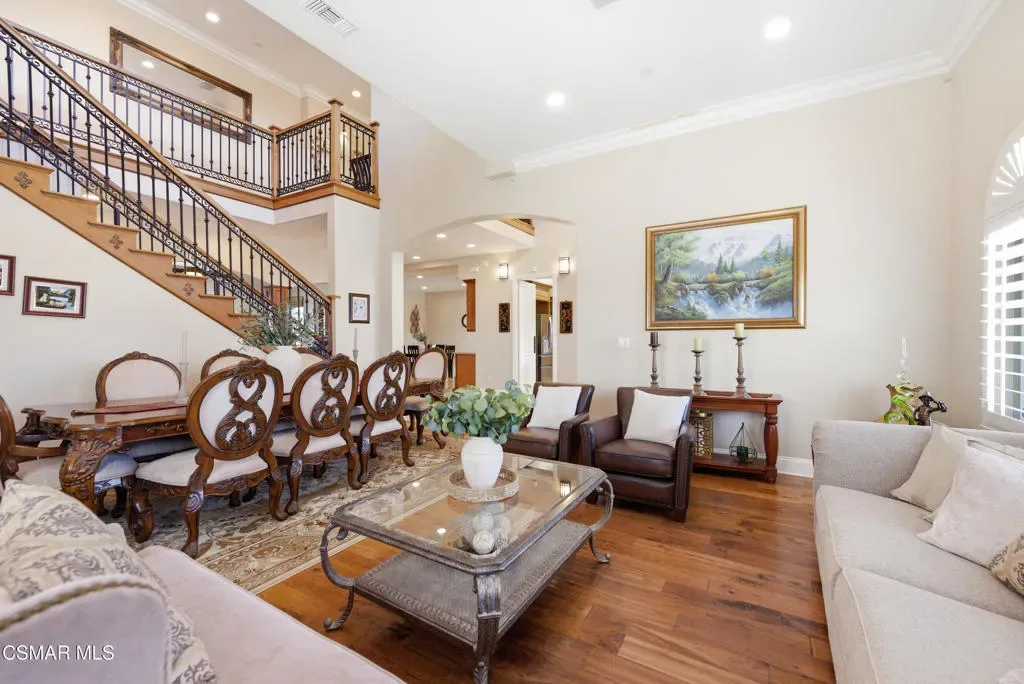 Custom Estate in Big Sky offers nearly 7,000 SF of living space, including 6 bedrooms + office, 5.5 bathrooms, and a private 1+1 ADU. Ideally located at the end of a cul-de-sac with unobstructed mountain views!! A rare multi-generational opportunity, this home features a downstairs primary suite, a guest bedroom with adjacent full bath and private entrance, plus a fully equipped guest house. The main residence spans 5,994 SF, complemented by a 998 SF guest house with 1 Bed and 1 Bath. A grand entry welcomes you with custom double glass doors, porcelain tile, engineered hardwood flooring, and a wood and iron staircase. Architectural details include columns, crown molding, and a built-in entertainment center. Formal living and dining rooms with plantation shutters flow seamlessly into the family room and secondary dining area, all enhanced by scenic views. Let’s not forget about the 330 SF sunroom with wall-to-wall windows and skylights adding additional flexible living space. The chef’s kitchen is designed for both function and entertaining, featuring a large island, granite countertops, stainless steel appliances, double ovens, a swing door, and a walk-in pantry with glass door. The main level includes 2 bedrooms, an office, and 2.5 baths, including the primary suite with backyard views, dual walk-in closets, dual vanities, and a large stone-tiled shower with bench. All bathrooms in the main home are upgraded with granite countertops, wood vanities, and custom tile work. Upstairs offers 4 additional bedrooms, 3 full bathrooms, a loft, and 2 balconies. Highlights include a large bonus room/bedroom with balcony access, two en-suite bedrooms with mountain views (one with balcony), and an additional bedroom with a nearby hall bath. A walkable, drywalled attic with built-in storage and attic fans adds valuable storage space. Built in 2022 The private guest house (ADU) is situated in its own wing and designed for comfort and accessibility, featuring wide entryways, engineered hardwood floors, Milgard windows, a fireplace, full kitchen with quartz countertops and shaker cabinetry, living and dining areas, a full-size laundry, and a primary suite with walk-in closet and spa-like bath. Multiple access points include a private exterior entrance, backyard access, and interior connection to the main home, with potential to add a staircase to the upstairs bonus room. The outdoor space offers a tranquil, private setting with mountain views, built-in BBQ, firepit, artificial turf, drought-tolerant landscaping, a grassy area, lemon, lime, and orange trees on a drip system. Built with quality and durability in mind, features include wide/deep footings, thick slab, steel beams and posts, Milgard windows with wood casings, 8-foot doors, crown molding, and recessed lighting throughout. Additional upgrades include a fully paid 17kW Tesla solar system (2023), 3 tankless water heaters, 3 HVAC systems, security cameras, and exterior lighting. Additional amenities include a 3-car garage, RV access with side shed, and a large driveway. The Big Sky community offers access to parks, hiking and biking trails, a nearby dog park, and convenient proximity to shopping, dining, hospitals, and the 118 and 23 freeways.