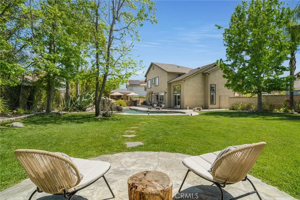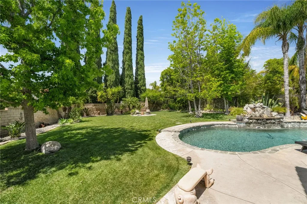 Welcome to this gorgeous turnkey 5-bedroom, 3-bath home nestled in beautiful Simi Valley, perfectly situated at the end of a quiet cul-de-sac on a sprawling 11,761 sq. ft. lot—one of the largest in the community with a 3-car garage, no HOA, and desirable RV access. Step into your own private resort-style oasis featuring a breathtaking beach-entry PebbleTec pool with waterfall, an outdoor barbecue and entertaining area, and a stunning outdoor living space designed for year-round enjoyment. High-end dual-pane Andersen sliding doors create a seamless indoor-outdoor connection, perfectly complementing the indoor/outdoor wired surround sound system and making this home ideal for unforgettable gatherings. Inside, the home offers an amazing layout that flows seamlessly from room to room. The beautiful living room welcomes you with soaring high ceilings and abundant natural light. The remodeled kitchen showcases modern finishes and opens effortlessly into the main living areas, complemented by recessed lighting and rich engineered hardwood flooring throughout. This spacious home features five generously sized bedrooms, including a highly sought-after first-floor bedroom and full bath—perfect for guests or multigenerational living. Immaculately maintained and move-in ready, every detail reflects pride of ownership and thoughtful design, enhanced by a warm southwest-inspired style. Conveniently located near local shopping, dining, and easy access to the 118 freeway, this exceptional property offers the perfect blend of comfort, functionality, and resort-style living. This home truly has it all. Call today for a showing!