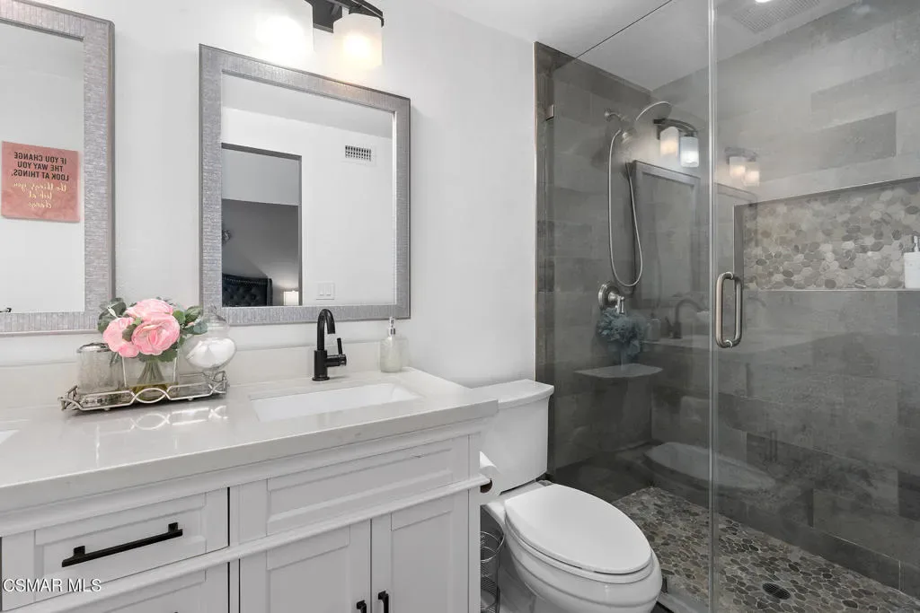 Welcome to 3910 Downey Court, an exceptional turnkey two-story home in the heart of central Simi Valley that truly checks all the boxes. Tucked away at the end of a quiet cul-de-sac, this charming residence offers 3 bedrooms, 3 bathrooms, and approximately 2,035 square feet of comfortable, well-designed living space.Step inside to a bright, semi-open floor plan filled with natural light. The spacious living room features soaring ceilings and a cozy fireplace, creating the perfect setting for both relaxing evenings and entertaining guests. The beautifully remodeled kitchen is a standout, showcasing sleek quartz countertops, stainless steel appliances, and stylish pendant lighting. It flows effortlessly into the breakfast bar and family room, making it ideal for everyday living and gatherings. An updated downstairs bathroom adds extra convenience.Upstairs, you will find three well-appointed bedrooms along with a versatile loft sitting area that can be used as a second living space, office, or media area. The spacious primary suite features a remodeled bathroom, a large walk-in closet, and a private balcony–perfect for enjoying peaceful neighborhood views. The hallway bathroom has also been tastefully updated with granite countertops.The backyard is designed for both relaxation and privacy, featuring a covered patio and a heated above-ground spa, ideal for unwinding or entertaining outdoors. Additional highlights include a two-car garage, gated paved RV access, dual-pane windows, recessed lighting, and durable vinyl wood flooring throughout.Conveniently located near shopping, dining, entertainment, and top-rated schools with easy freeway access, this home offers the perfect blend of comfort, style, and convenience in one of Simi Valley’s most desirable neighborhoods.If you have been waiting for a move-in ready home with upgrades, space, and a prime cul-de-sac location, this is the one. Schedule your private showing today before it is gone.
