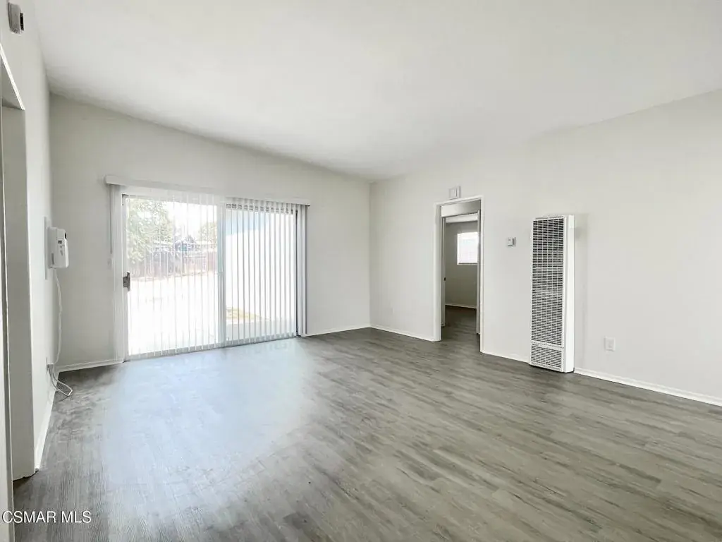 60’s charm! This clean, painted, move-in ready 3-bedroom home offers a large living room, spacious eat-in kitchen, and full bath with walk-in shower and dual-sink vanity. Backyard access from kitchen, living room slider, and hall door. Features new vinyl plank flooring, brand-new roof, and laundry hookups in the 2-car garage. The spacious yard is your blank canvas and priced for a starter home. Also brand new are the bathroom sinks, faucets, toilet, furnace, oven range, and AC wall units in living area and primary bedroom.