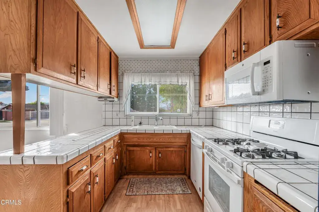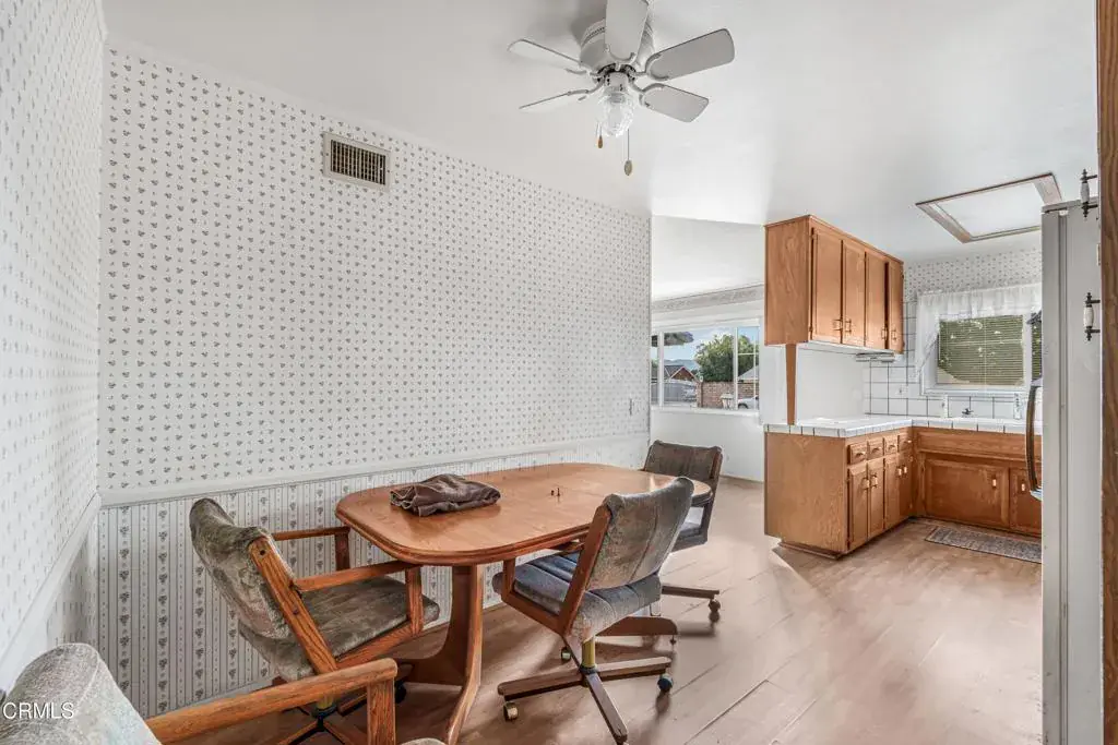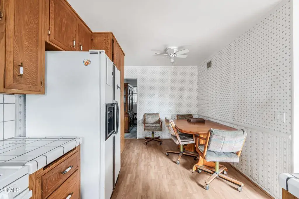 Great home is located in a residential area of Simi Valley and sits on a 10,454 sq. ft. lot. Inside you will find laminate flooring throughout and a living room that includes a fireplace and neighborhood views.The dining area is positioned next to the living room with lots of natural light. The kitchen features lots of counter space ideal for the chef in the family. A carpeted dining nook with French-style windows looks out onto the backyard.With four bedrooms and two full bathrooms, this home offers enough space for a variety of uses.Outside, the backyard is fairly large and open, providing room for outdoor use. A covered patio is included, along with a two-car garage for parking or storage.The home is close to local schools, parks, hiking trails, and other everyday amenities found around Simi Valley.