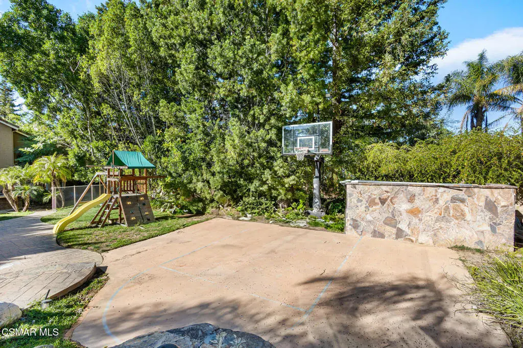 Located behind the gates of The Oaks at Wood Ranch, this spacious home offers 5 bedrooms, 5 bathrooms, and 4,103 sqft!A welcoming entry with high ceilings leads to the kitchen with granite countertops, travertine flooring, an oversized island, walk-in pantry, and plenty of cabinet space. Just off the kitchen, the large family room features a modern fireplace. Downstairs, there’s a flexible game room, office, or bedroom with its own private entrance and ensuite bathroom.Upstairs, the primary suite is like a retreat with a dual-sided fireplace, private balcony, and space for a sitting area or working from home. The primary bathroom includes a walk-in shower, soaking tub, and two walk-in closets. The remaining bedrooms are set apart in their own wing, with one ensuite bedroom and two others sharing a dual-access bathroom. An upstairs laundry room adds extra convenience.The backyard is built for fun and entertaining, featuring a built-in BBQ, covered pergola, play set, amazing pool with a water slide, spa, basketball area, and plenty of room to enjoy the outdoors. The home also offers a long private driveway, a single-car garage, and a separate two-car garage. Pets are welcome!