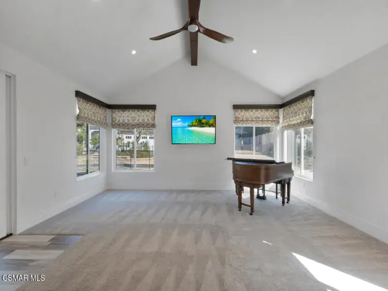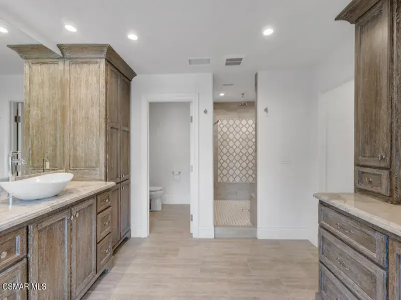 Experience a truly one-of-a-kind luxury estate in a highly sought-after cul-de-sac location in West Simi Valley, set on over an acre of beautifully designed grounds. Offering approximately 4,200 sq ft of refined living space, this stunning custom home combines privacy, functionality, and resort-style living.The expansive property provides incredible versatility — ideal for behind the gate private RV parking, recreational vehicles, additional car storage, home-based hobbies, or equestrian use. With gated access and generous flat usable land, the possibilities are endless.The resort-style backyard is designed for year-round enjoyment, featuring a saltwater Pebble Tec pool with baja shelf and spa, covered patio with built-in heaters and ceiling fans, custom drapery, built-in BBQ, and lush professional landscaping complete with mature fruit trees (tangerine, lemon, peach, plum, cherry, and blueberry). Elegant paver hardscape offers ample parking, complemented by an attached 3-car garage with epoxy floors, built-in cabinetry, and EV charger.Inside, the home offers 4 bedrooms and 3.5 bathrooms, including a downstairs bedroom with en-suite bath. An impressive executive office showcases a large built-in desk, included TV, and floor-to-ceiling illuminated shelving with French doors leading to the backyard. A spacious bonus room serves perfectly as a playroom, media room, gym, or optional fifth bedroom.The gourmet kitchen is equipped with top-of-the-line appliances including a Sub-Zero commercial refrigerator, built-in Miele coffee system, oversized island with prep sink, and custom cabinetry. A separate entertainer’s bar area includes a beverage refrigerator and ice maker.The luxurious primary suite features vaulted ceilings and a spa-inspired bath with heated floors, oversized walk-in shower, dual walk-in closets, and serene backyard views.Additional highlights include dual-zone HVAC, solar with battery backup, surround sound, and premium finishes throughout.A rare lease opportunity that delivers luxury, privacy, space, and unmatched versatility — homes like this are seldom available for rent.