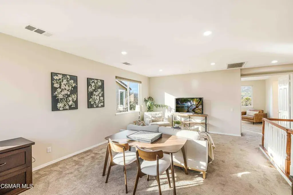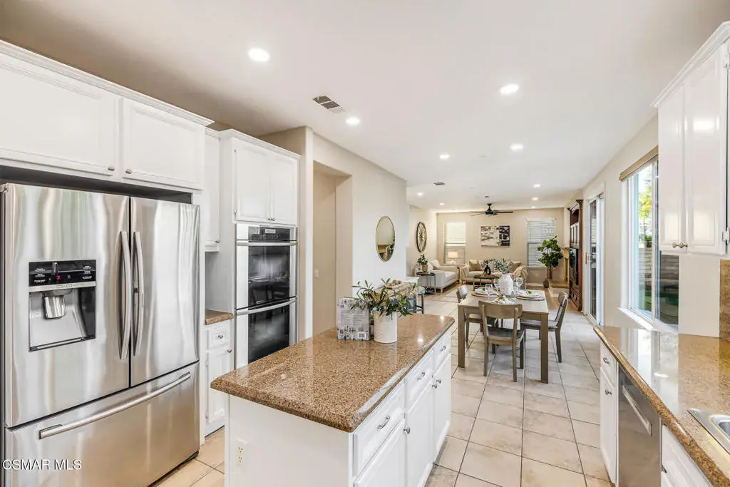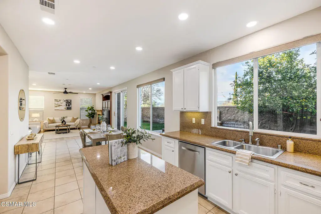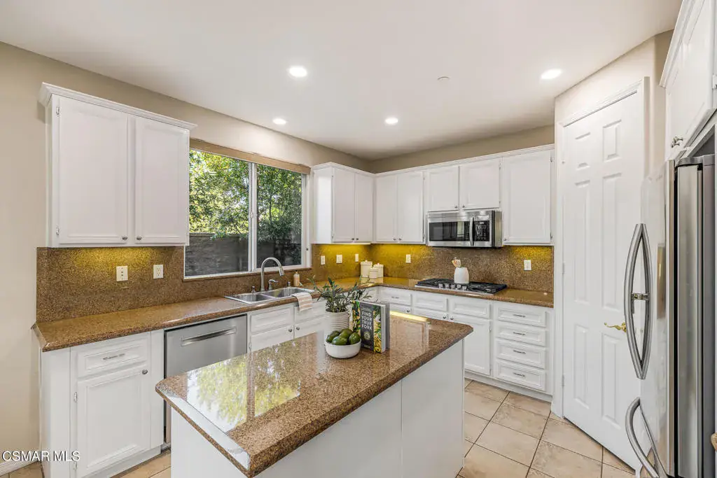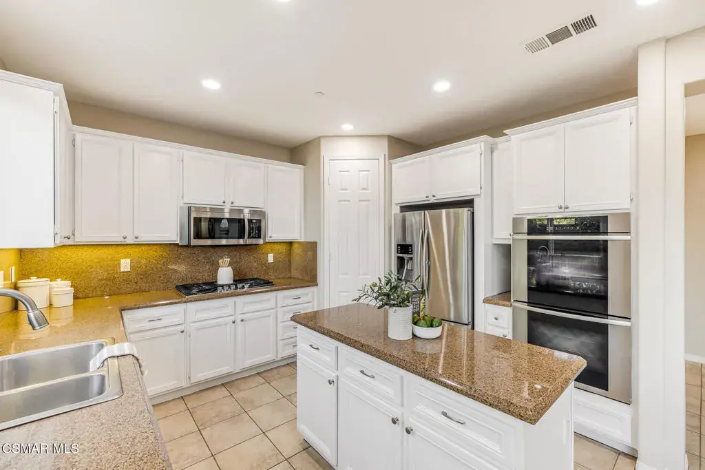 Welcome to the largest floor plan in the Auburn Hills neighborhood of Hidden Oaks, ideally located in the heart of Simi Valley. This light and bright residence offers approximately 3,251 square feet of well-designed living space with a flexible layout ideal for today’s lifestyle.The main level features a full bedroom and full bathroom, perfect for guests or multigenerational living, along with formal living and dining rooms, a spacious family room with gas fireplace, and abundant recessed lighting. The home showcases tile and carpet flooring, custom built-ins, custom window treatments, upgraded light fixtures, and a newly painted interior throughout.The kitchen is thoughtfully designed with granite countertops, stainless steel appliances, upgraded cabinetry, a walk-in pantry, and a generous eat-in dining area that opens seamlessly to the family room–ideal for everyday living and entertaining.Upstairs, you’ll find four additional bedrooms, three full bathrooms, and a large loft featuring dual built-in desks with storage, creating the perfect space for work, study, or a secondary lounge. The expansive primary suite offers a peaceful retreat with stunning city and mountain views, a walk-in closet, and a well-appointed ensuite bath.The backyard is designed for enjoyment with stamped concrete, fruit trees, and ample space to relax or entertain. Additional highlights include a three-car garage and a desirable location close to parks, schools, shopping, dining, and easy commuter access.A wonderful opportunity to own a spacious, well-appointed home in one of Simi Valley’s most sought-after neighborhoods.