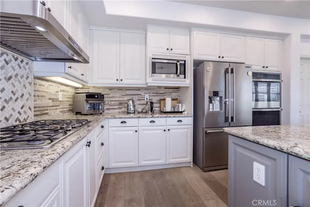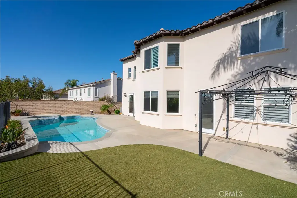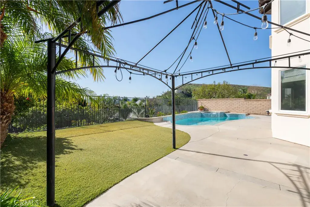 Presenting the most exclusive Silverthorne 6-bedroom and 4-bath estate nestled in the Northern Foothills of Simi Valley—where refined artistry meets exceptional craftsmanship to create a truly breathtaking retreat. This exceptional residence blends modern sophistication with timeless elegance and features recessed lighting throughout, enhancing the home’s bright and refined ambiance. Upon entry, you’re welcomed into a thoughtfully curated interior offering two bedrooms on the main level, one featuring a walk-in closet, along with a full bath—ideal for guests, multigenerational living, or a private home office. The formal living room impresses with soaring cathedral ceilings and custom roller shades, flowing effortlessly into the dining room, adorned with bespoke lighting and plantation shutters. The gourmet kitchen is a chef’s delight, showcasing custom cabinetry, granite countertops, and high-end stainless steel appliances, including a five-burner cooktop and double ovens. A spacious center island and charming breakfast nook overlook the serene backyard and scenic views, creating the perfect setting to start your day. The adjoining family room offers a warm and inviting atmosphere with a cozy fireplace and built-in media niche. A well-appointed laundry room adds everyday convenience with ample cabinetry and storage. Upstairs, you’ll find four generously sized bedrooms, including the luxurious primary suite—a true private retreat featuring engineered wood flooring, dual walk-in closets, and a fully remodeled, spa-inspired primary bathroom. Each upstairs bedroom offers comfort, flexibility, and abundant natural light. Step outside to a newly remodeled pool and spa framed by picturesque hillside and backyard views—an entertainer’s dream. The outdoor space is completed with a stylish gazebo and low-maintenance synthetic turf, delivering beauty with effortless upkeep. Additional highlights include a brand-new HVAC system, a two-car garage, and a coveted location within the prestigious Silverthorne Development. This rare offering combines elegance, functionality, and lifestyle—presenting an extraordinary opportunity to own one of Simi Valley’s finest homes. Your exclusive lifestyle awaits.