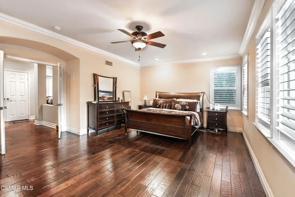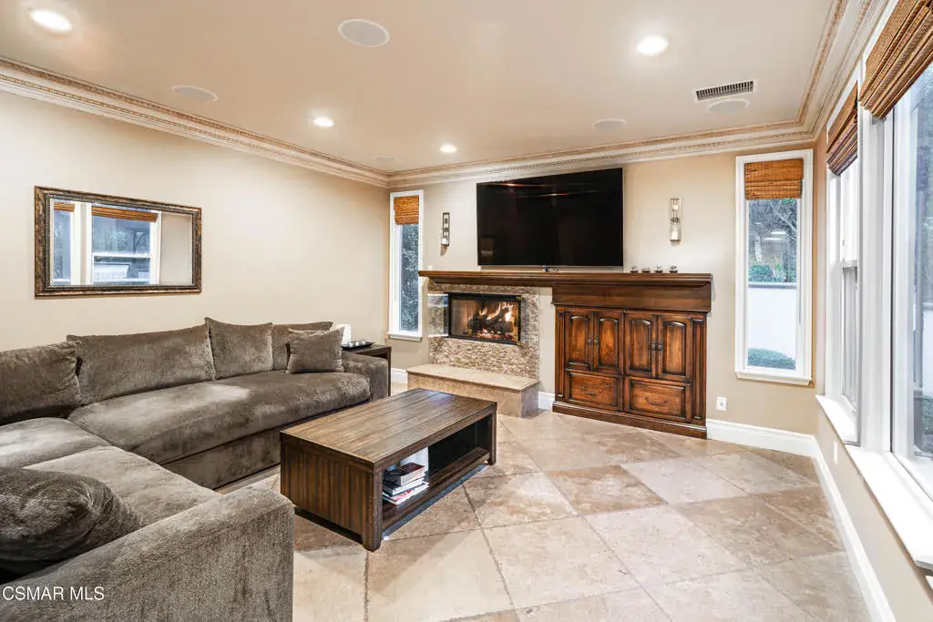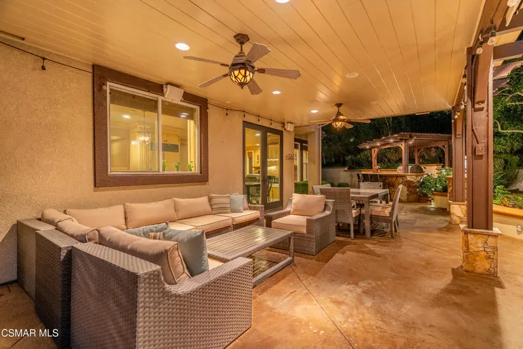 Fantastic Home in Wood Ranch located behind the Gates of the coveted Oaks Community. Spacious 5 Bed 4.5 Bath Estate with Hardwood and Travertine floors. Chef’s Dream Kitchen features state of the art Appliances: Viking Stove, Sub-Zero Built-In Fridge, Bosch Dishwasher, Wine Fridge, Walk-In Pantry and Butler’s Pantry. Living Room off of Kitchen with Fireplace and Built-In Cabinetry. Primary Suite features Luxurious Spa-Like Bathroom with Eucalyptus Steam Shower & Hydrotherapy Spa with Jets. All Bedroom Closets and Study feature Custom Built-In Cabinets. French Doors Open to Stunning Resort Style Backyard with Grand Pool and Spa with Water Slide and Waterfall. Pool controlled with Mobile App. Covered Patio with Recessed Lighting, Surround Sound, and Ceiling Fans. Built-In BBQ and Fire Pit. Four Car Garage with Custom Cabinets. Refinished Concrete. Recently Installed Tankless Water Heater. Luxury Neighborhood with 24 Hr Security and Maintained Landscaping is Located near the Best of Wood Ranch and Simi Valley. An Exceptional Offer!